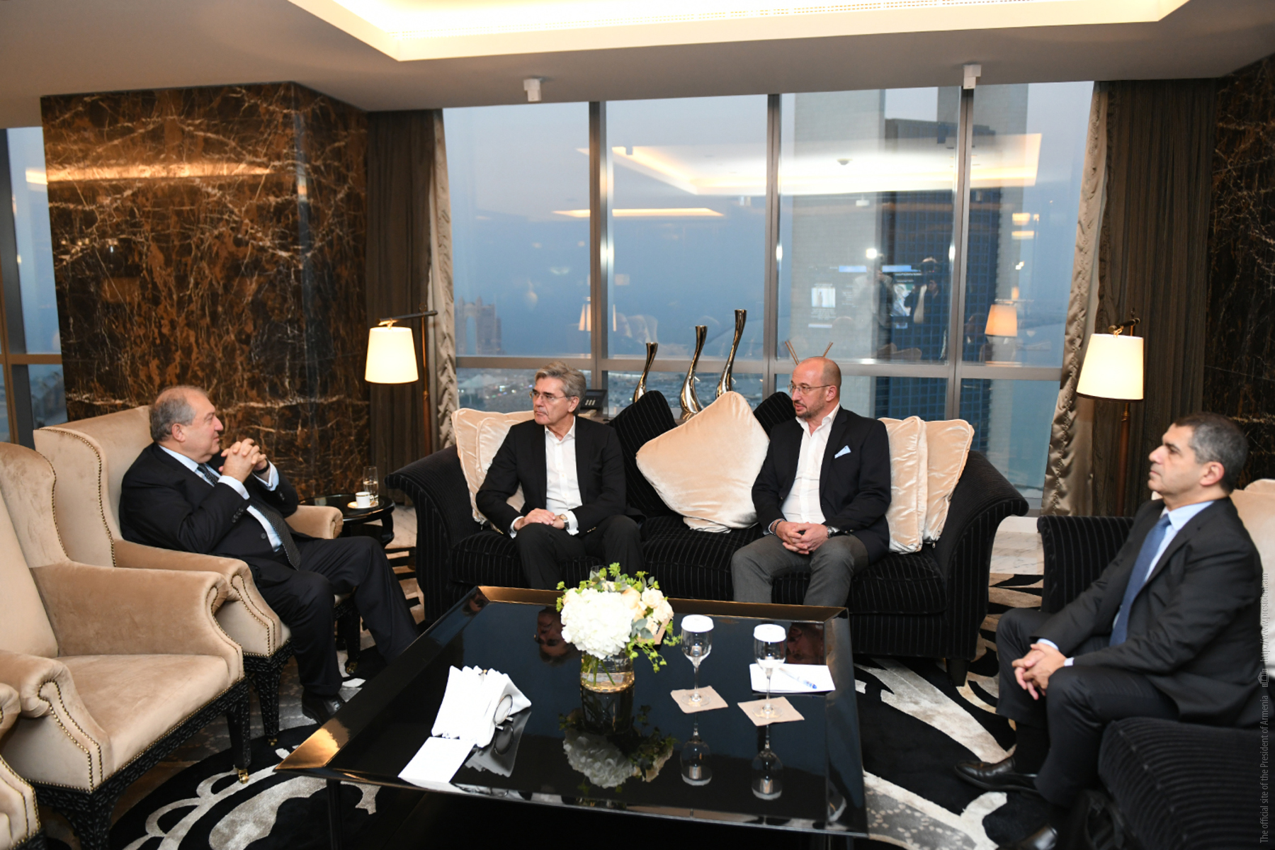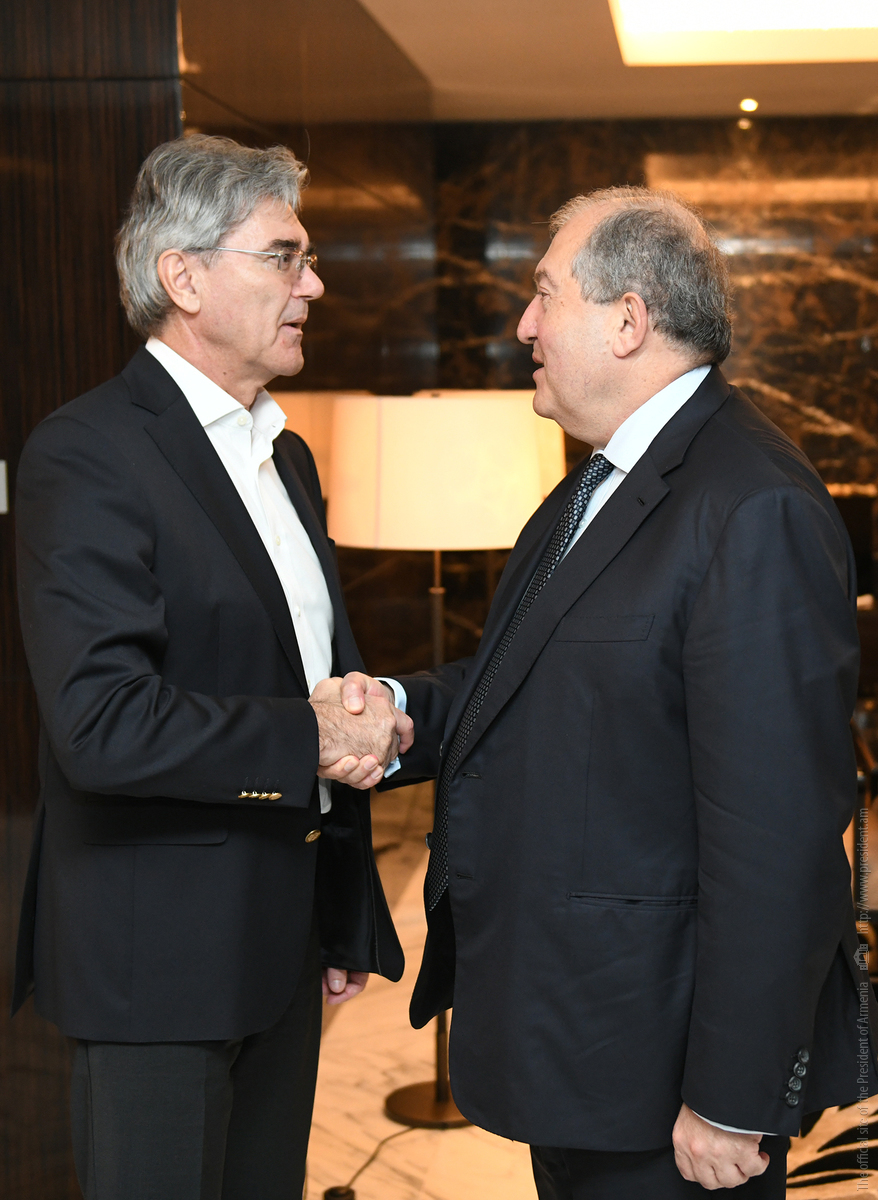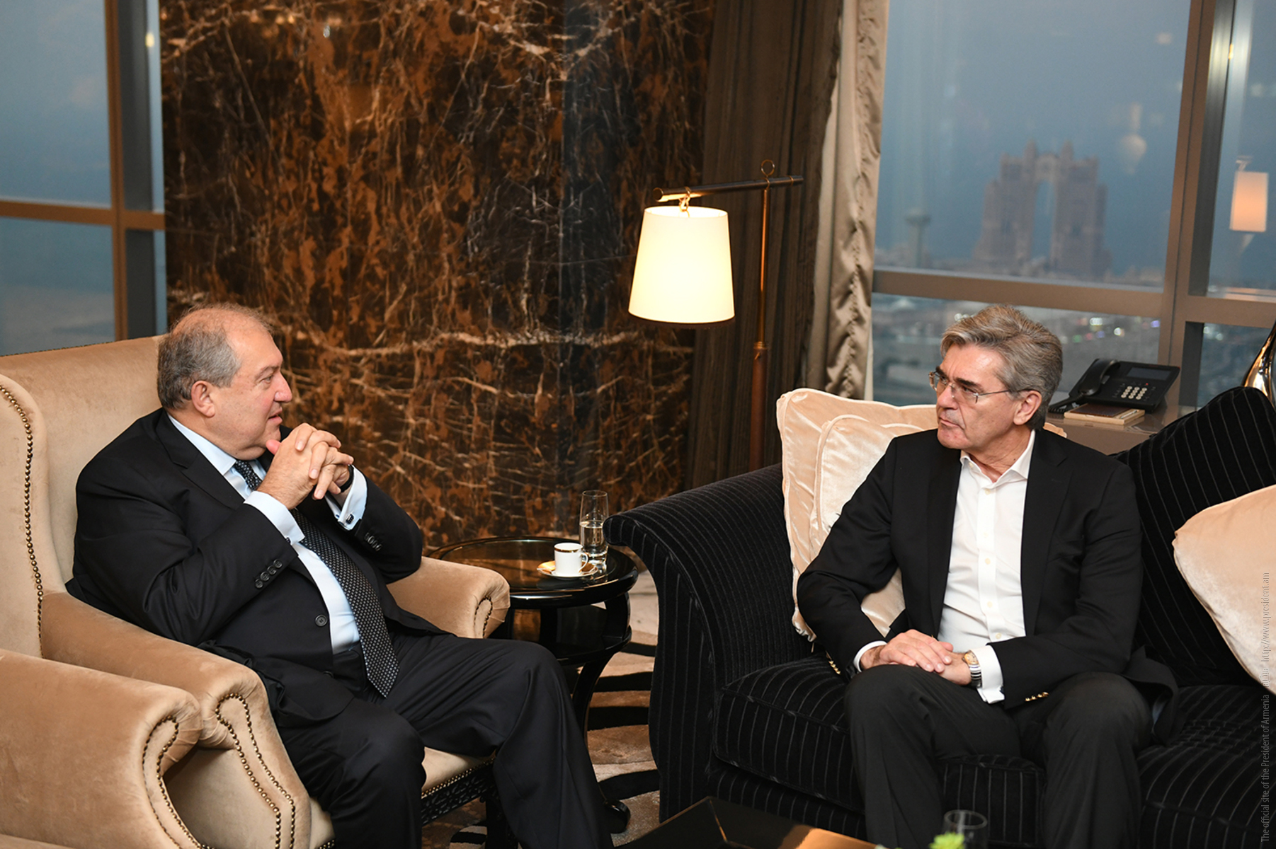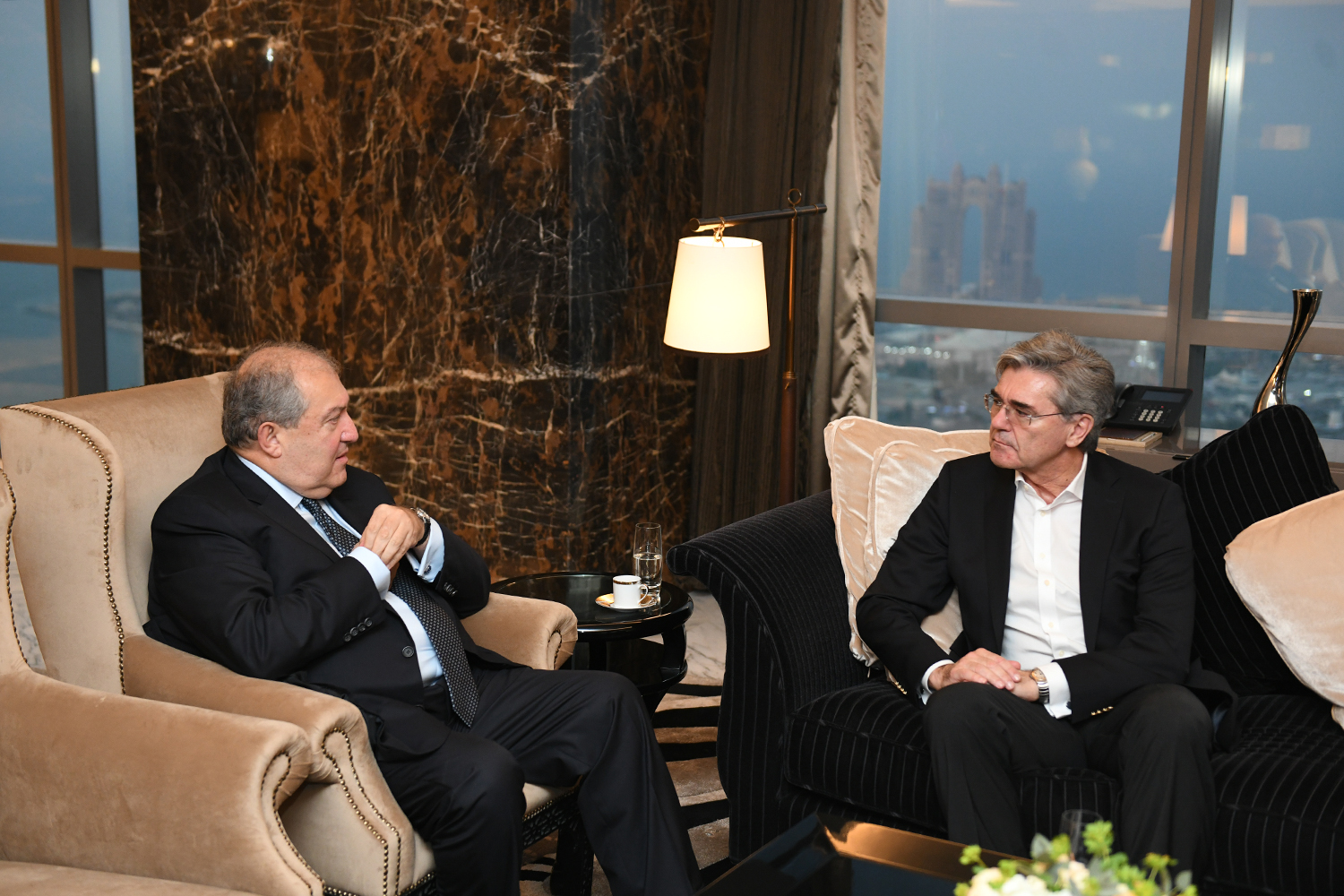 Президент Республики Армен Саркисян в рамках рабочего визита в Объединённые Арабские Эмираты встретился с Президентом и исполнительным директором одной из крупнейших технологических компаний – Siemens Джо Касером.