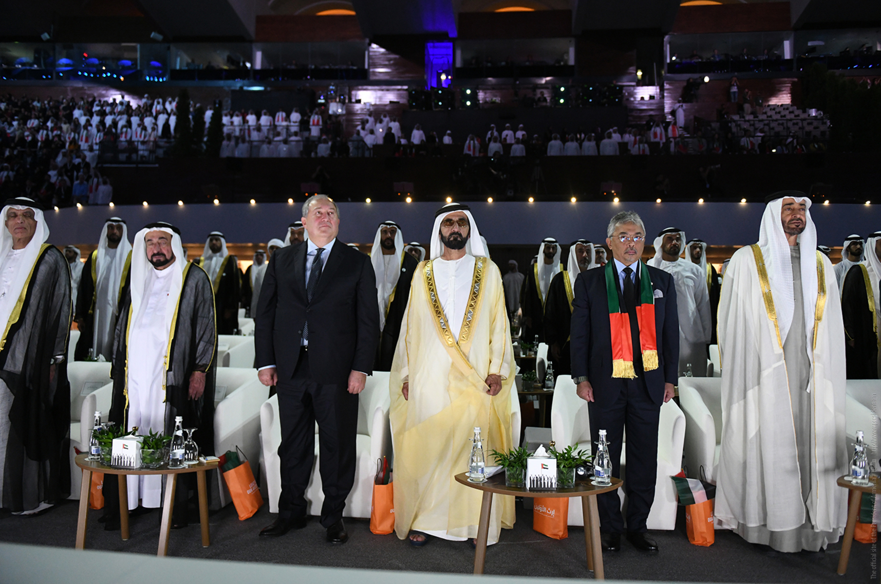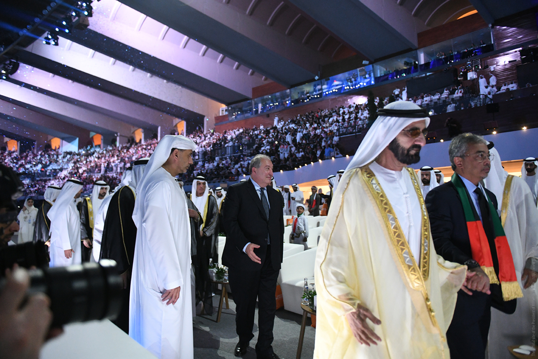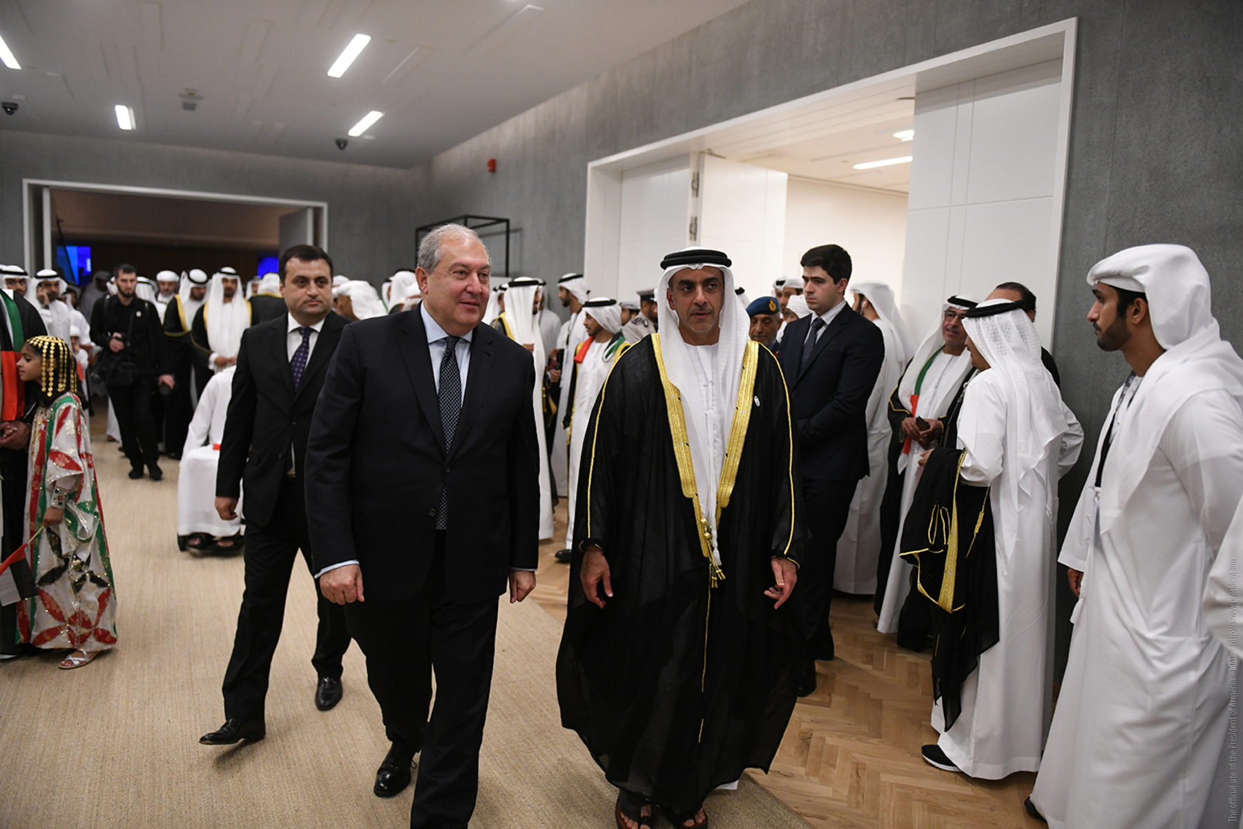 Находящийся с рабочим визитом в Объединённых Арабских Эмиратах Президент Республики Армения Армен Саркисян вместе с высшим руководством ОАЭ присутствовал на состоявшейся в Абу-Даби официальной церемонии, посвящённой Национальному празднику страны. Мероприятие проводилось под эгидой Президента Объединённых Арабских Эмиратов Шейха Халифы Бин Зайда аль Нахайяна.