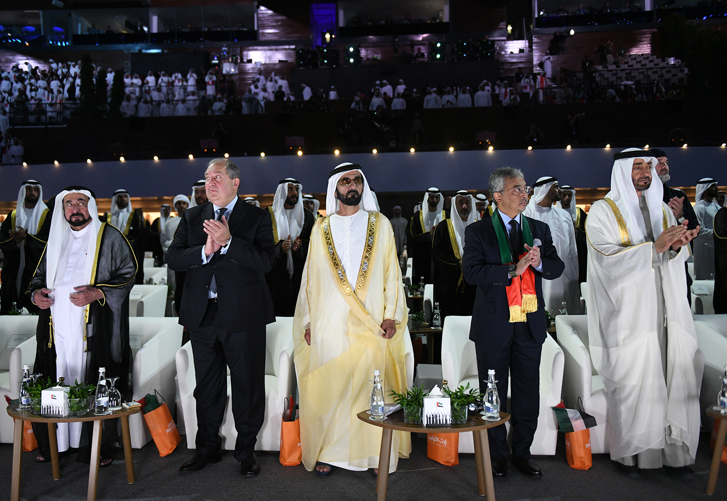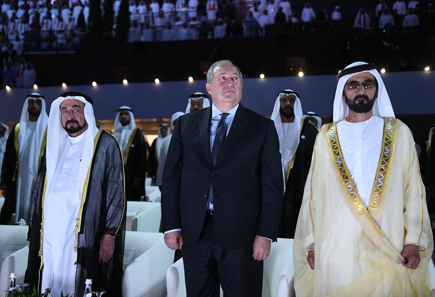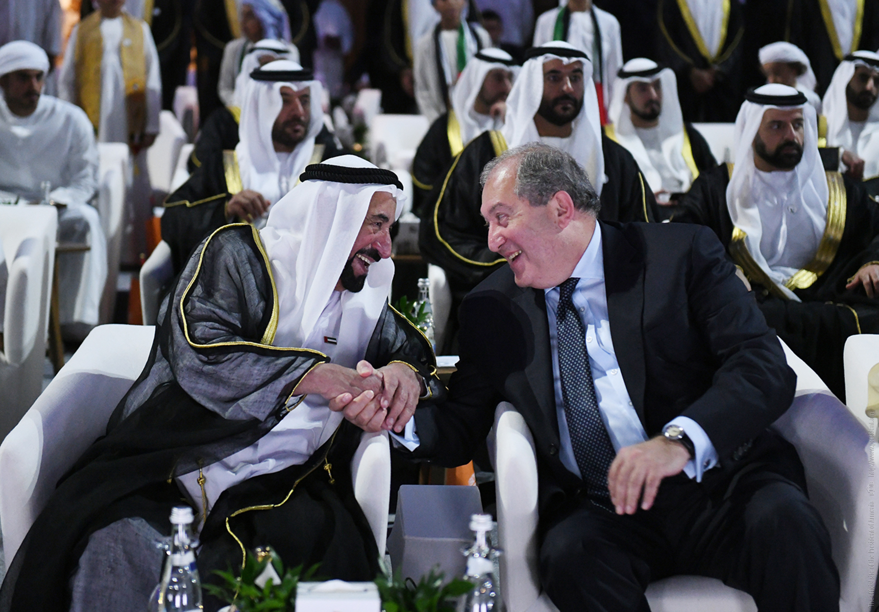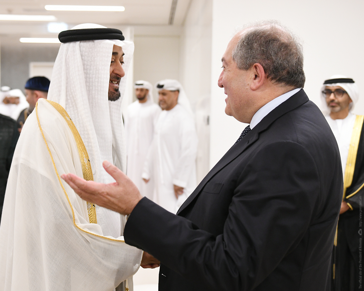 Находящийся с рабочим визитом в Объединённых Арабских Эмиратах Президент Республики Армения Армен Саркисян вместе с высшим руководством ОАЭ присутствовал на состоявшейся в Абу-Даби официальной церемонии, посвящённой Национальному празднику страны. Мероприятие проводилось под эгидой Президента Объединённых Арабских Эмиратов Шейха Халифы Бин Зайда аль Нахайяна.