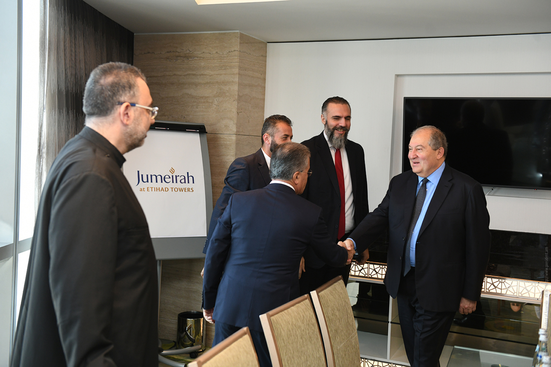 Находящийся с рабочим визитом в Объединённых Арабских Эмиратах Президент Республики Армен Саркисян в Абу-Даби встретился с представителями местной армянской общины. Во встрече принял участие также предстоятель Армянской епархии Объединённых Арабских Эмиратов и Катара епископ Месроп Саркисян.