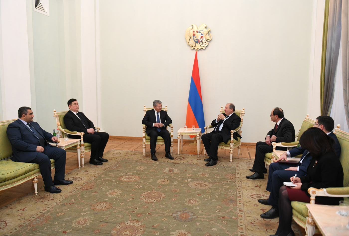 Президент Саркисян поздравил и пожелал успехов новоназначенному послу, выразив уверенность, что своим опытом и способностями он будет служить укреплению отношений между двумя дружественными странами. «Наши страны всегда имели тесные связи, которые мы должны развивать и углублять», - отметил Президент Саркисян, в то же время заметив, что Армения и Кыргызстан успешно сотрудничают также в рамках Евразийского экономического союза.