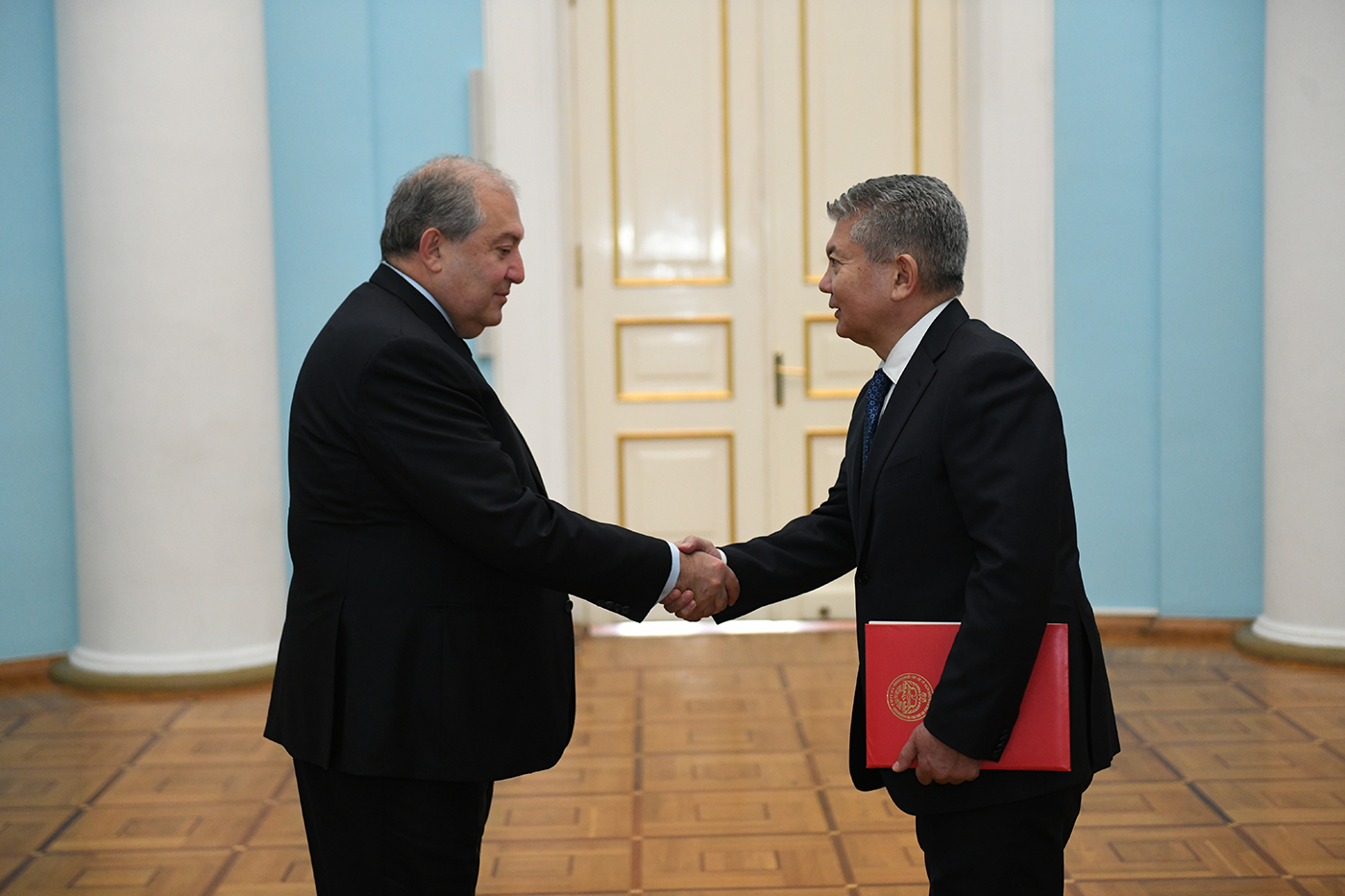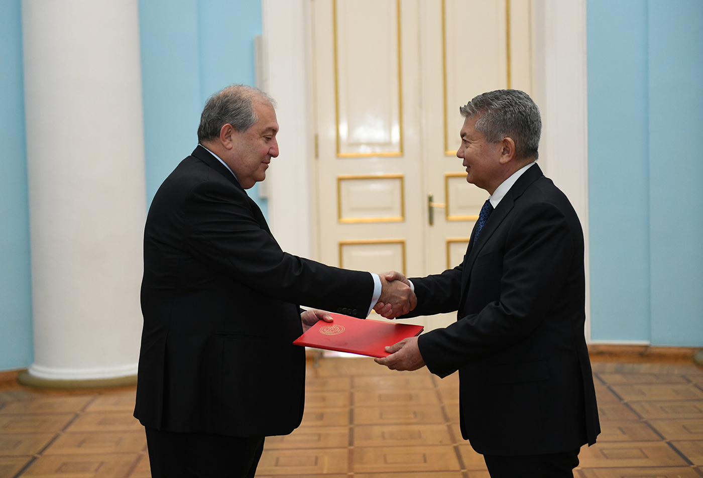 Мы должны развивать и углублять двусторонние отношения - Президент Армен Саркисян принял верительные грамоты новоназначенного посла Кыргызстана в Армении
