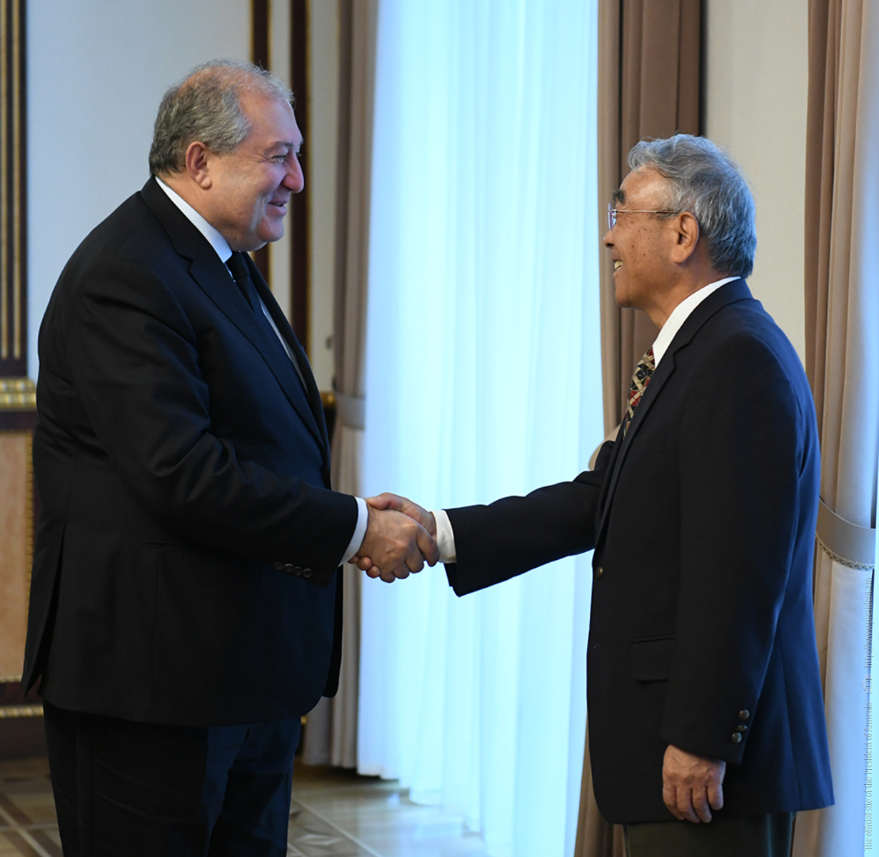 Президент Республики Армен Саркисян сегодня принял японского учёного, профессора университета Карнеги Мелон, автора теории Origami World, создателя понятия «виртуальная реальность» Такео Канаде, который удостоился государственной премии Республики Армения «Global IT Award» 2019 года.