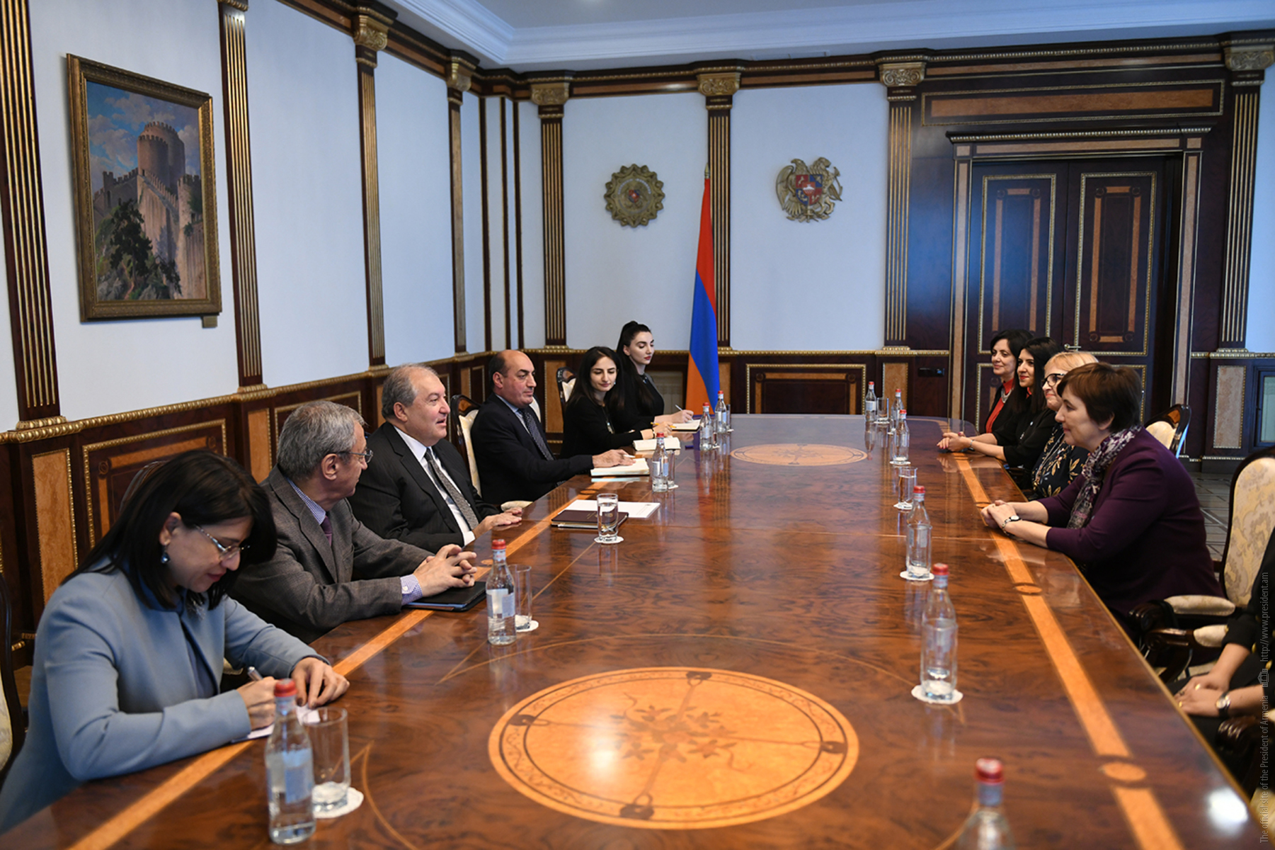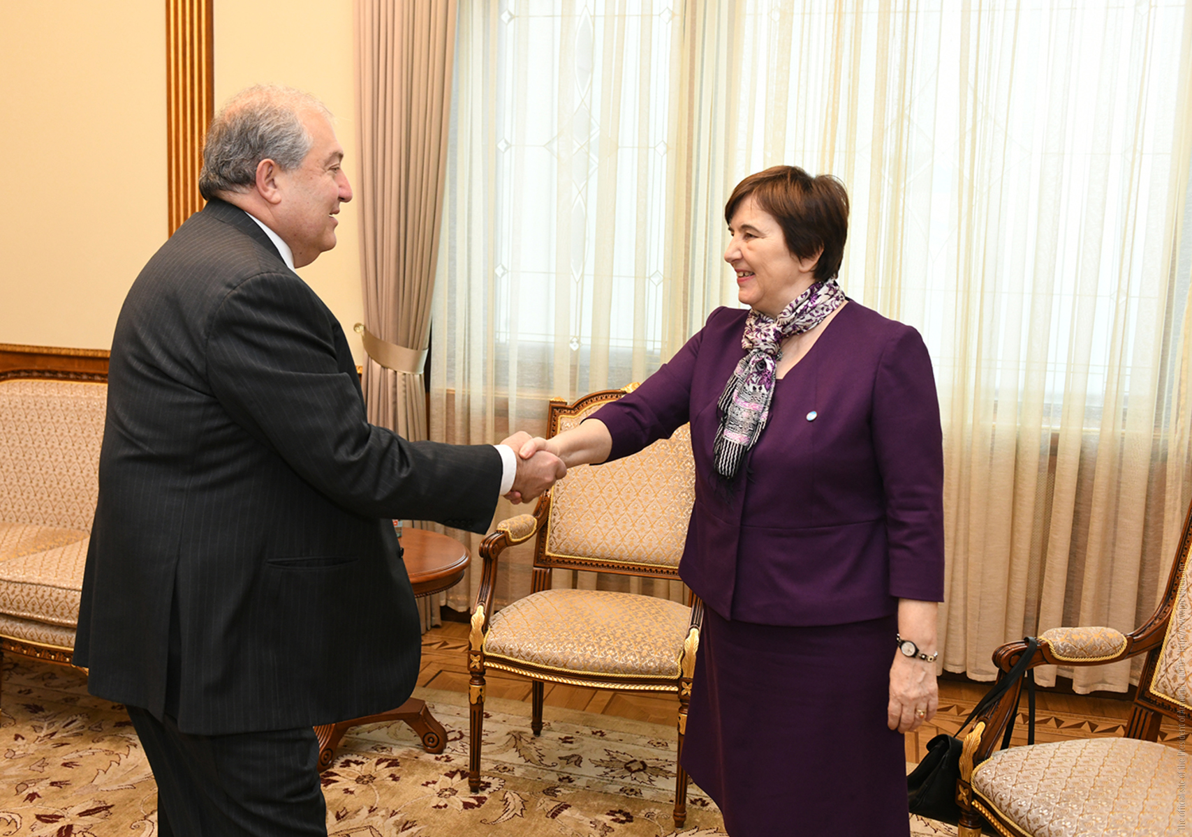 Президент Республики Армен Саркисян сегодня принял представителя ЮНИСЕФ в Армении Таню Радочай и группу представителей армянской команды ЮНИСЕФ.
