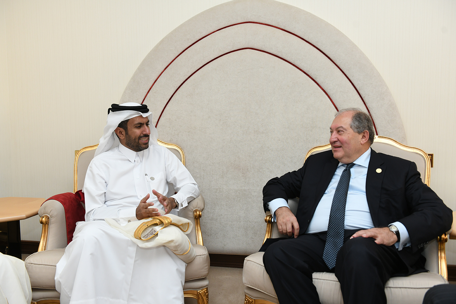 На встрече обсуждались направления сотрудничества с Арменией и возможности реализации инвестиционных програм. Президент Саркисян представил инвестиционные и конкурентные преимущества нашей страны, отметил, что открытие в Катаре посольства Армении, ликвидация визового режима, а также наличие прямого воздушного сообщения создаёт хорошие предпосылки для активизации деловых контактов между двумя странами.