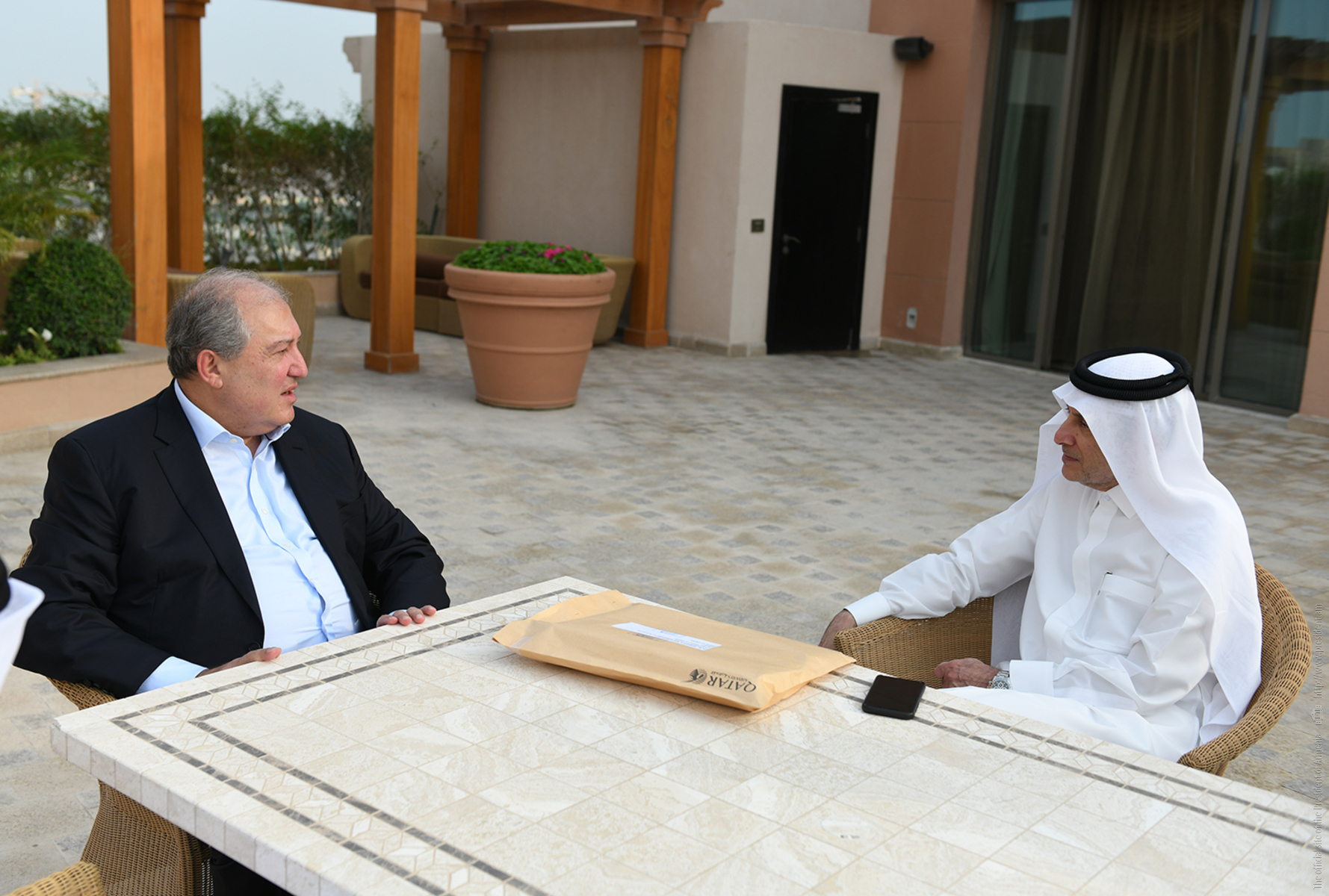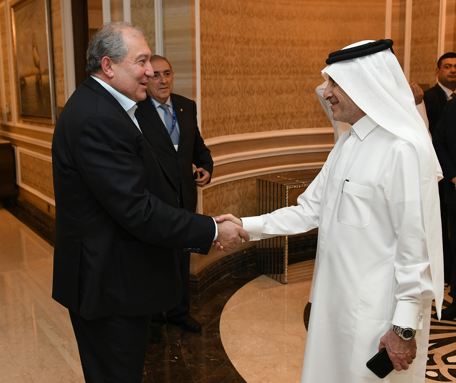 В рамках рабочего визита в Государство Катар Президент Республики Армения Армен Саркисян в Дохе встретился с исполнительным директором компании Katar Airways Акбаром Аль Бакером.