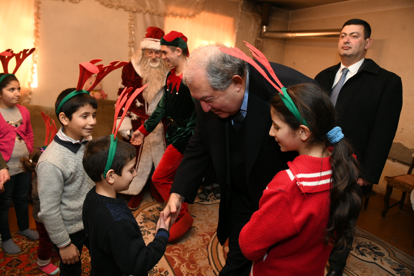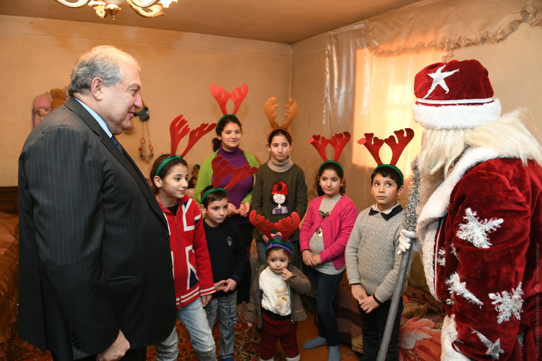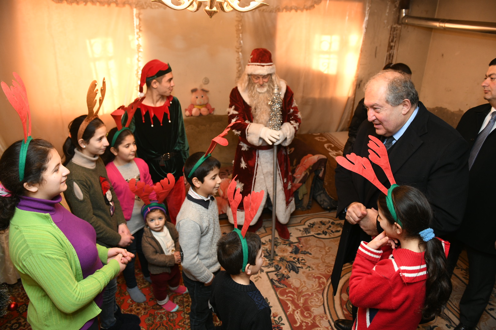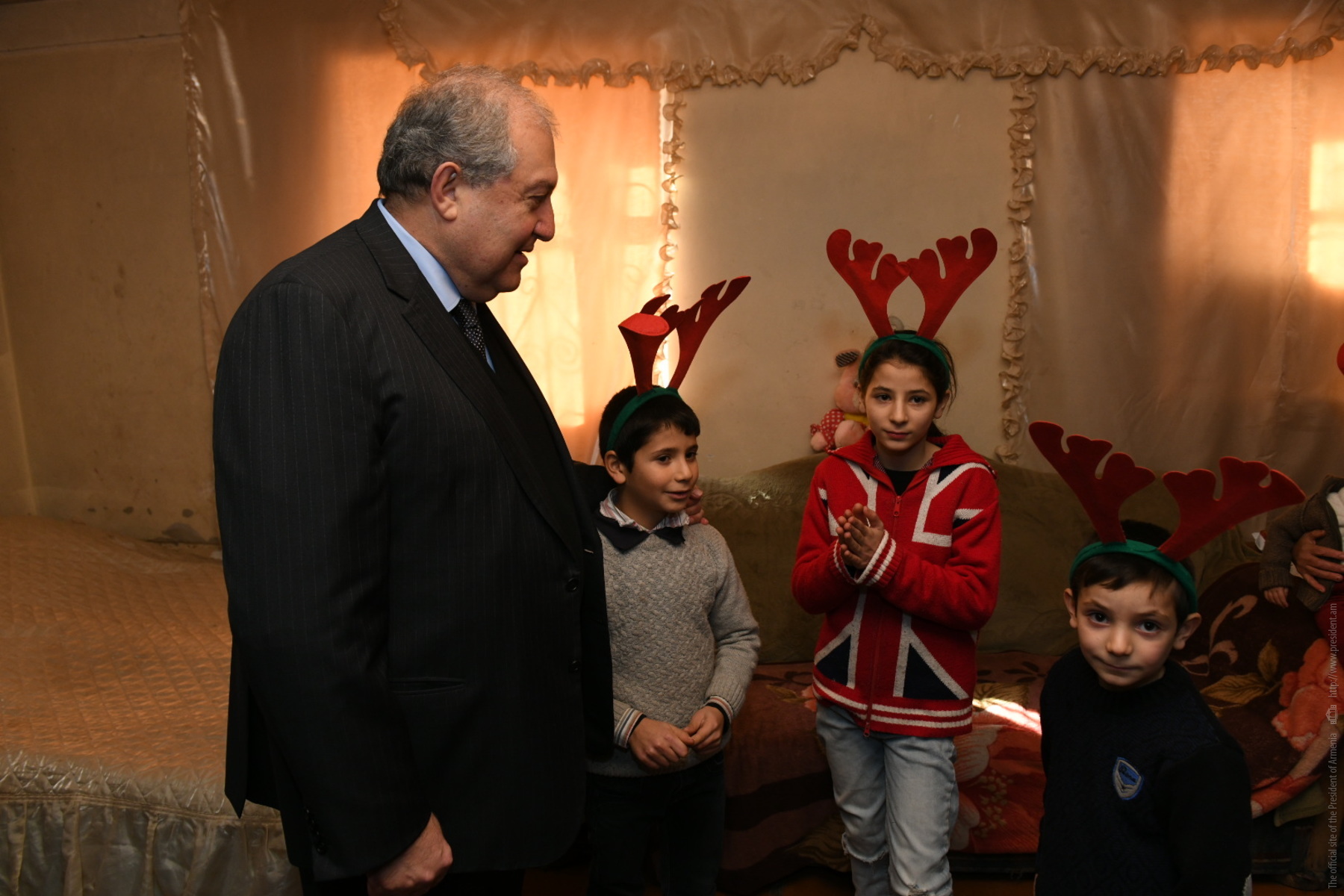Президент Саркисян познакомился и побеседовал с детьми. Они рассказали о том, как учатся и чем интересуются. Госпожа Эльмира Карапетян отметила, что придаёт большое значение образованию детей и делает всё возможное, чтобы социальные проблемы не мешали детям получать образование. Она выразила благодарность Президенту за то, что не забыл и посетил их.