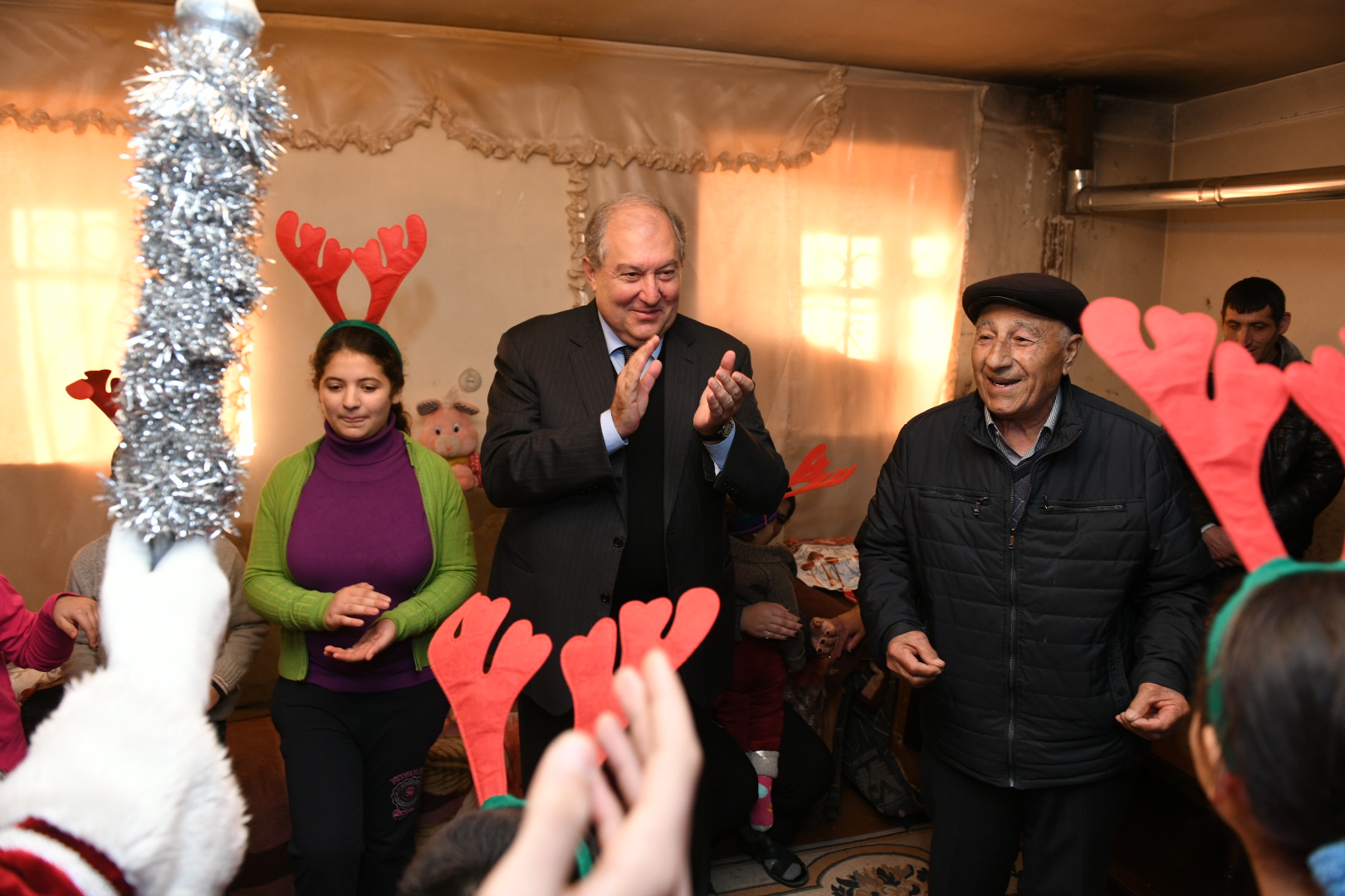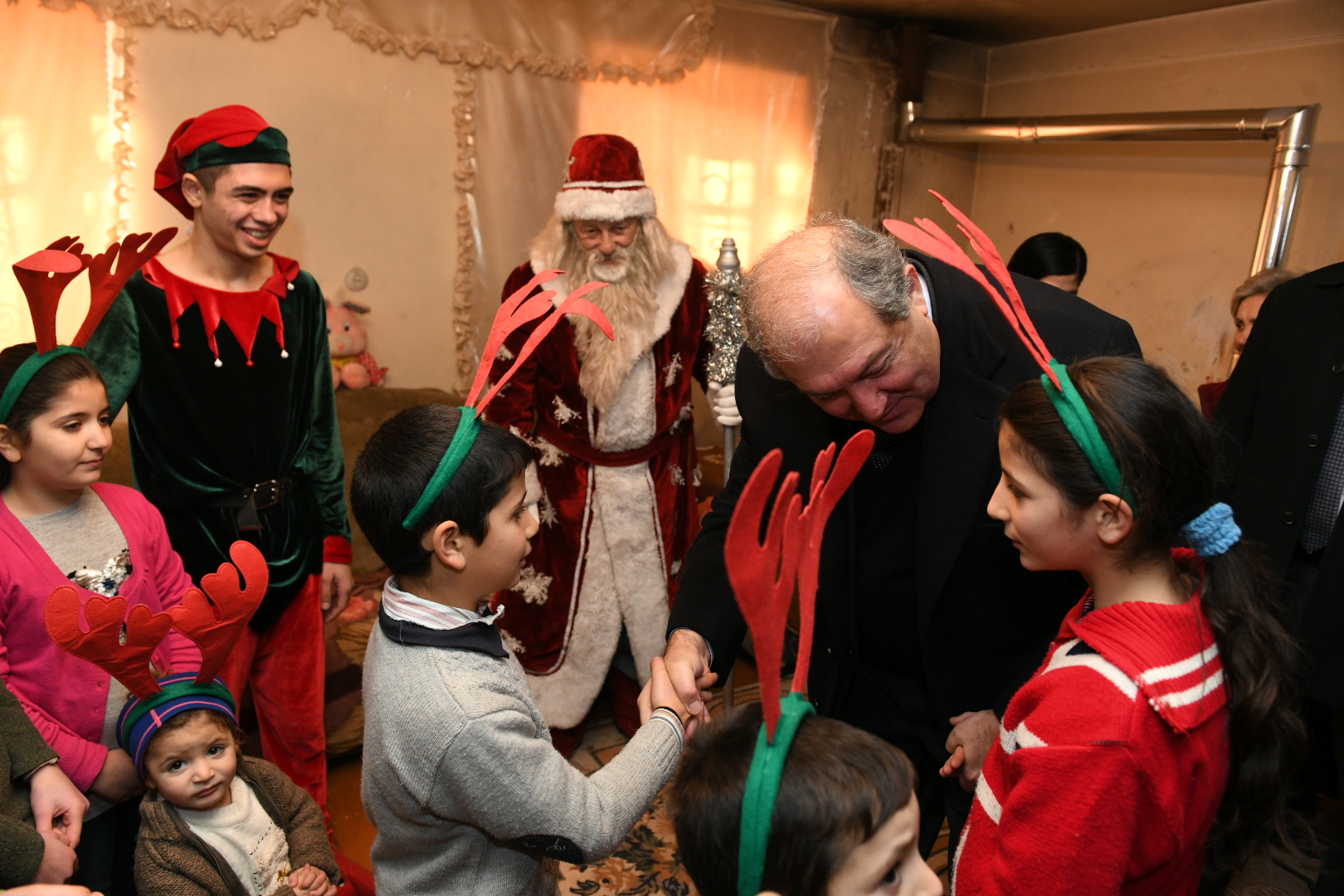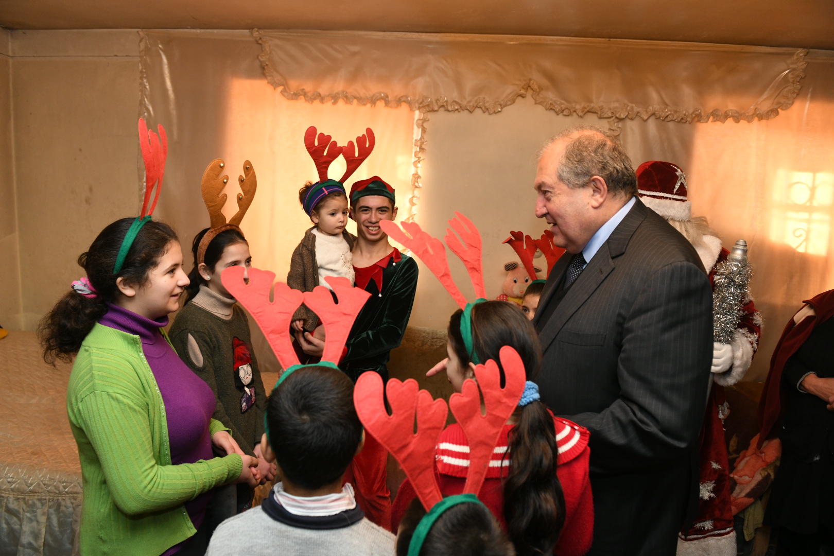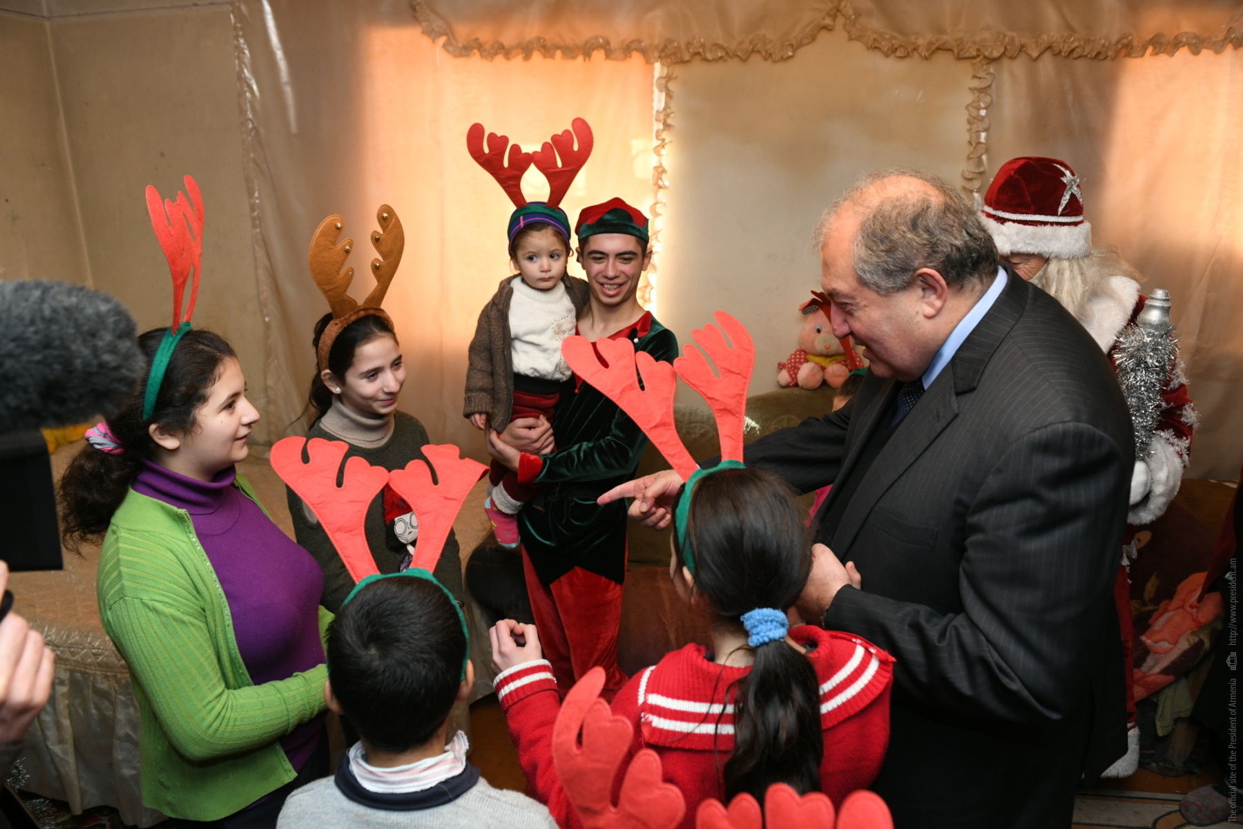 Президент Саркисян познакомился и побеседовал с детьми. Они рассказали о том, как учатся и чем интересуются. Госпожа Эльмира Карапетян отметила, что придаёт большое значение образованию детей и делает всё возможное, чтобы социальные проблемы не мешали детям получать образование. Она выразила благодарность Президенту за то, что не забыл и посетил их.
