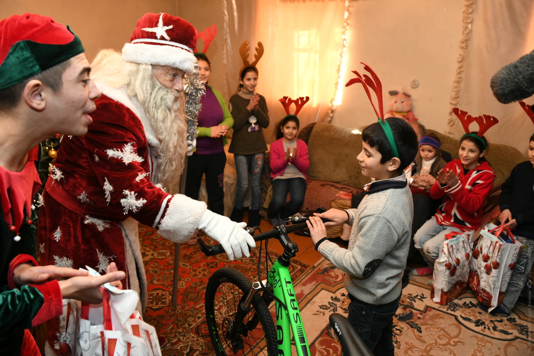 Семье вручили подарки от Аппарата Президента, а также передали подарки, которые дети просили у Деда Мороза.