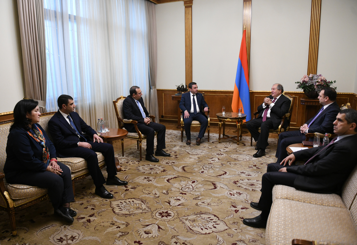 Президент Саркисян встретился с представителем Верховного органа Армянской Революционной федерации Дашнакцутюн Армении Ишханом Сагателяном и членами Верховного органа Арцвиком Минасяном, Шахик Марухян и Ашотом Симоняном, а также с деканом юридического факультета ЕГУ, доктором юридических наук, профессором, Академиком НАН РА Гагиком Казиняном, защитником прав человека Армении Арманом Татояном, председателем НПО «Хельсинкский комитет Армении» Аветиком Ишханяном, соучредителем НПО «Правовой путь» Рубеном Меликяном и другими.