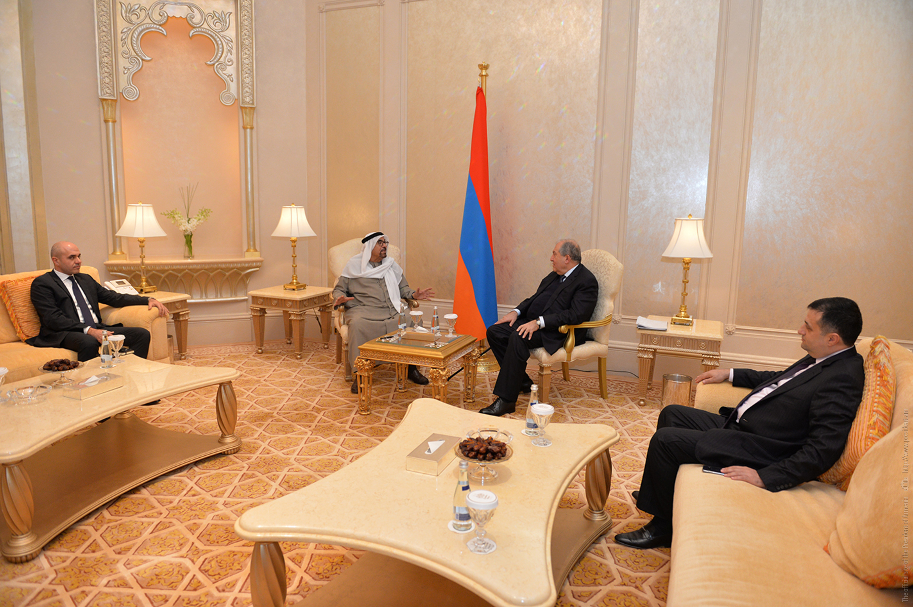В рамках рабочего визита в Объединённые Арабские Эмираты Президент Республики Армения Армен Саркисян в Абу-Даби встретился с членом-учредителем компании AlNowais Investment и Президентом Rotana Hotel Management Corporation Нассером Аль Новейсом.