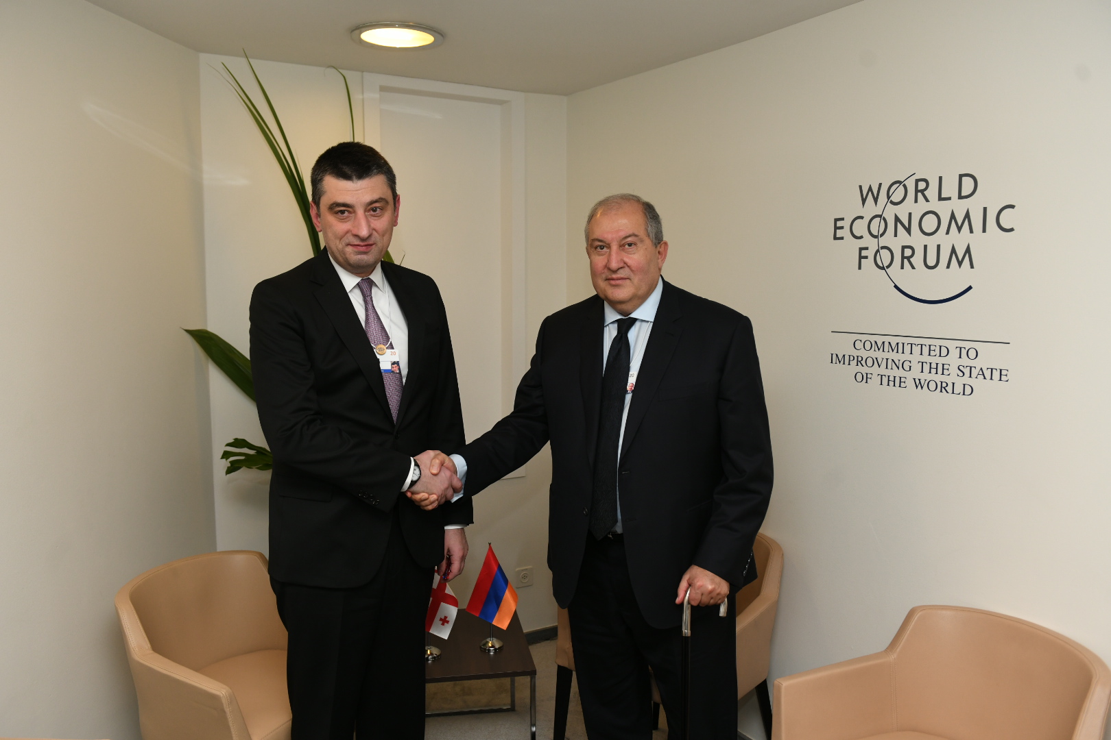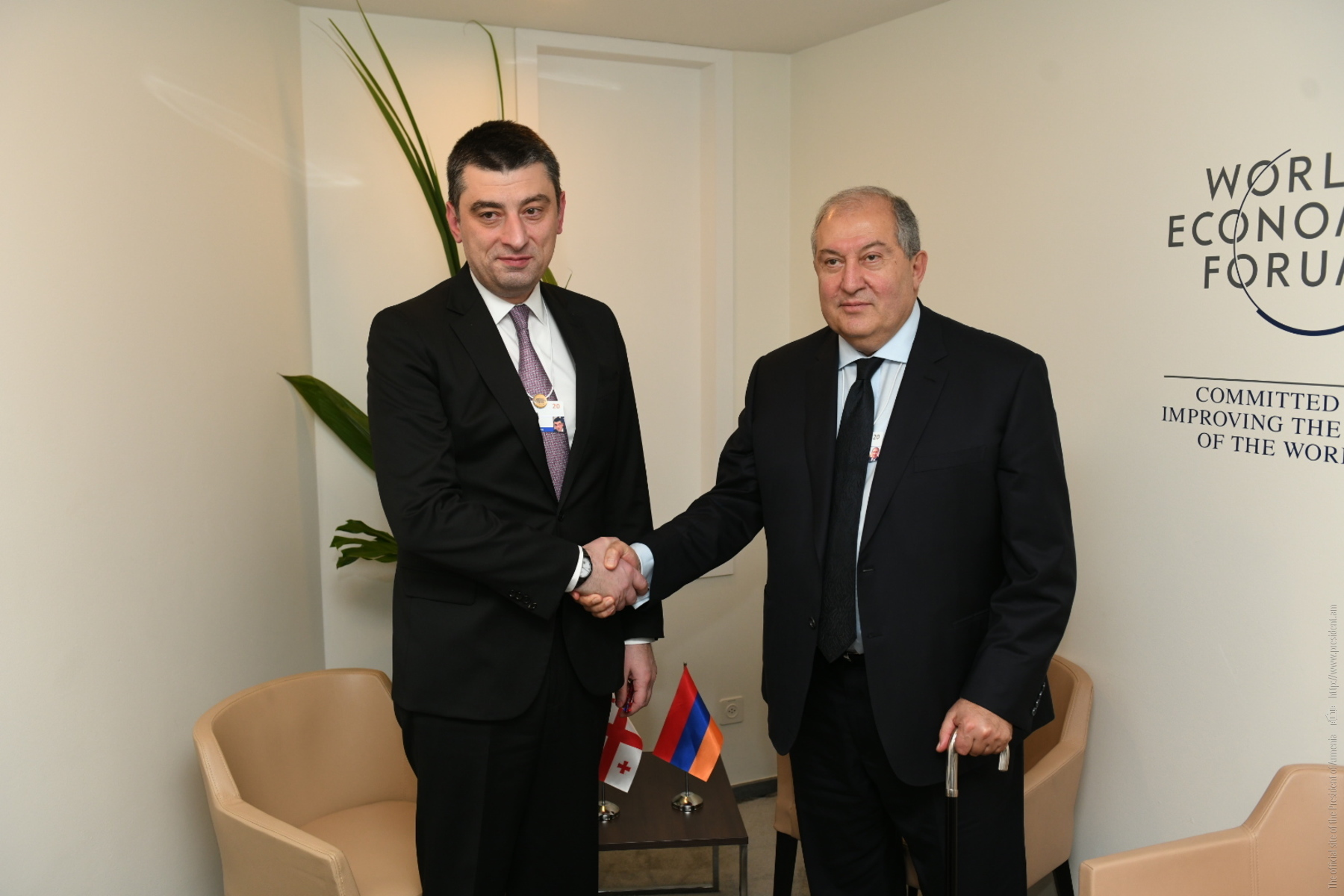 Участвующий в стартовавшем в Давосе Всемирном экономическом форуме Президент Республики Армения Армен Саркисян встретился с Премьер-министром Грузии Георгием Гахарией.