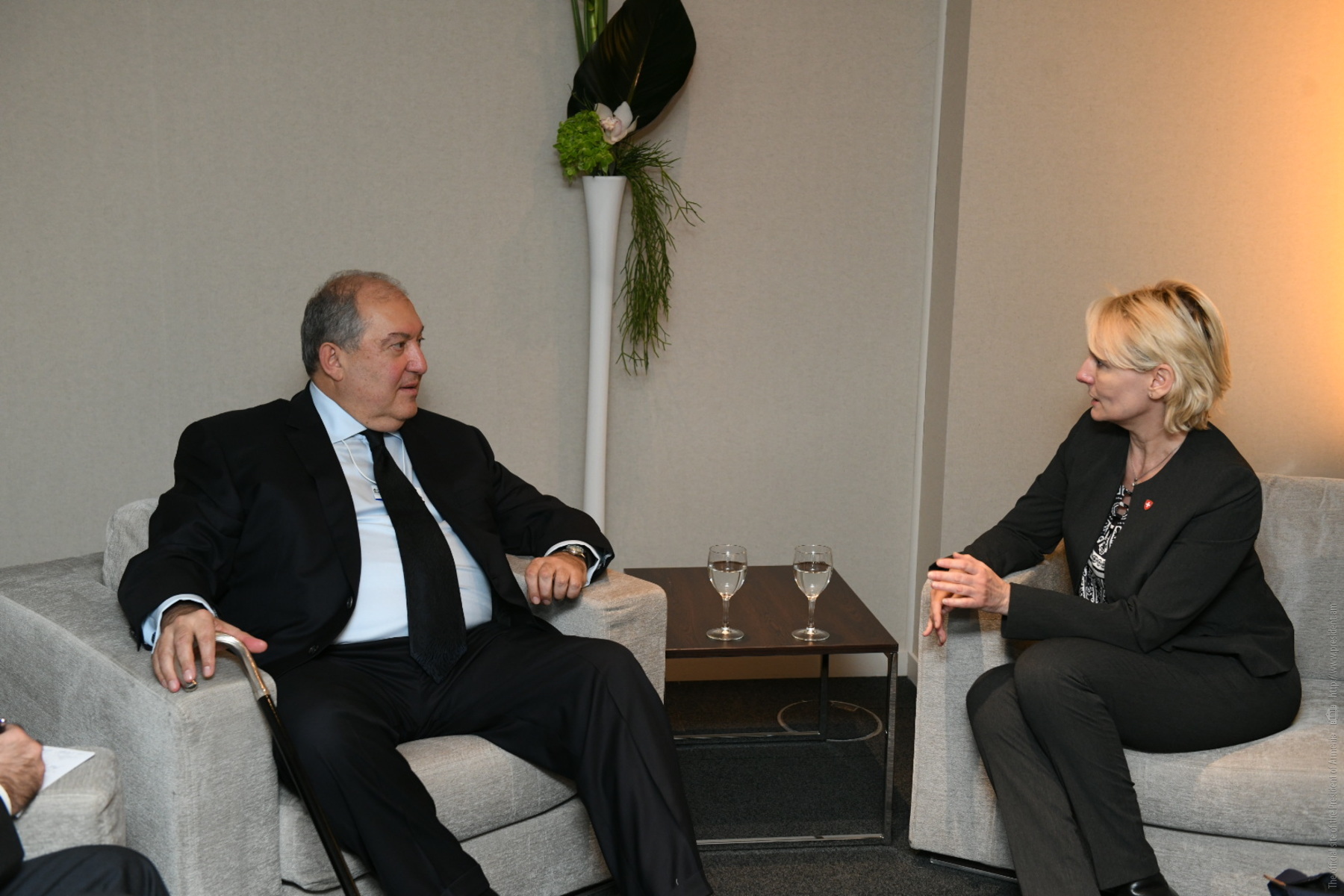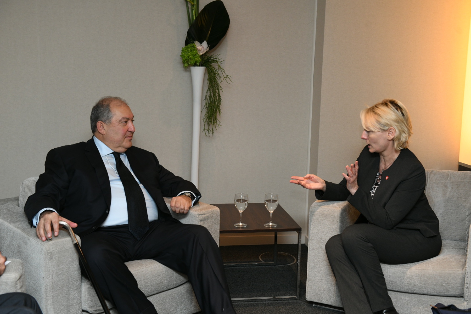 Президент Республики Армения Армен Саркисян в рамках стартовавшего в Давосе Всемирного экономического форума встретился с Председателем Национального совета Швейцарской Конфедерации Изабель Море, которая является руководителем парламентской группы дружбы Армения-Швейцария.