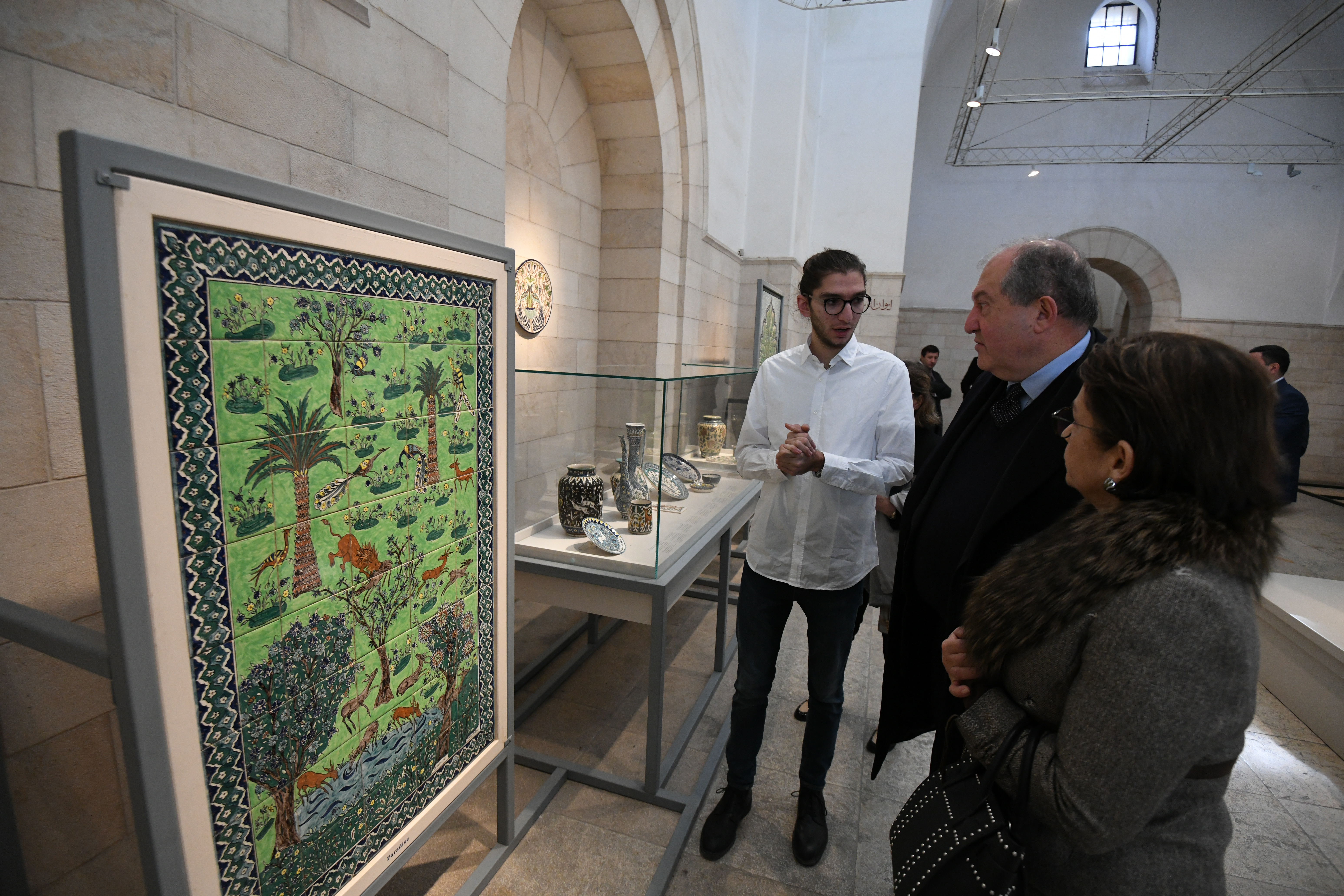 Президент Саркисян и госпожа Саркисян осмотрели выставку, все экспонаты которой произведены в Иерусалиме, поговорили о возможности организовать подобную выставку в Армении, а также о перспективах возвращения искусства армянской керамики в Армению. Седрак Балян отметил, что у них есть желание, используя свой опыт, наладить производство керамики также в Армении.