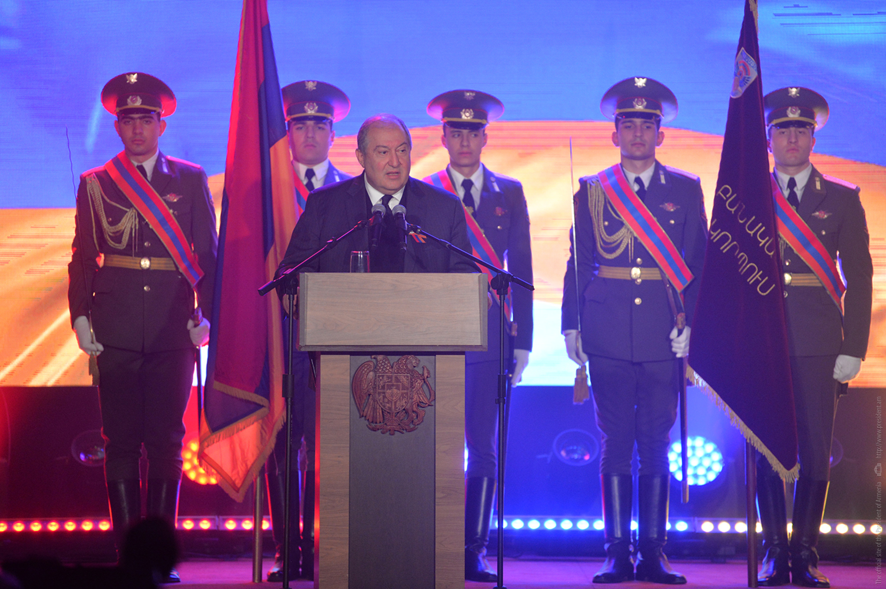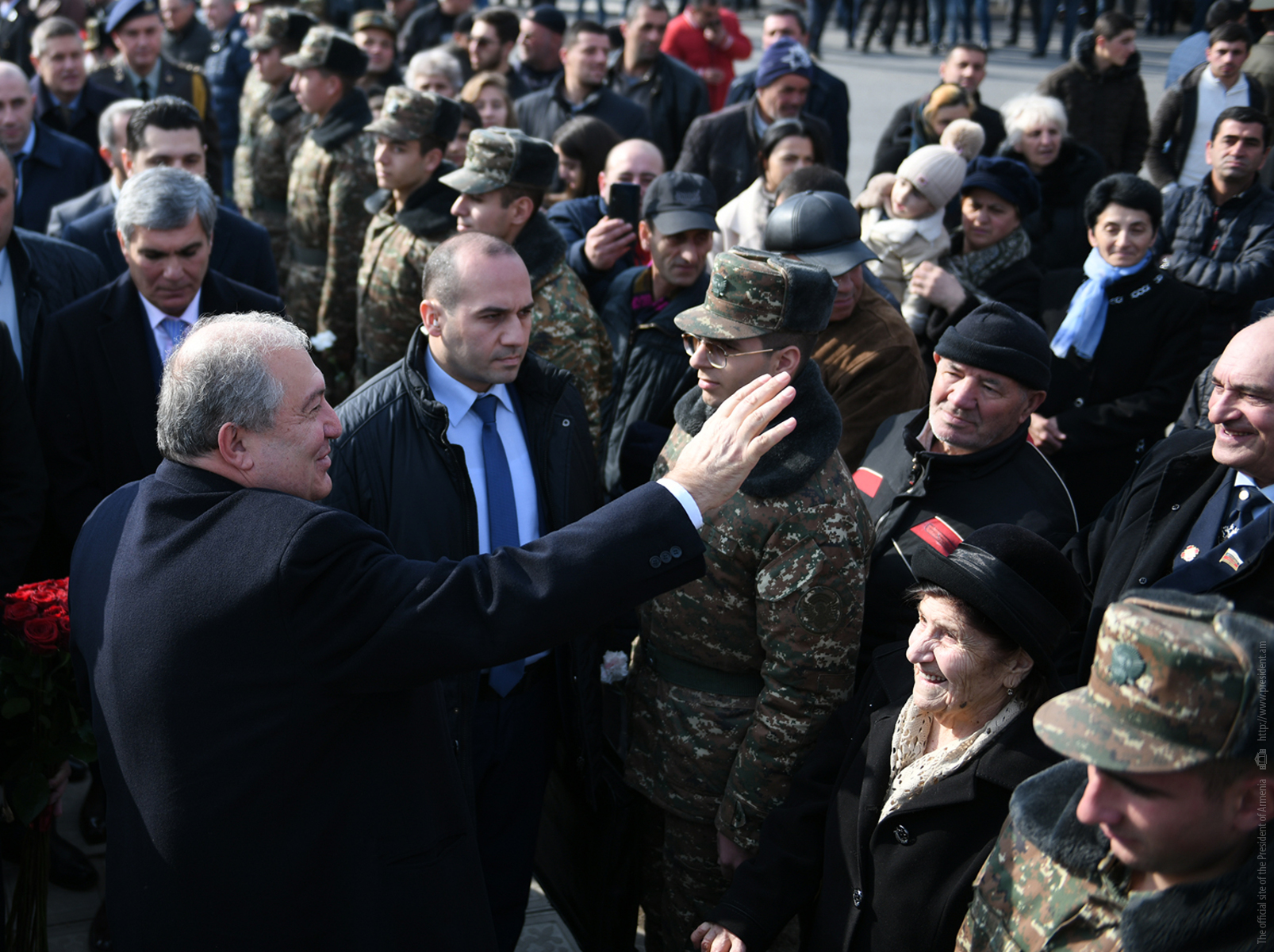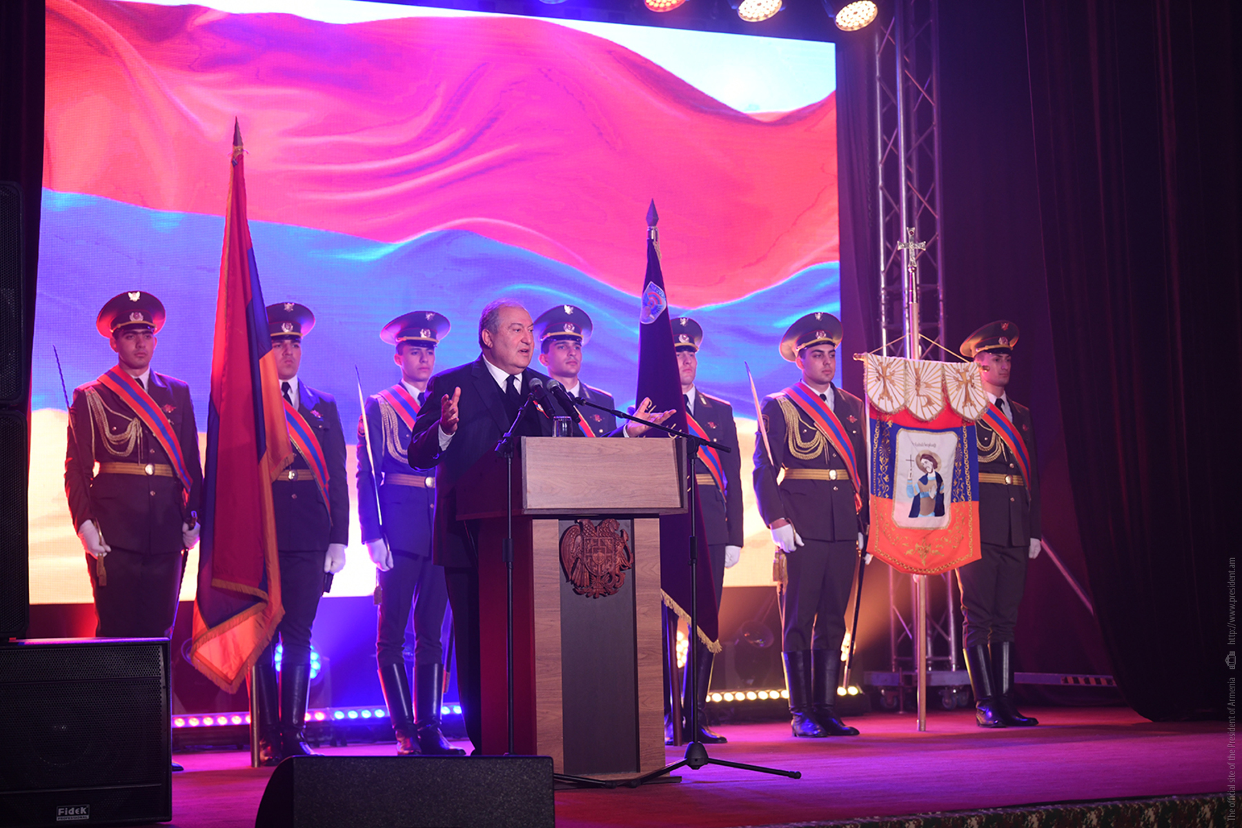 «Я с большим оптимизмом смотрю в будущее. Я уверен, что 21-ый век – век нашего народа – век малого государства и всемирной нации, где каждый армянин, независимо от того, где он живёт, должен внести свой вклад, - продолжая слово сказал Армен Саркисян. – Я верю, что в 21-ом веке, где не природные ископаемые будут важны, а человеческая ценность, мысль, наш народ имеет преумноженную возможность быть одним из первых. Мир меняется: вместо морей будут моря информации, вместо нефти будут новые технологии, вместо чистой энергии будет мысль. В 21-ом веке мы должны поставить в первую очередь на службу нашей армии нашу мысль, современные технологии, все возможные новости науки и техники. Я уверен, что мы в очередной раз добьёмся успеха.