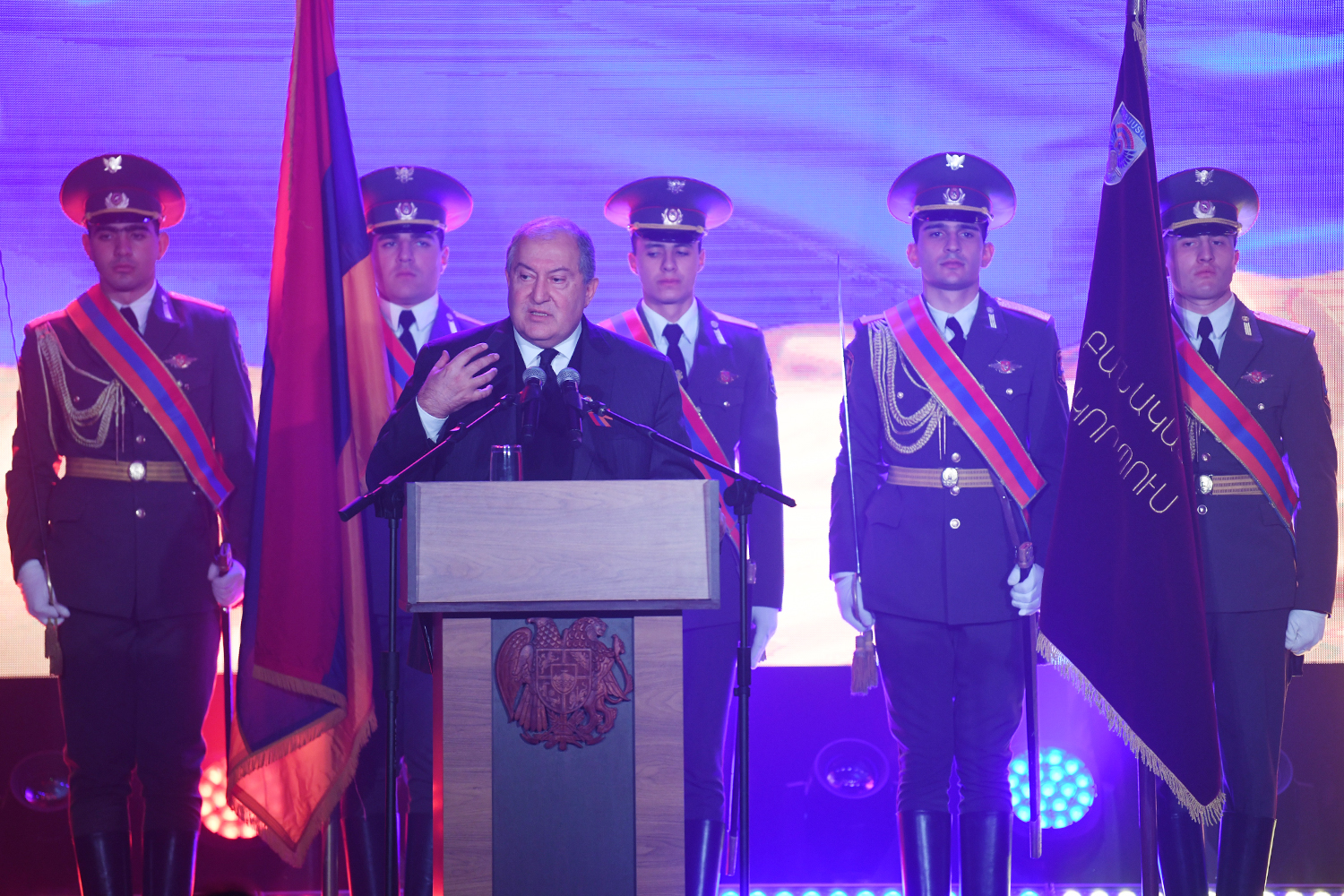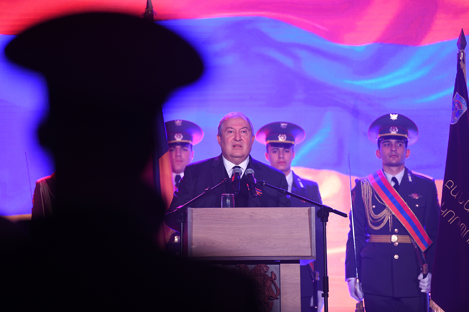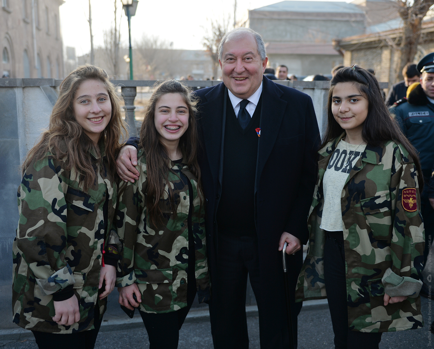 «Я с большим оптимизмом смотрю в будущее. Я уверен, что 21-ый век – век нашего народа – век малого государства и всемирной нации, где каждый армянин, независимо от того, где он живёт, должен внести свой вклад, - продолжая слово сказал Армен Саркисян. – Я верю, что в 21-ом веке, где не природные ископаемые будут важны, а человеческая ценность, мысль, наш народ имеет преумноженную возможность быть одним из первых. Мир меняется: вместо морей будут моря информации, вместо нефти будут новые технологии, вместо чистой энергии будет мысль. В 21-ом веке мы должны поставить в первую очередь на службу нашей армии нашу мысль, современные технологии, все возможные новости науки и техники. Я уверен, что мы в очередной раз добьёмся успеха.