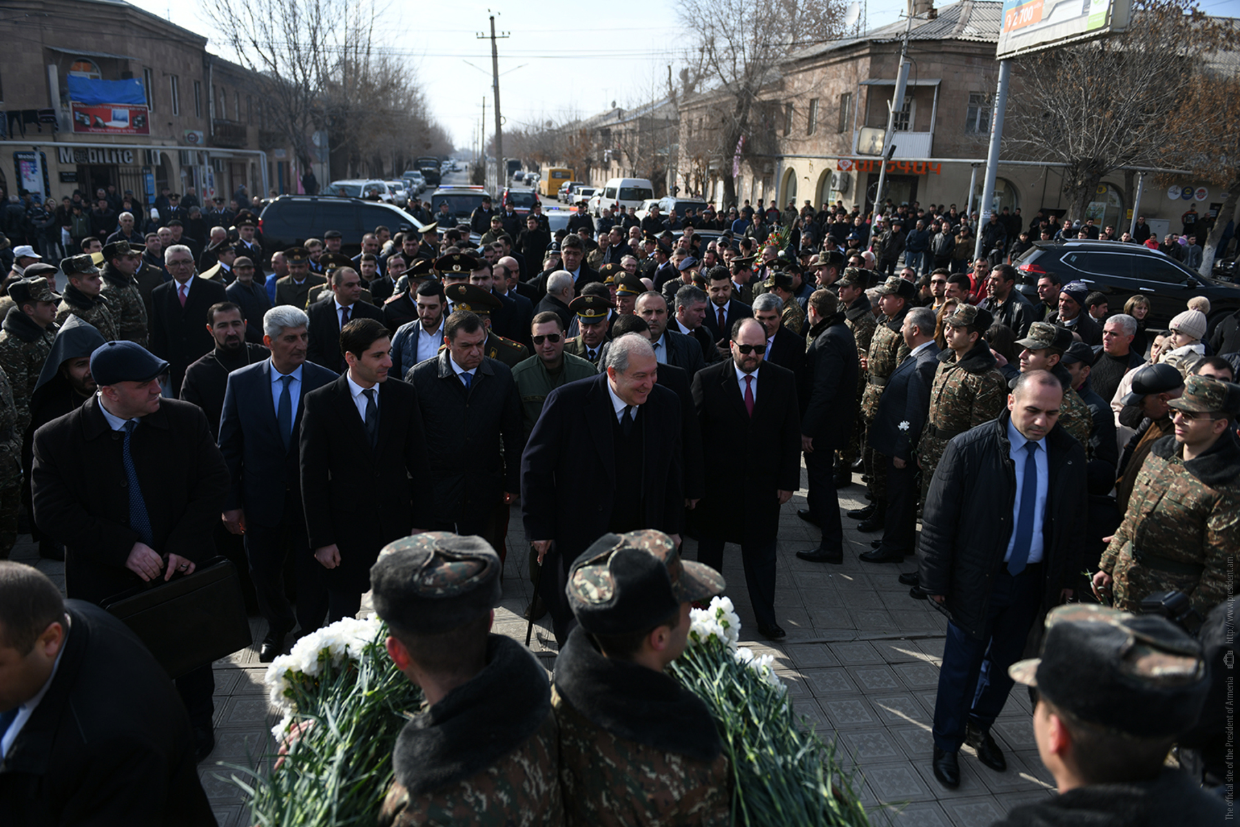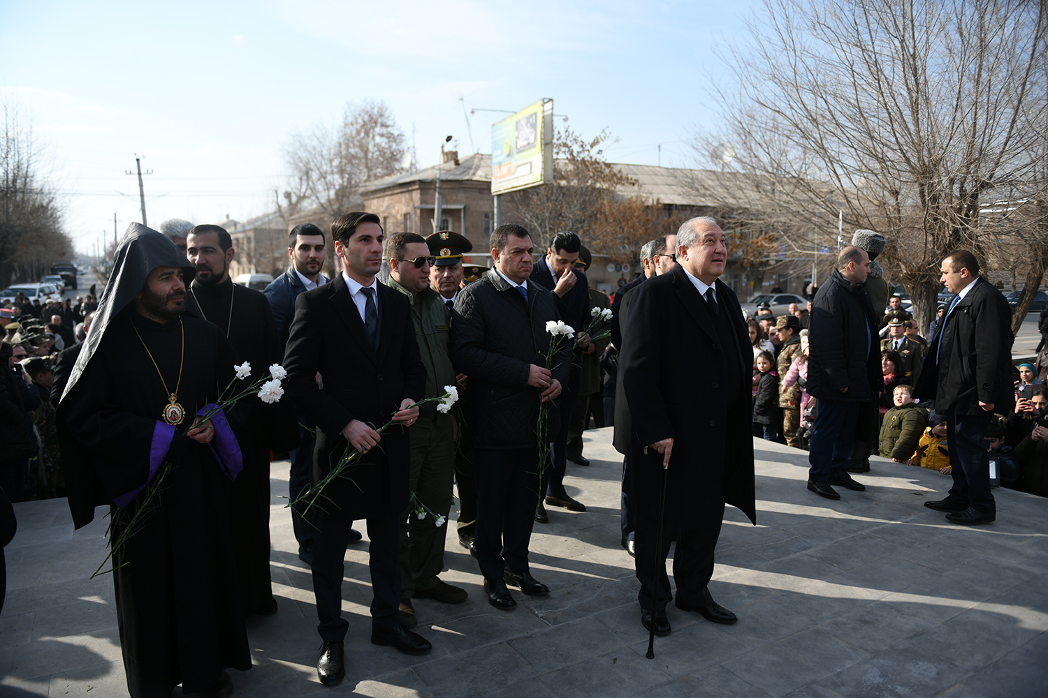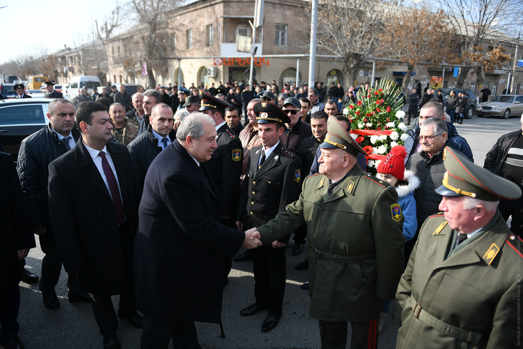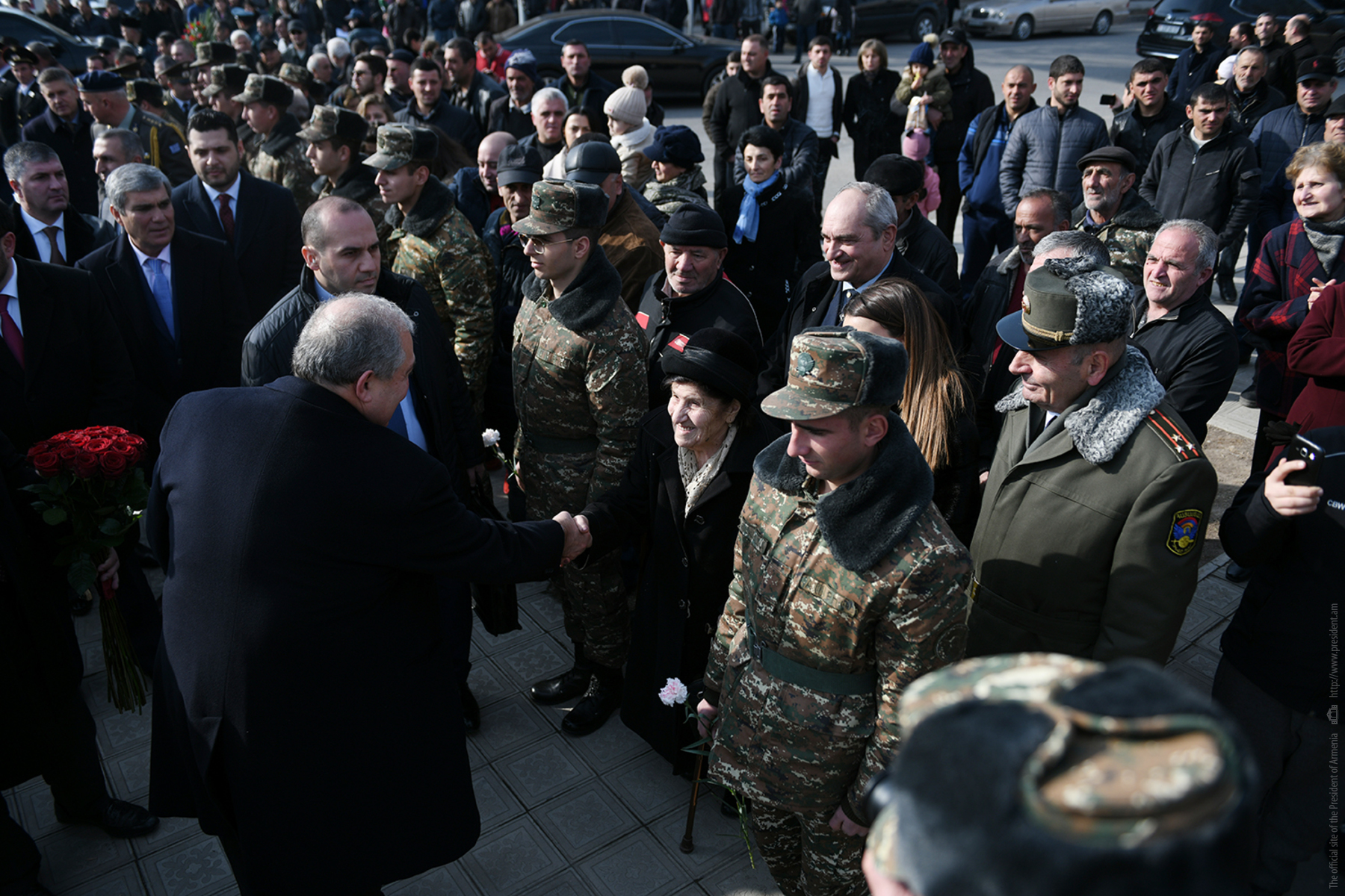 Президент Республики в Арарате возложил цветы к памятнику Национальному герою Республики Армения, Герою Арцаха Вазгену Саргсяну и воздал дань уважения его памяти. Затем Президент Саркисян принял участие в торжественном заседании, посвящённом 28-ой годовщине создания Вооружённых сил Республики Армения.