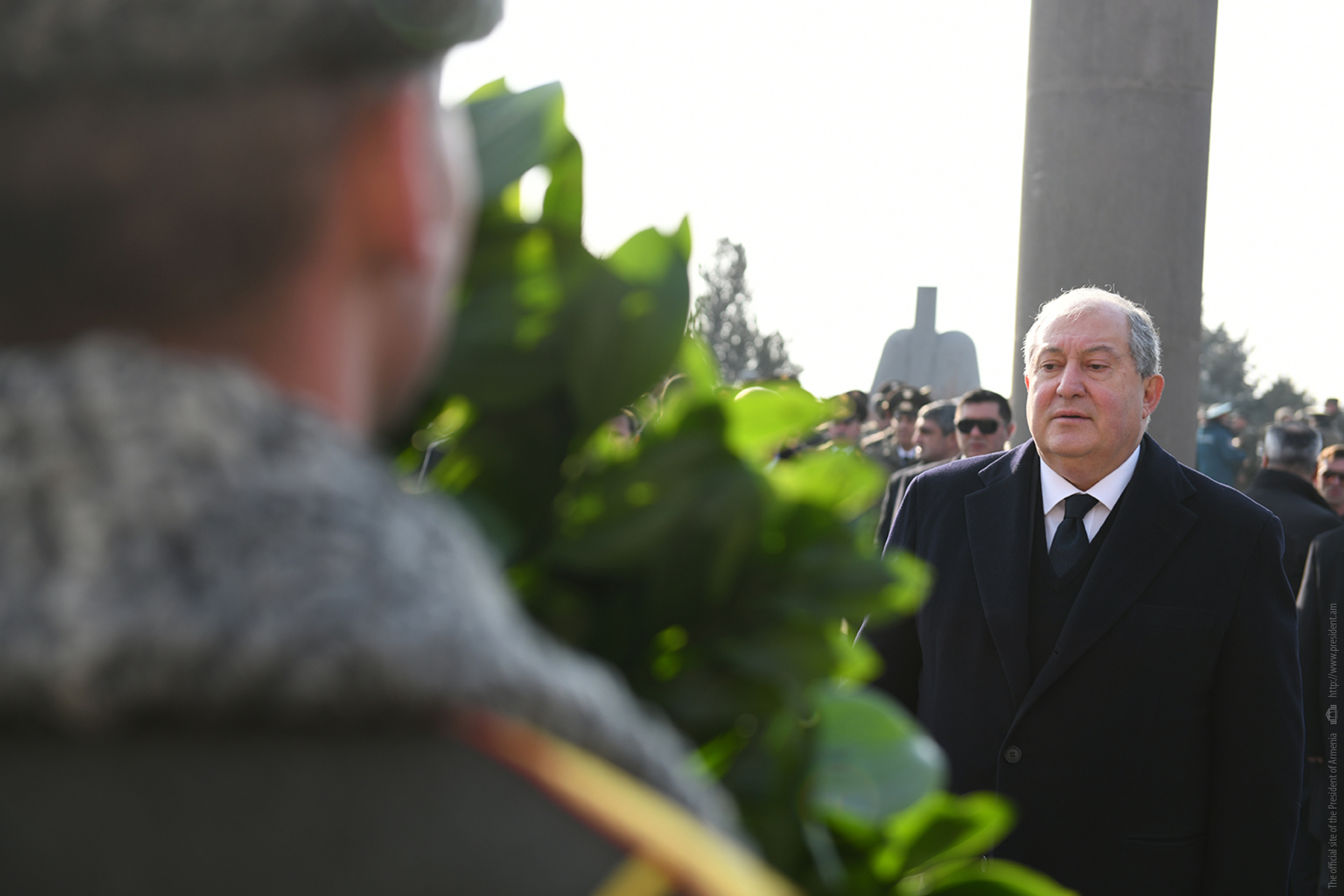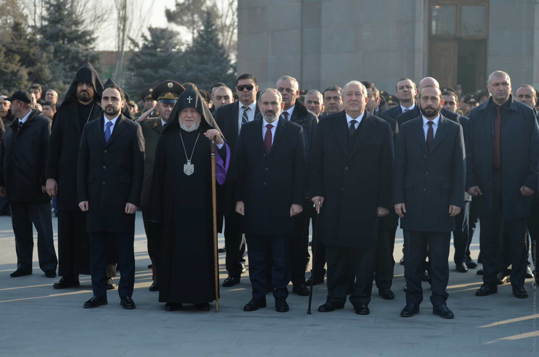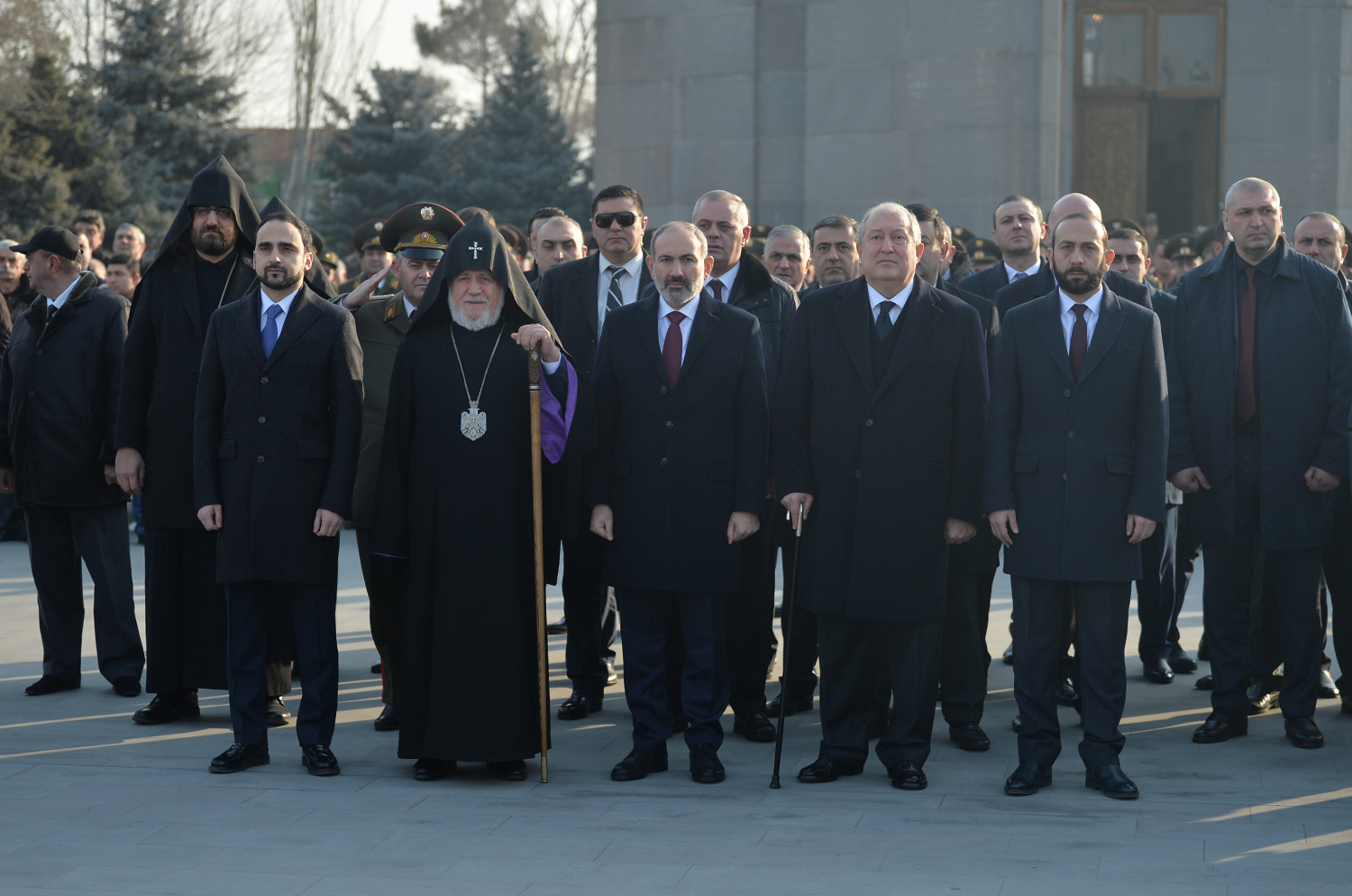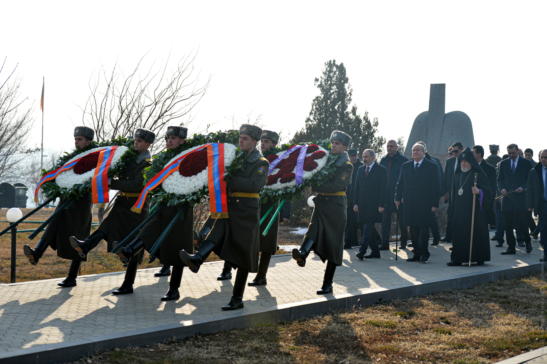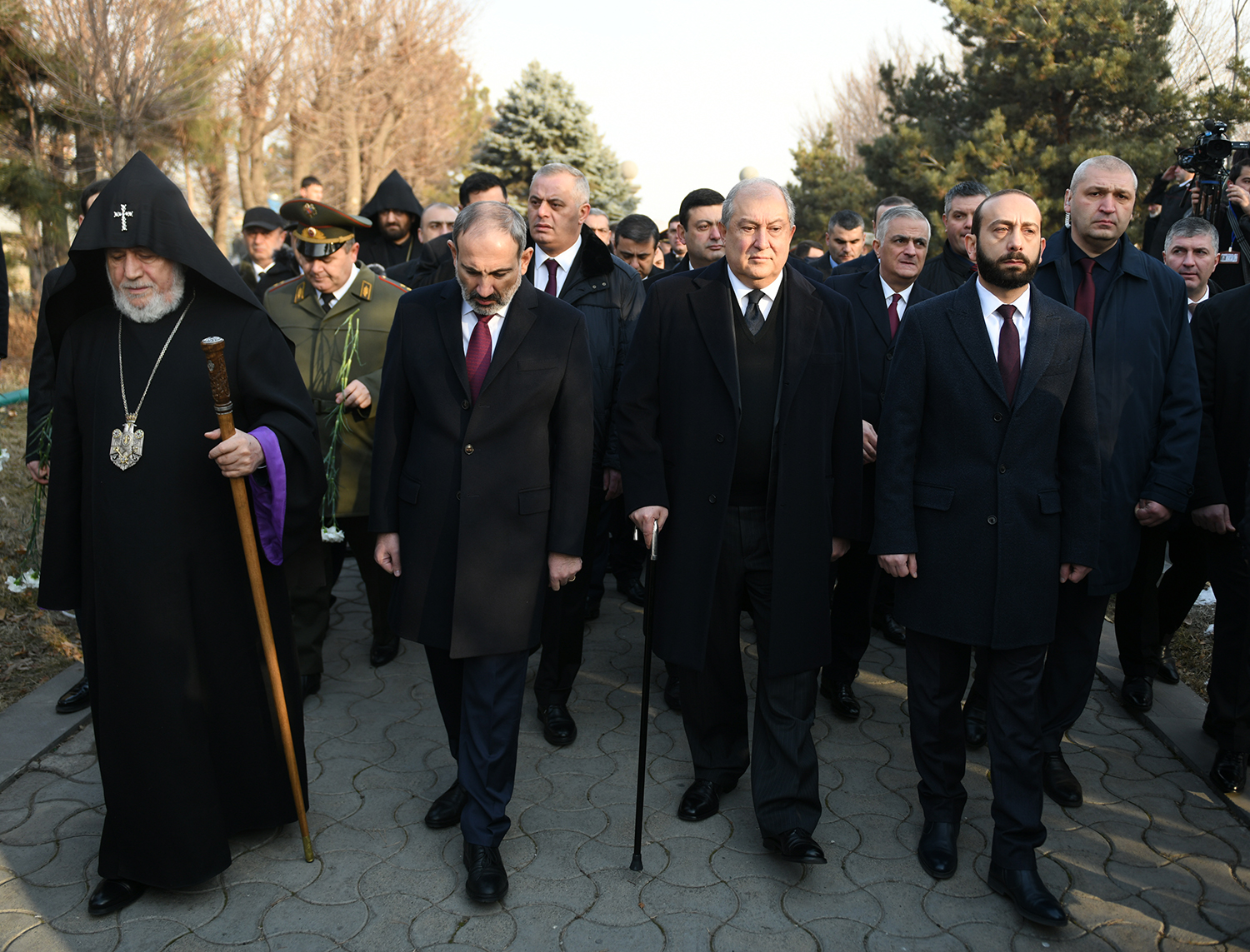 Президент Республики Армен Саркисяна вместе с Верховным Патриархом и Католикосом всех армян Гарегином Вторым, Премьер-министром Николом Пашиняном, Председателем Национального Собрания Араратом Мирзояном, членами Совета Национальной безопасности и в сопровождении руководящего состава Вооружённых сил сегодня посетил воинский пантеон «Ераблур», чтобы воздать дань уважения памяти армянских сынов, пожертвовавших своей жизнью ради независимости Отечества.