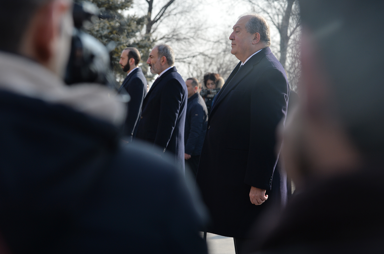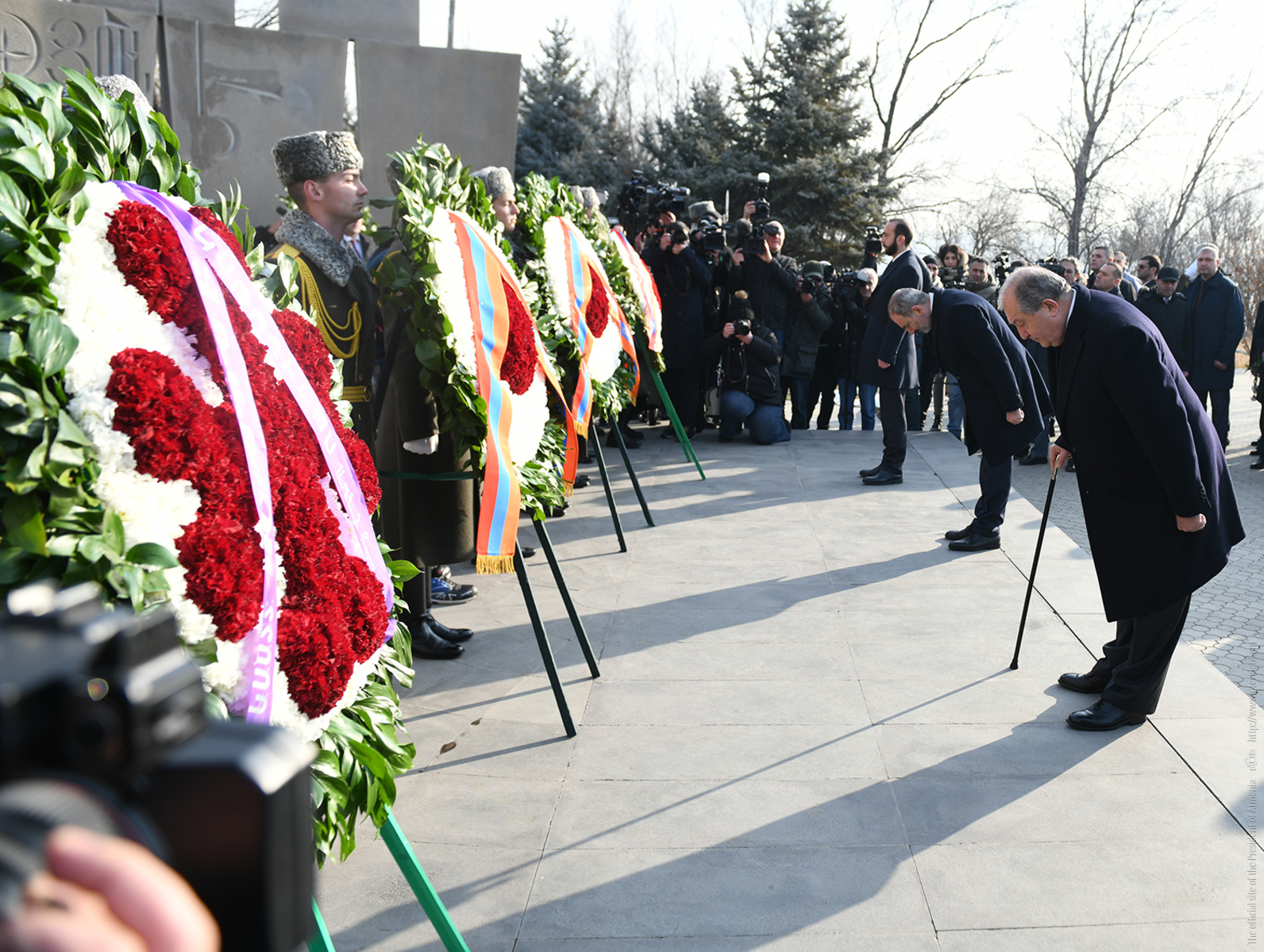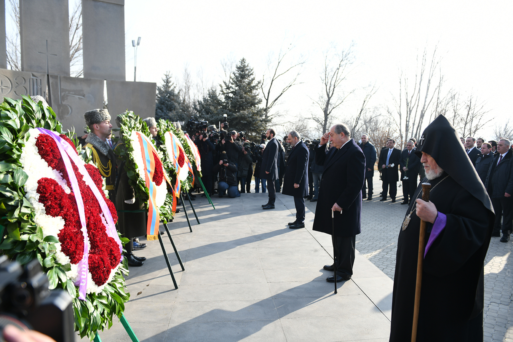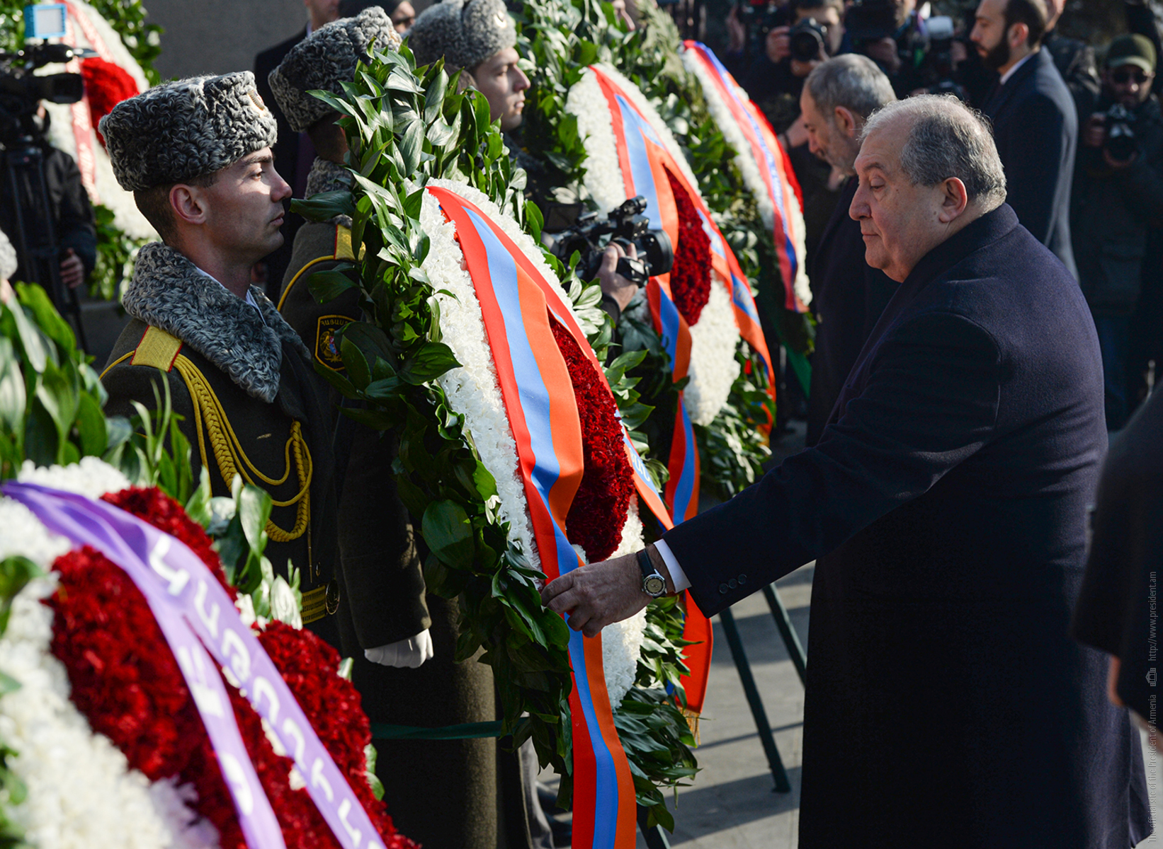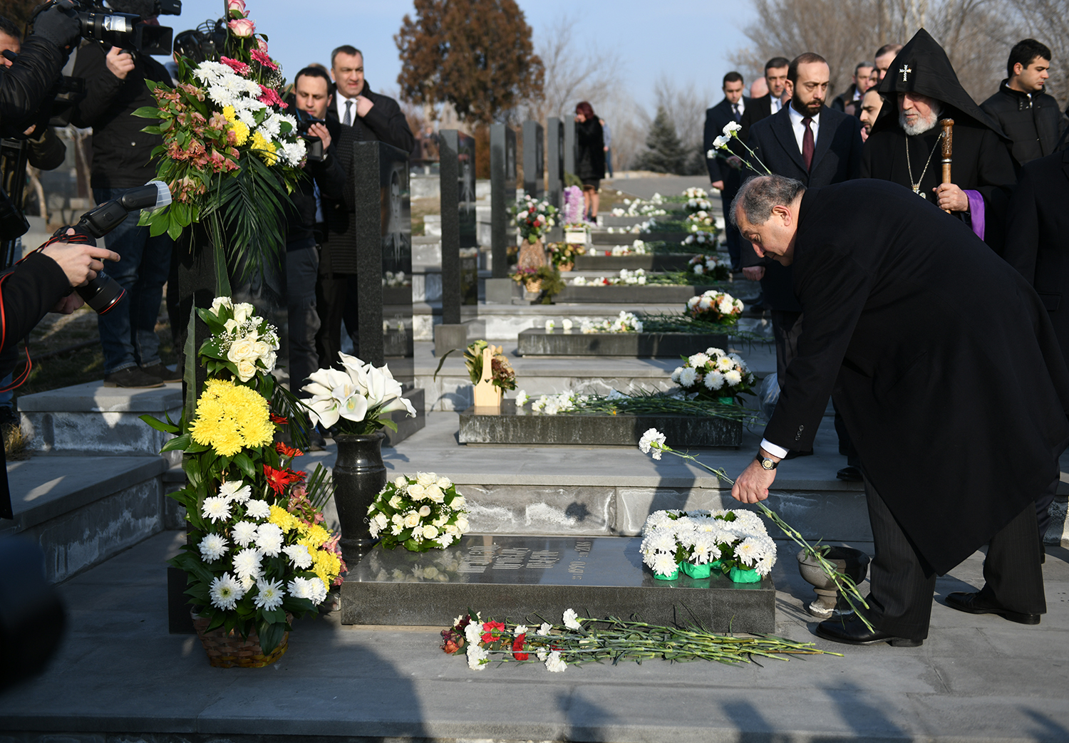 Президент Республики Армен Саркисяна вместе с Верховным Патриархом и Католикосом всех армян Гарегином Вторым, Премьер-министром Николом Пашиняном, Председателем Национального Собрания Араратом Мирзояном, членами Совета Национальной безопасности и в сопровождении руководящего состава Вооружённых сил сегодня посетил воинский пантеон «Ераблур», чтобы воздать дань уважения памяти армянских сынов, пожертвовавших своей жизнью ради независимости Отечества.