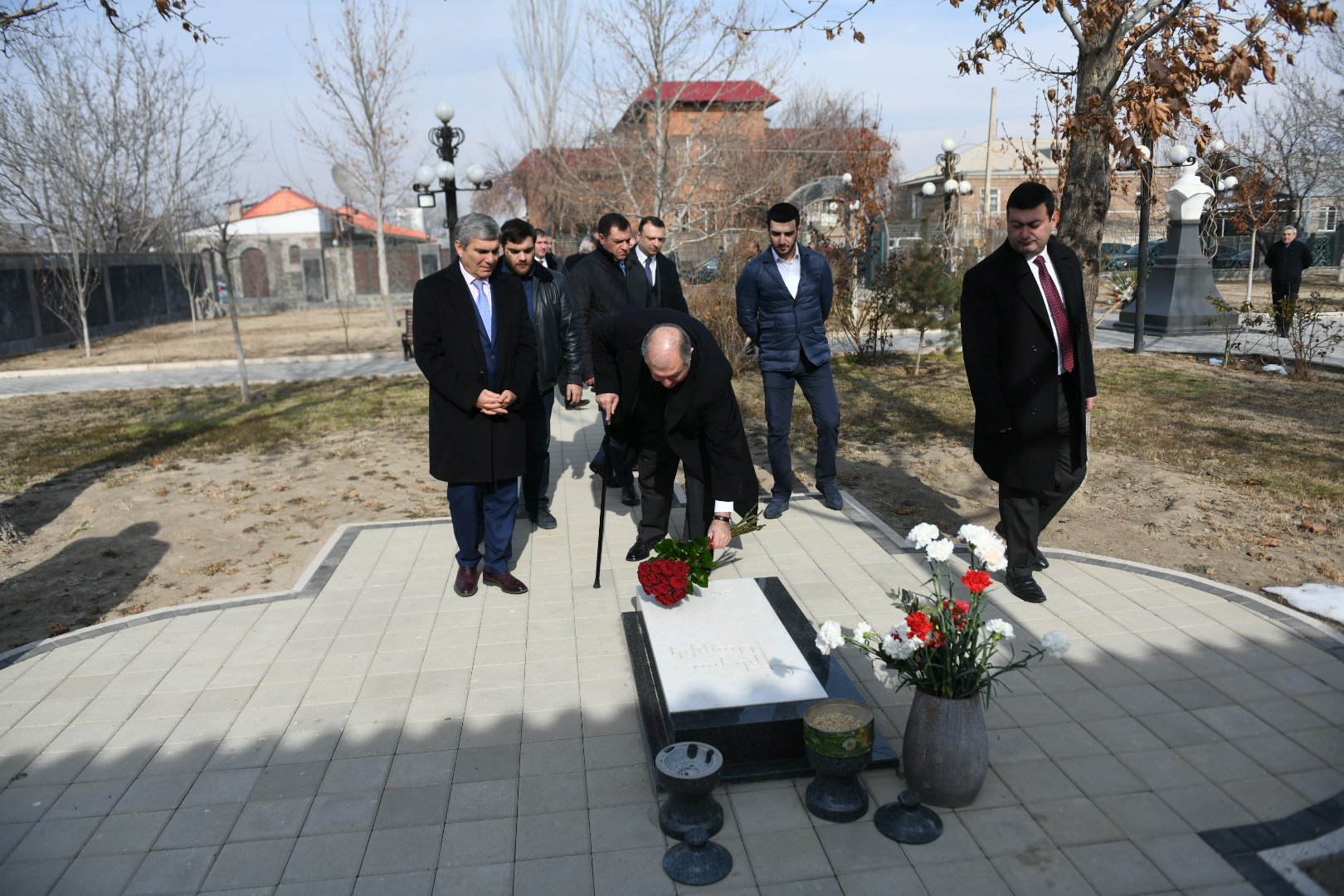 Президент возложил цветы к памятнику Вазгену Саргсяну, также возложил цветы к могиле матери Вазгена Саргсяна Греты Саргсян.