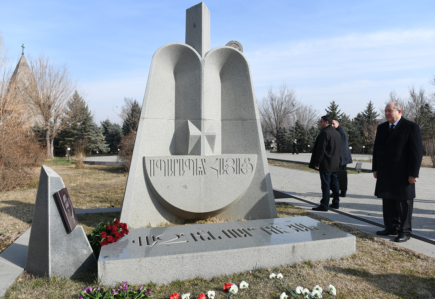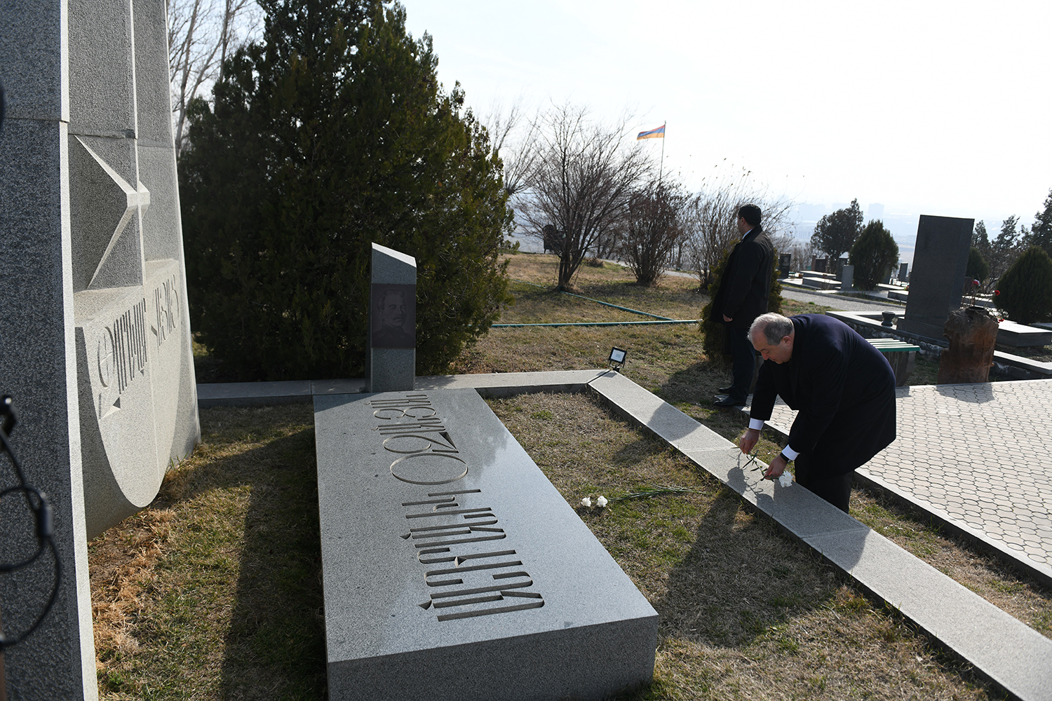 Президент Саркисян в пантеоне возложил цветы также к могиле легендарного полководца Зоравар Андраника и к мемориальной стене, которой увековечена память погибших армянских воинов.