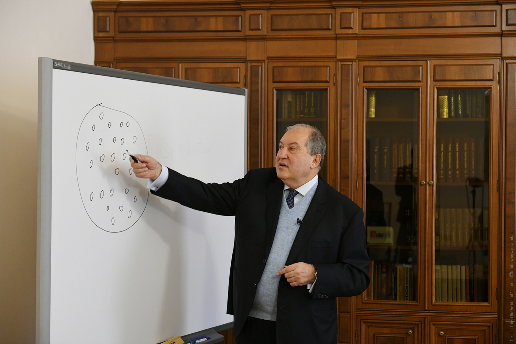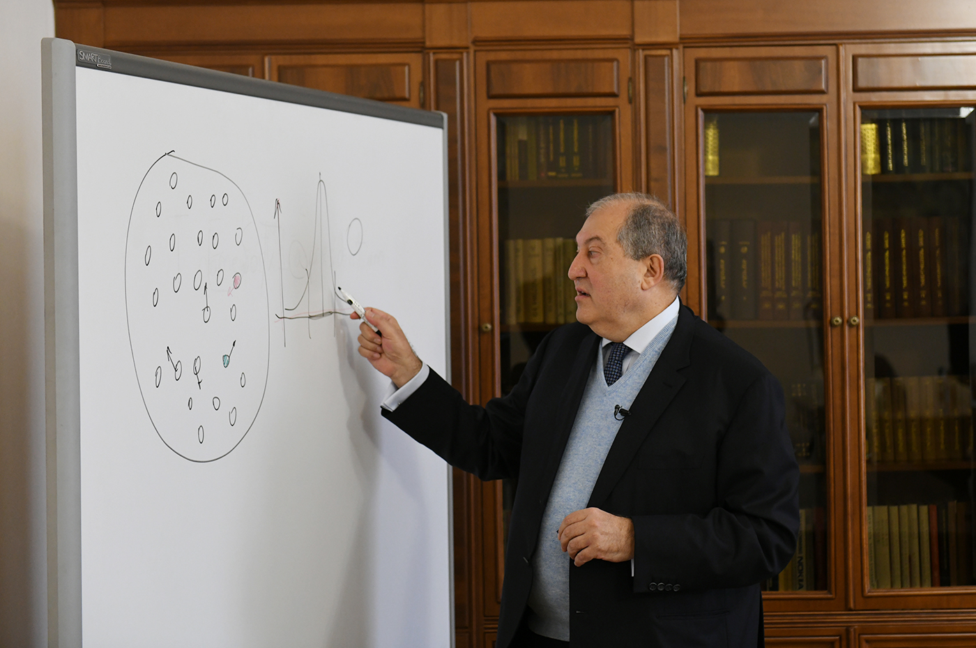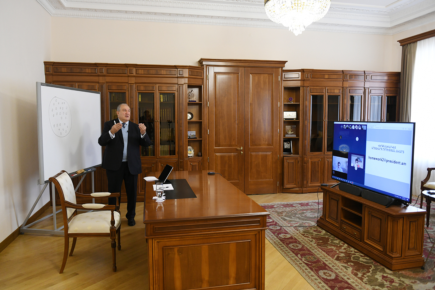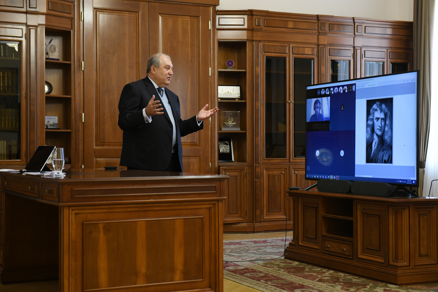 Президент Республики Армен Саркисян сегодня с применением методик дистанционного образования прочитал лекцию посредством видеосвязи группе студентов факультетов математики и механики, физики, информатики и прикладной математики Ереванского государственного университета.