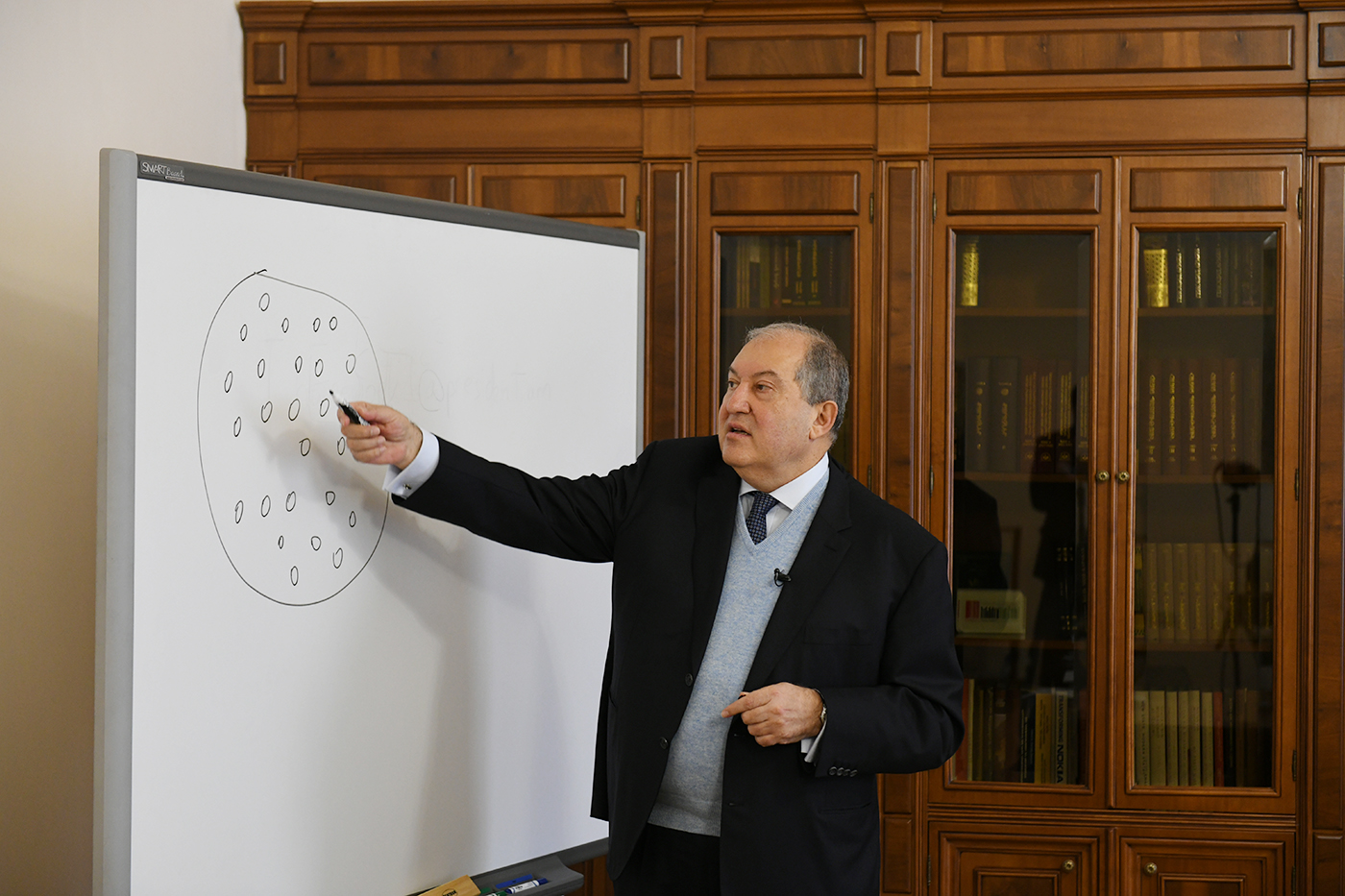 Оставаться дома или самоизолироваться – отличная возможность, чтобы думать, учиться, развиваться. Президент Армен Саркисян прочитал дистанционную лекцию студентам и дал домашнее задание, связанное с коронавирусом