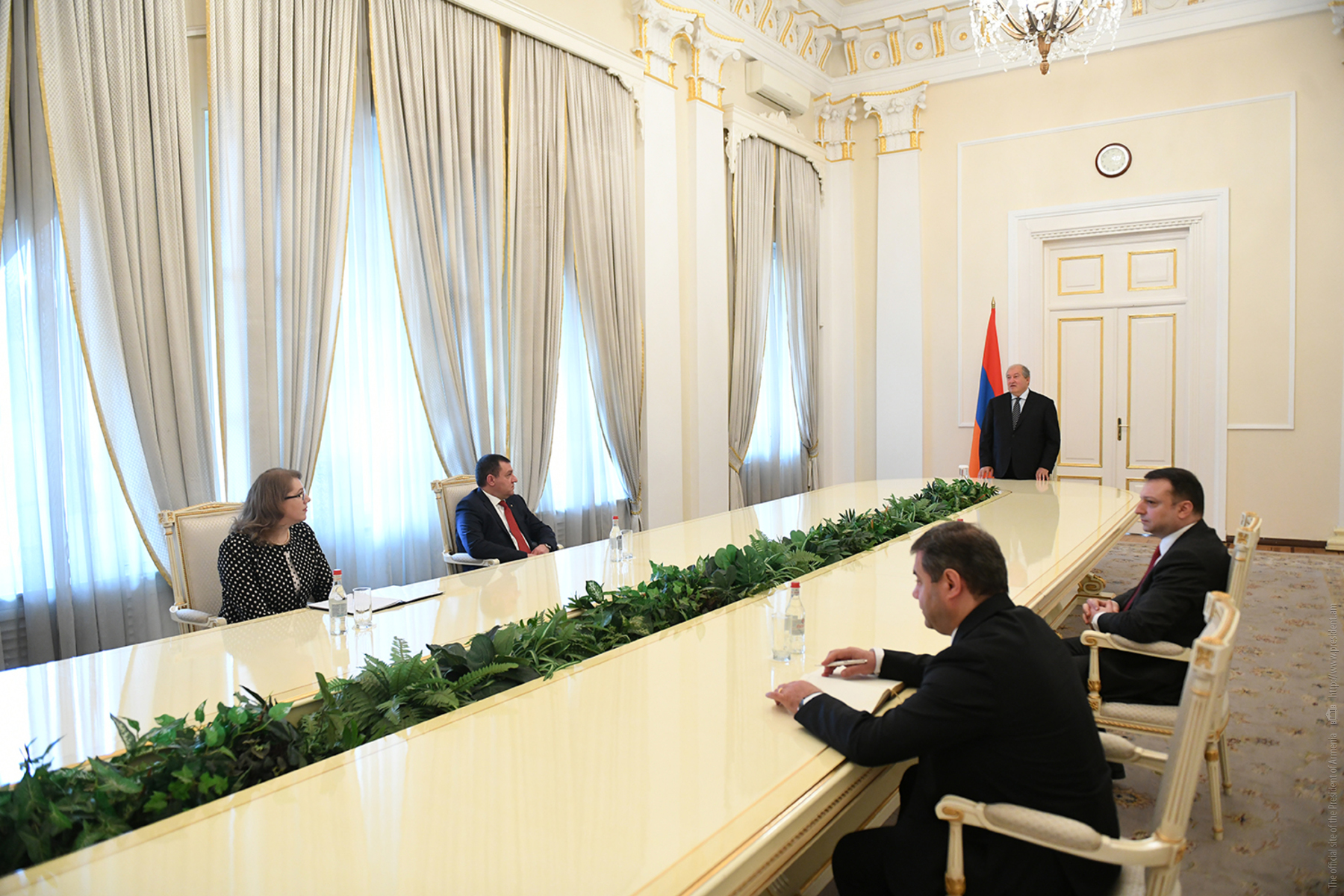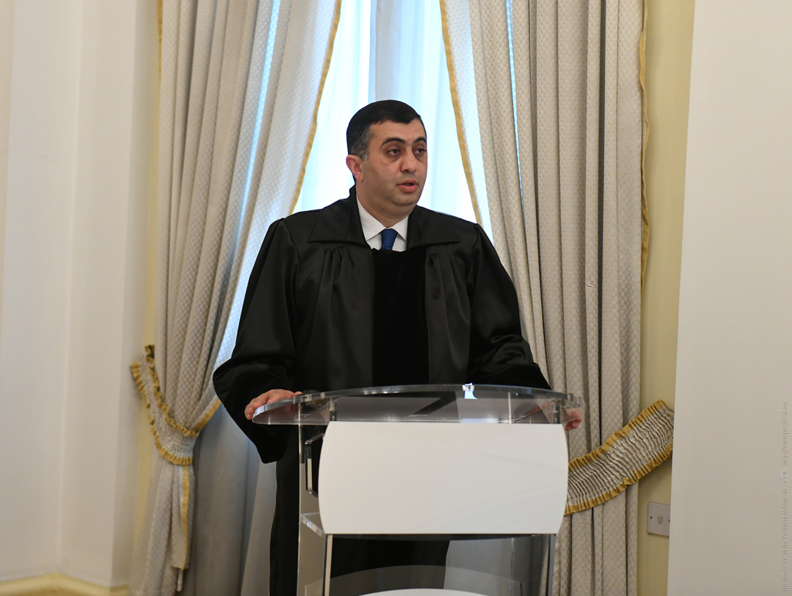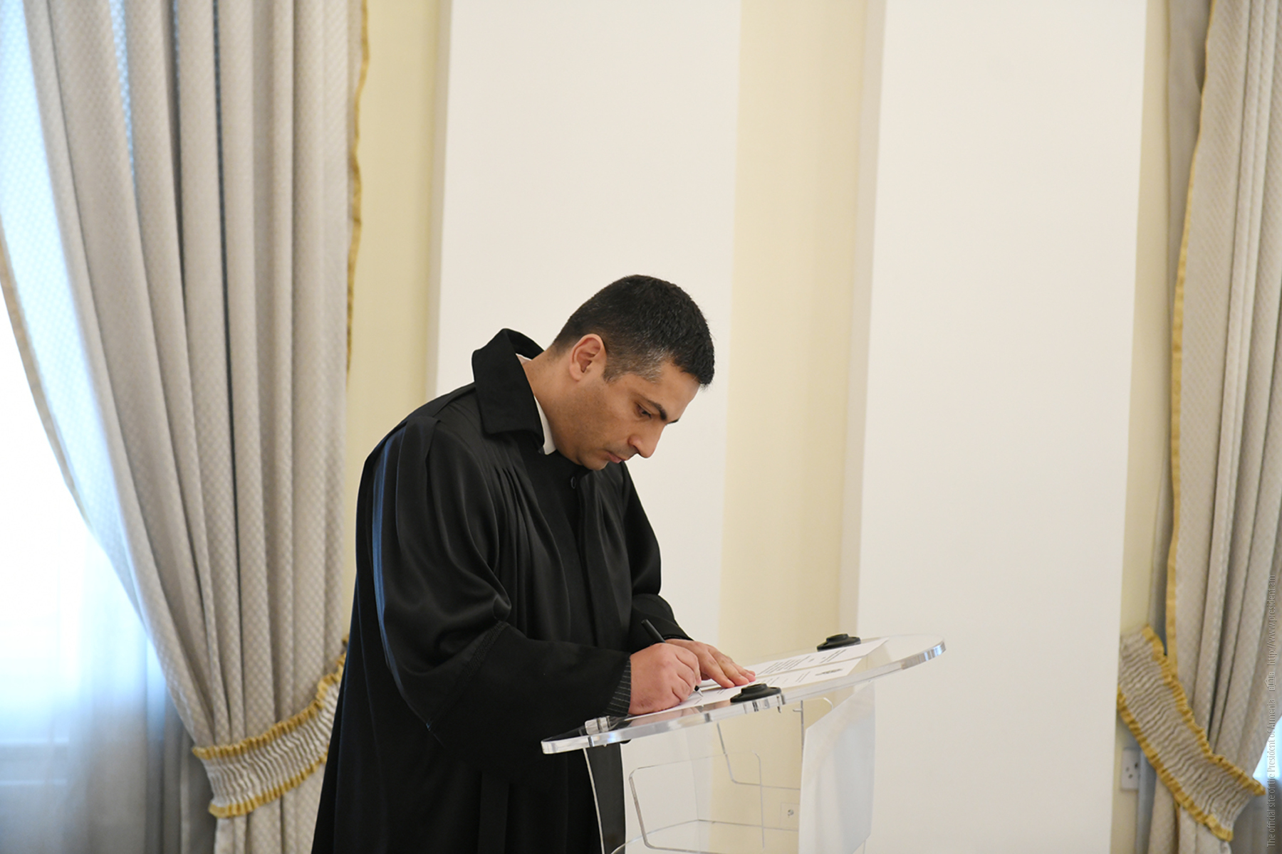 При участии Президента Республики Армена Саркисяна в Президентской Резиденции сегодня состоялась церемония, в ходе которой клятву принесли временный исполняющий обязанности члена Высшего судебного совета Армен Айкянц, судья Апелляционного гражданского суда Карен Амбарцумян и судья Административного суда Рустам Махмудян.