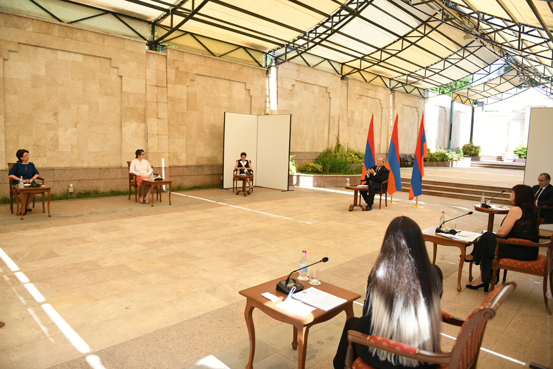 Президент призвал участников встречи: эксперта в области образования Анаит Бахшян, психолога Карине Налчаджян, врача-сексолога Нарине Нерсисян, адвоката Армине Фанян, возрастного психолога Зару Бабаян, педагога Манушак Степанян, программиста Тиграна Мартиросяна – сосредоточиться на поиске конкретных решений и, как представители разных областей, сформулировать в виде предложений свою озабоченность, предложив также консультативное содействие аппарата Президента.