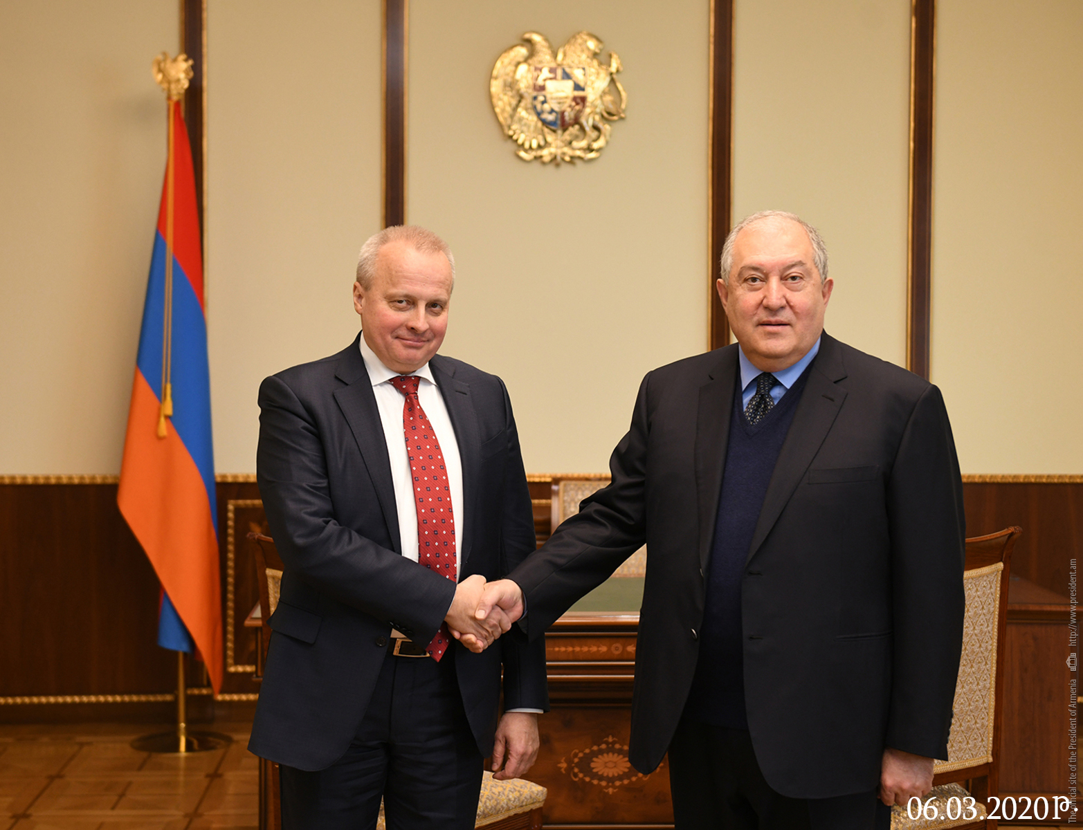 Президент Саркисян поздравил посла Копыркина, персонал посольства и в их лице дружественный народ России с национальным праздником Российской Федерации - Днём России.
