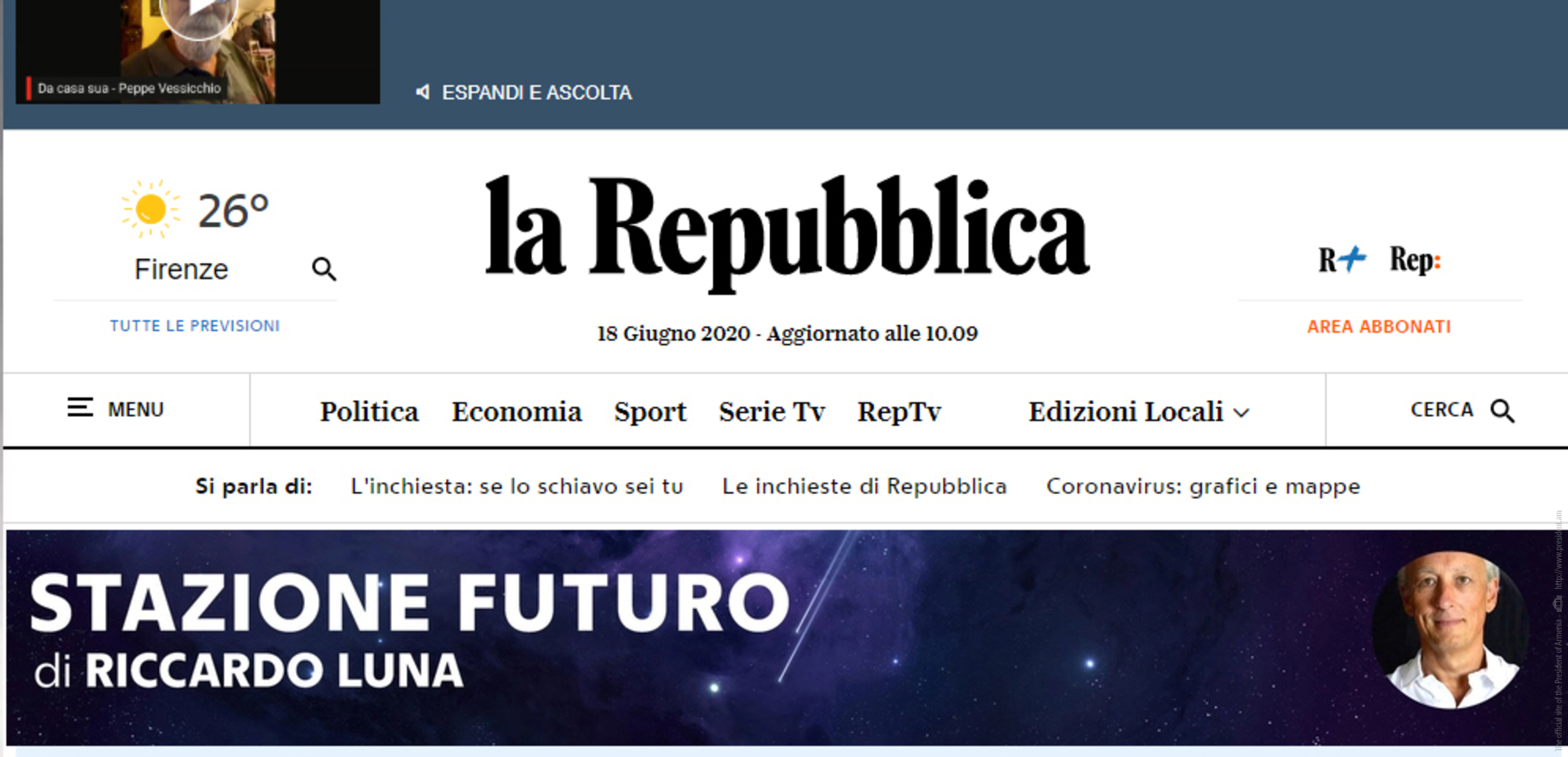 Авторитетная итальянская ежедневная газета «la Repubblica» в опубликованной 16 июня статье под рубрикой «Станция будущего» коснулась нового навязанного обществам по причине распространения коронавируса образа жизни, вызовов и трудностей и в этом контексте представила точку зрения Президента Армении Армена Саркисяна.