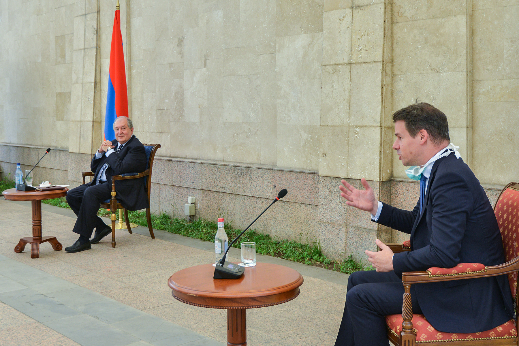 Чрезвычайный и полномочный посол Франции в Армении Джонатан Лакот, выразив благодарность Президенту Республики за приём, отметил, что в течение следующей недели при поддержке правительства Франции в Армению прибудут новые медработники. Он счёл примечательным, что никто из прибывших из Франции врачей не имеет армянских корней и они впервые открывают для себя Армению. «Я надеюсь, что эта миссия откроет новую страницу в армяно-французских отношениях», - сказал посол. Он отметил, что французские специалисты находятся в Армении, чтобы поделиться опытом и помочь выйти из создавшейся ситуации.