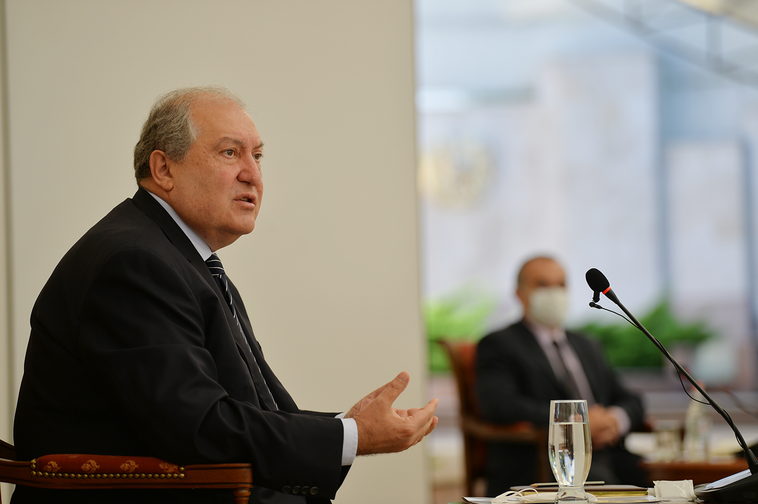 Президент Саркисян отметил, что в изменённом после пандемии мире будут перераспределяться роли и рынки. «Мы должны просто посмотреть в глаза реальности и суметь найти решения и во внутренних и во внешних сферах». В этом контексте он коснулся Президентских инициатив, в частности, инициативы АТОМ (Advanced Tomorrow), цель которой создать локомотивы развития промышленности, и которая касается современных новейших технологий, искусственного интеллекта. Уже есть предварительные договорённости с более чем 15 компаний. Президент Саркисян отметил, что ещё одна Президентская инициатива касается создания «коридора» продовольственной безопасности. «Используя мои связи, пытаюсь создать коридор продовольственной безопасности, - сказал Президент. – Цель следующая: сотрудничая с ОАЭ, Катаром, Кувейтом и другими странами, открыть коридор, чтобы мы имели не только большой российский рынок, но также южные рынки. Моя роль будет в том, чтобы помогать, чтобы этот коридор открылся в обе стороны, чтобы мы могли экспортировать и импортировать».