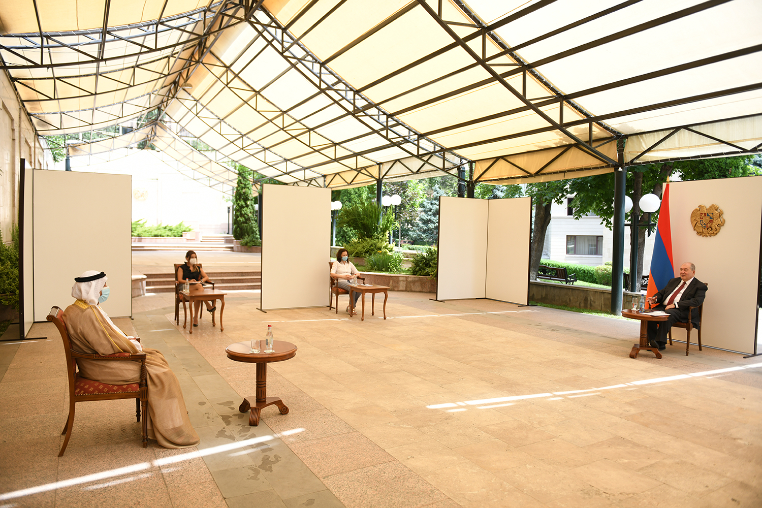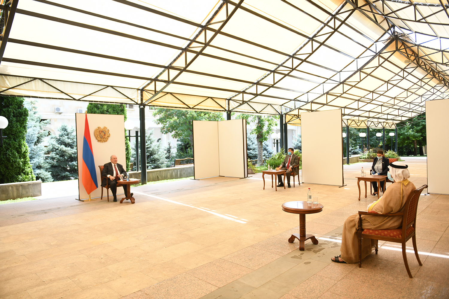 Президент попросил передать его тёплые пожелания наследному принцу Абу-Даби, его доброму другу Мухаммаду бин Зайду Аль-Нахайяну, после телефонного разговора с которым из ОАЭ в Армению было послано около семи тонн гуманитарной помощи – медицинских и санитарных принадлежностей. Президент ещё раз выразил благодарность Объединённым Арабским Эмиратам за помощь, оказанную Армении в борьбе с пандемией коронавируса.