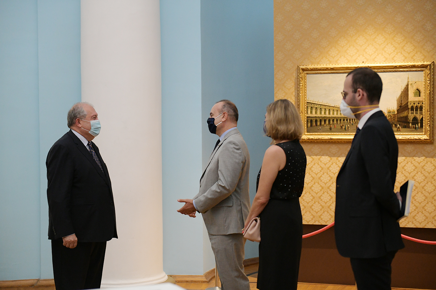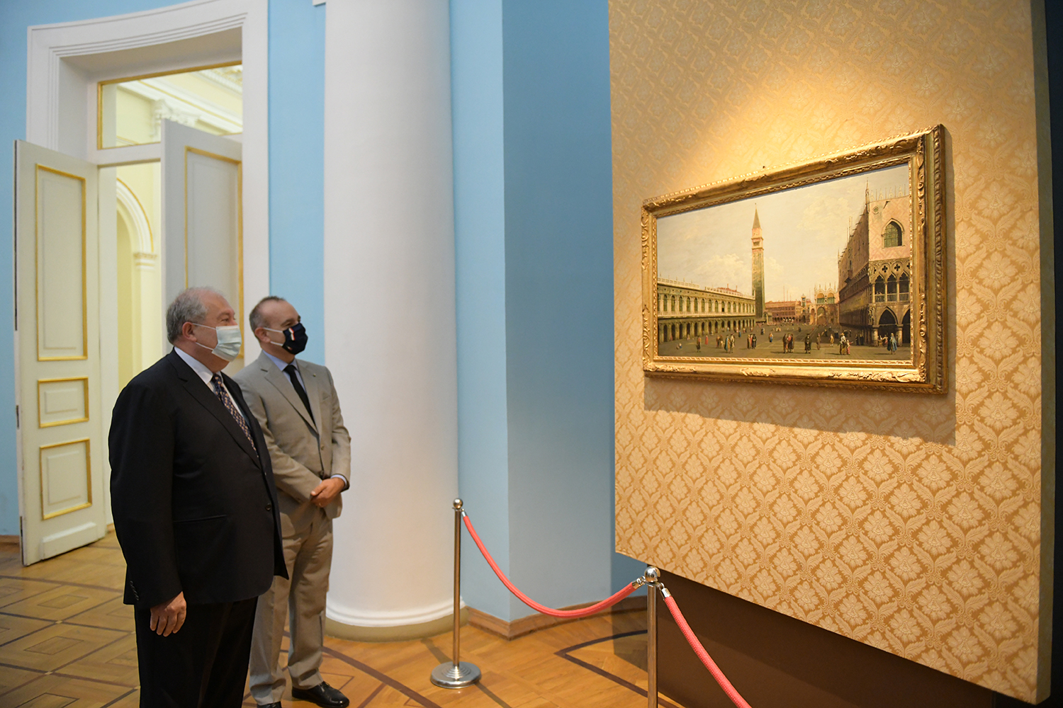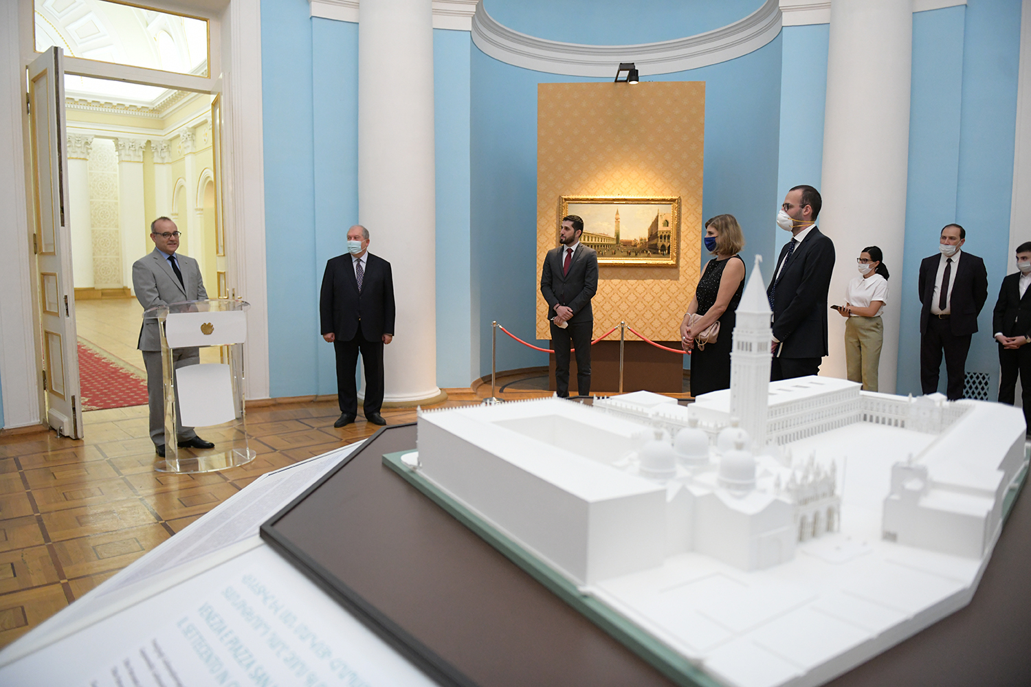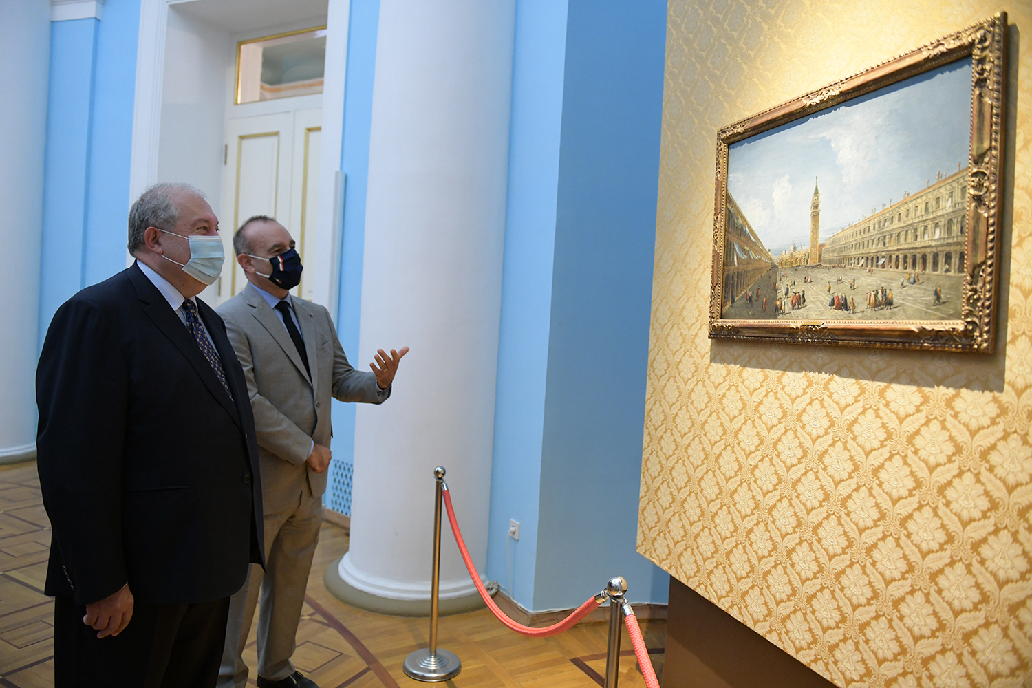 При высоком попечительстве Президентов Республики Армения и Итальянской Республики сегодня в Президентской резиденции открылась выставка уникальных экспонатов итальянского искусства. Привезённые из фонда «Паоло и Каролина Дзани» и представляющие Площадь святого Марка в Венеции четыре холста 18-го века принадлежат кисти знаменитых мастеров Джованни Антонио Каналетто, Бернардо Белотто, Франческо Гварди и Микеле Мариески.