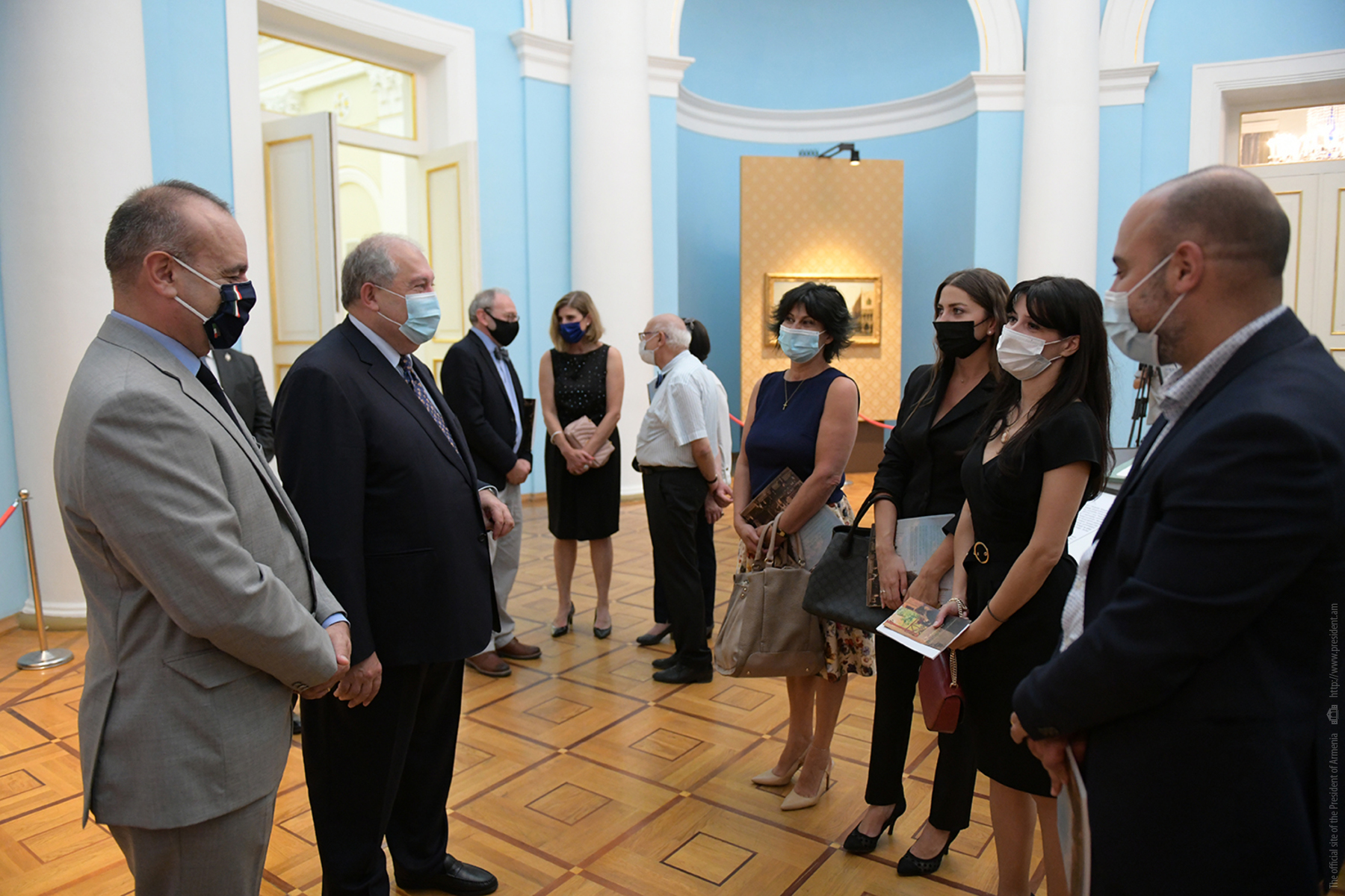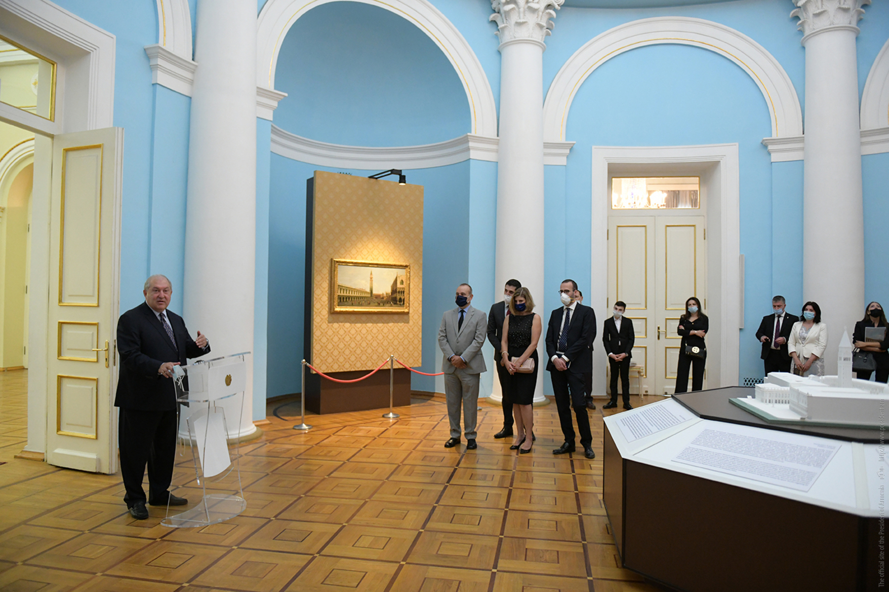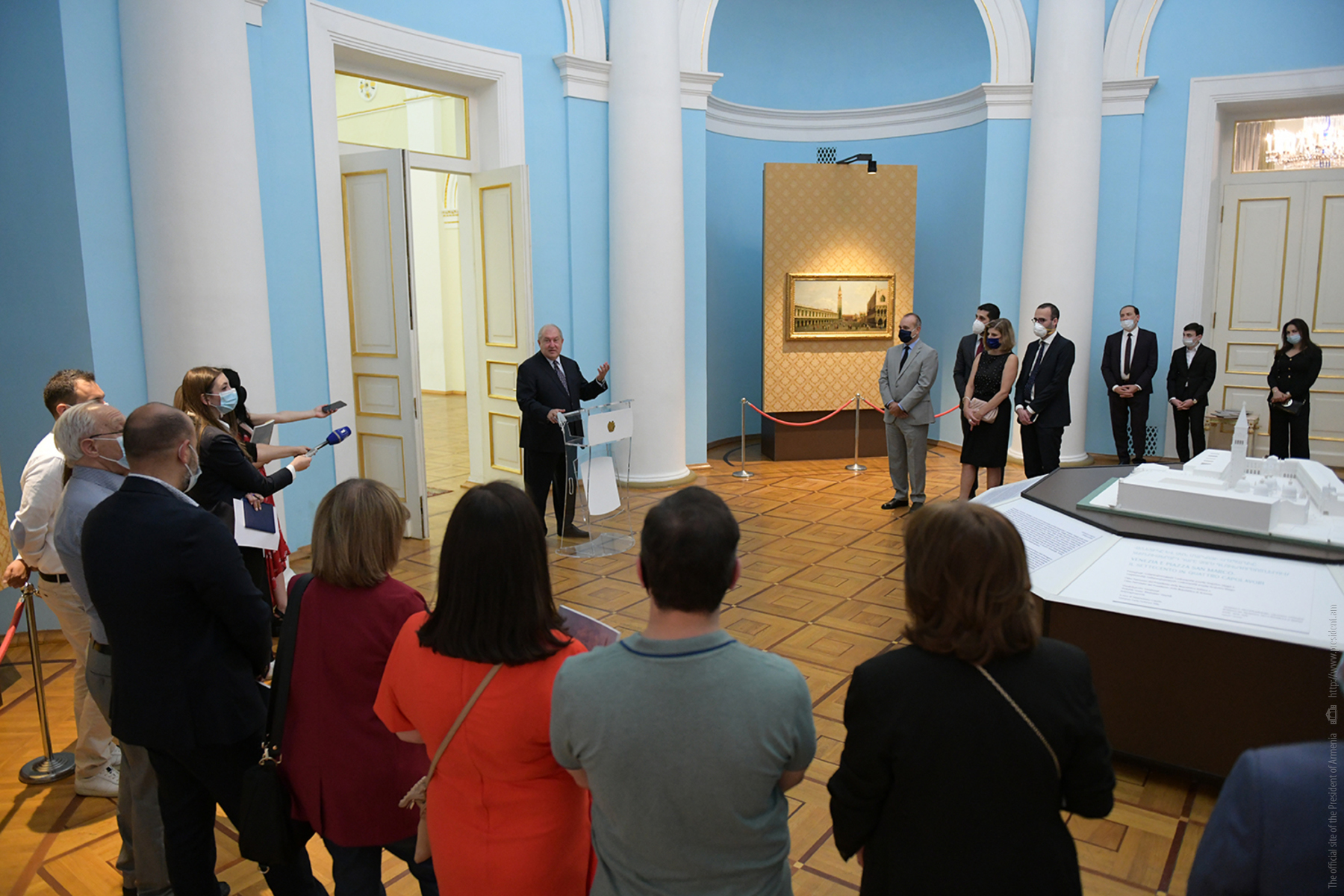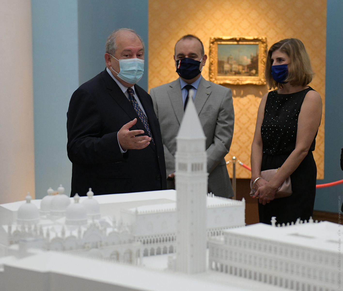 При высоком попечительстве Президентов Республики Армения и Итальянской Республики сегодня в Президентской резиденции открылась выставка уникальных экспонатов итальянского искусства. Привезённые из фонда «Паоло и Каролина Дзани» и представляющие Площадь святого Марка в Венеции четыре холста 18-го века принадлежат кисти знаменитых мастеров Джованни Антонио Каналетто, Бернардо Белотто, Франческо Гварди и Микеле Мариески.