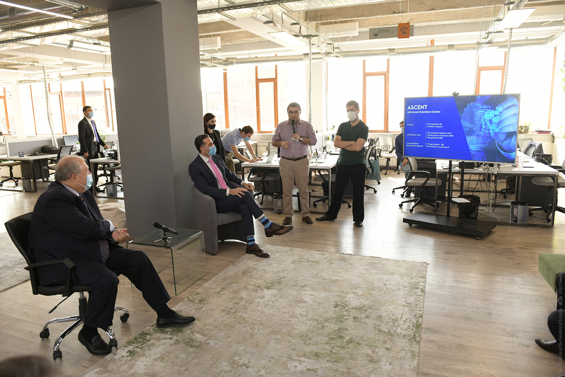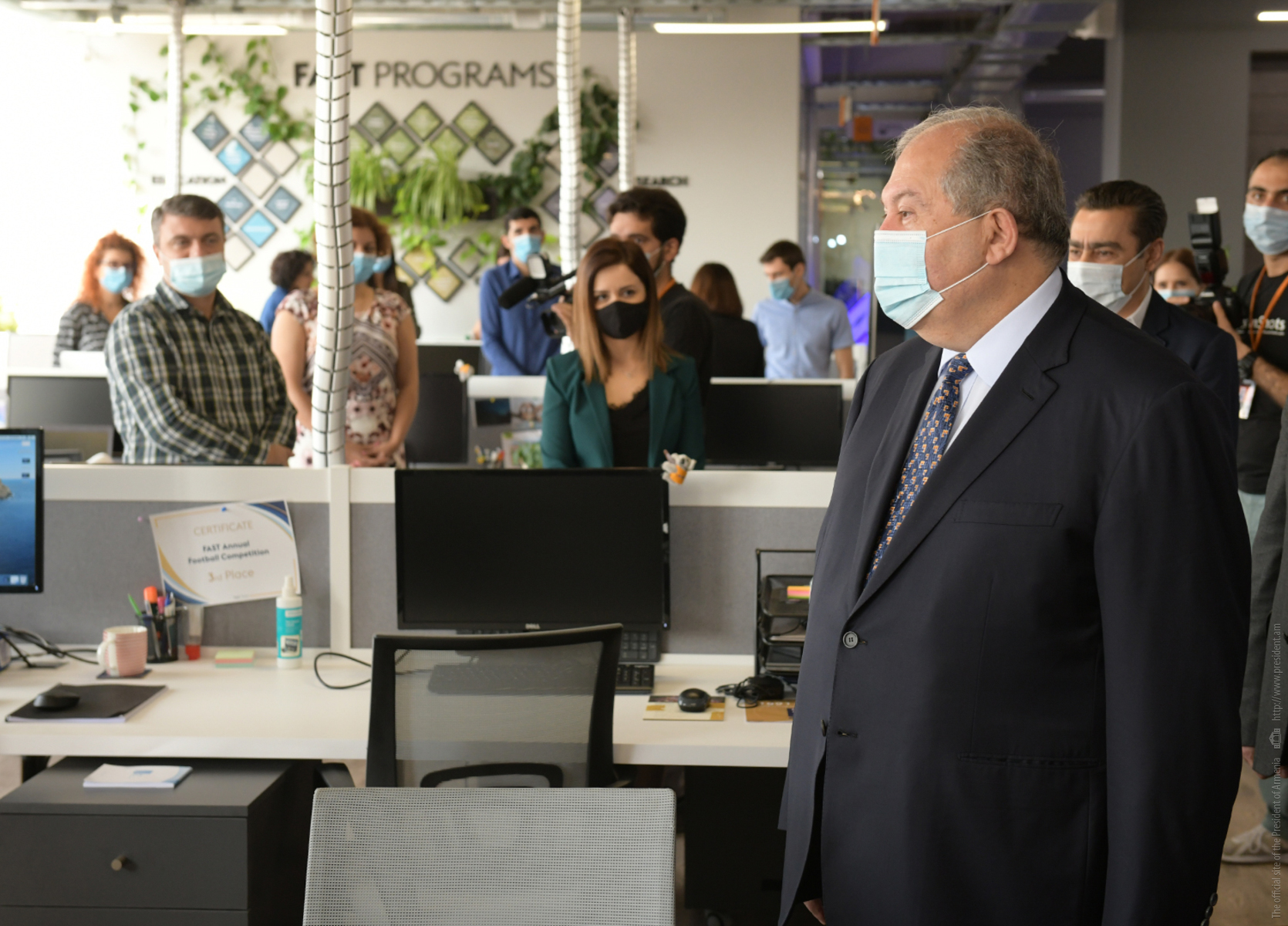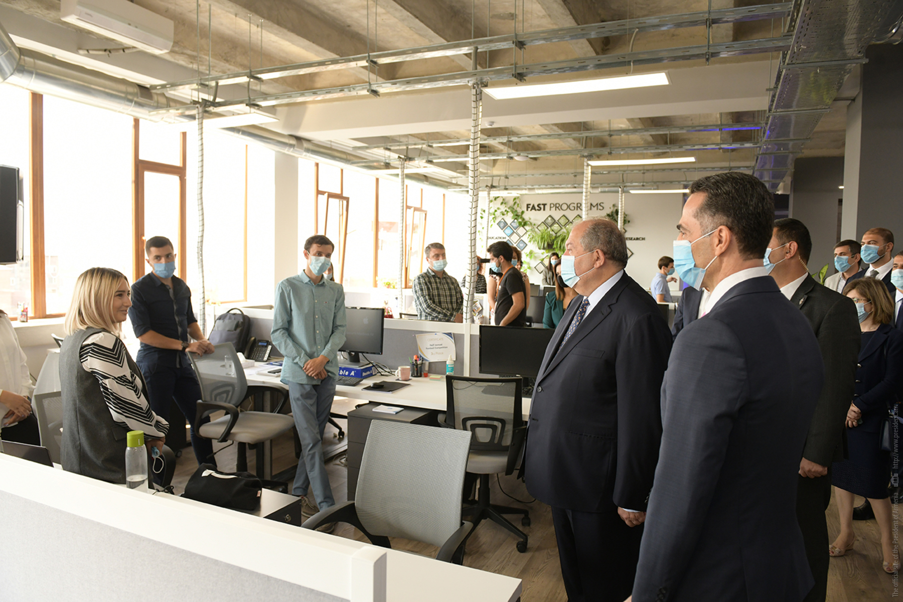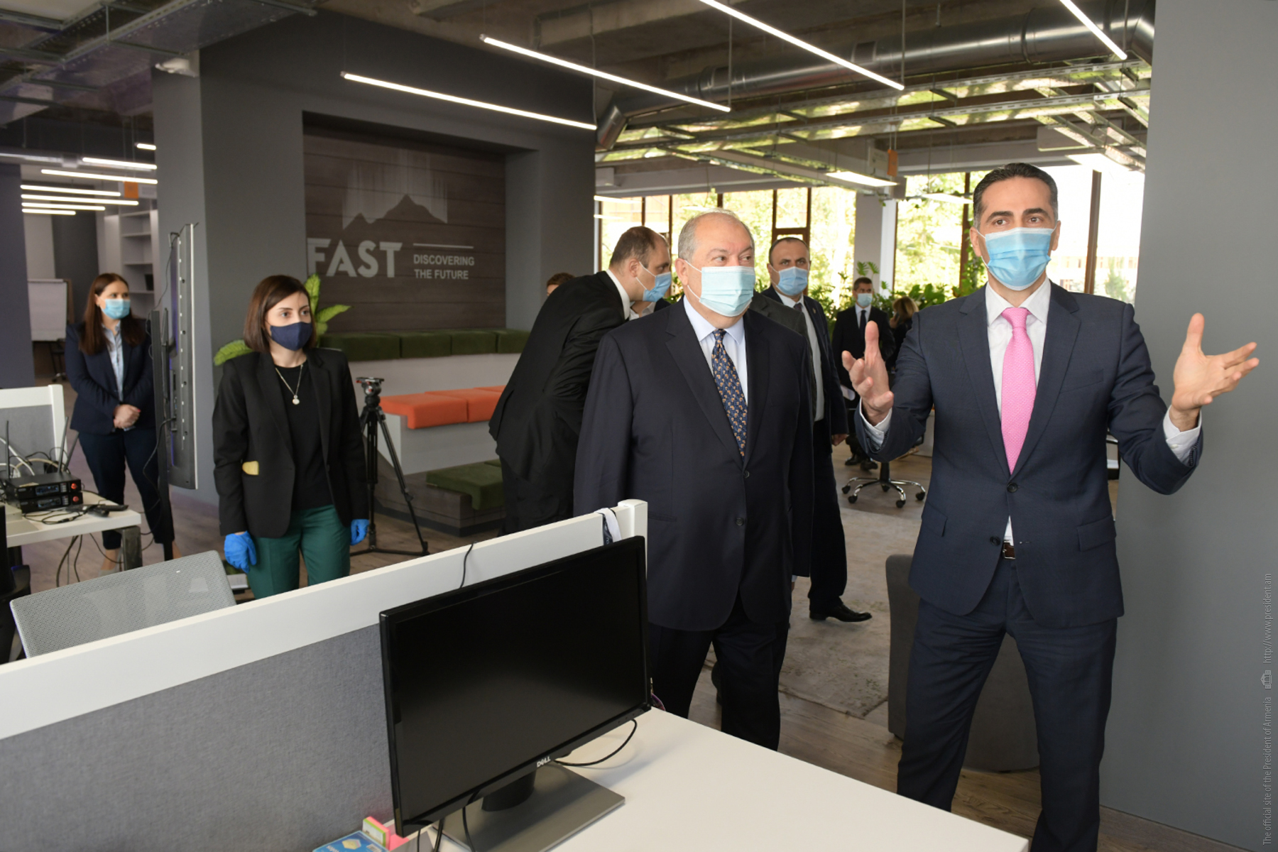 Президент Республики Армен Саркисян посетил Армянский фонд науки и технологий (FAST). В сопровождении директора фонда Армена Оруджяна Президент Саркисян совершил экскурсию по офису фонда, побеседовал с сотрудниками, поинтересовался направлениями их работы и выполняемыми проектами.