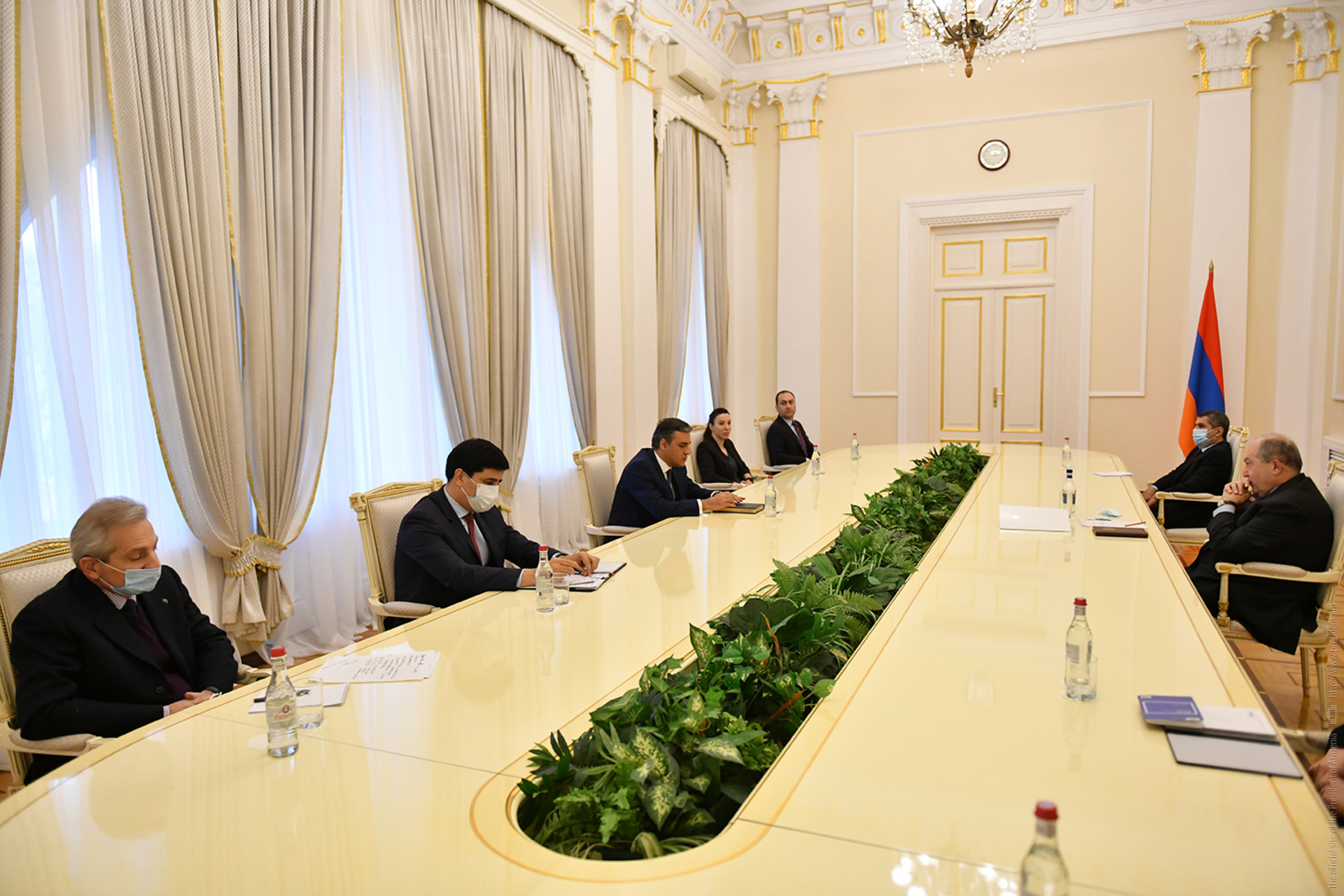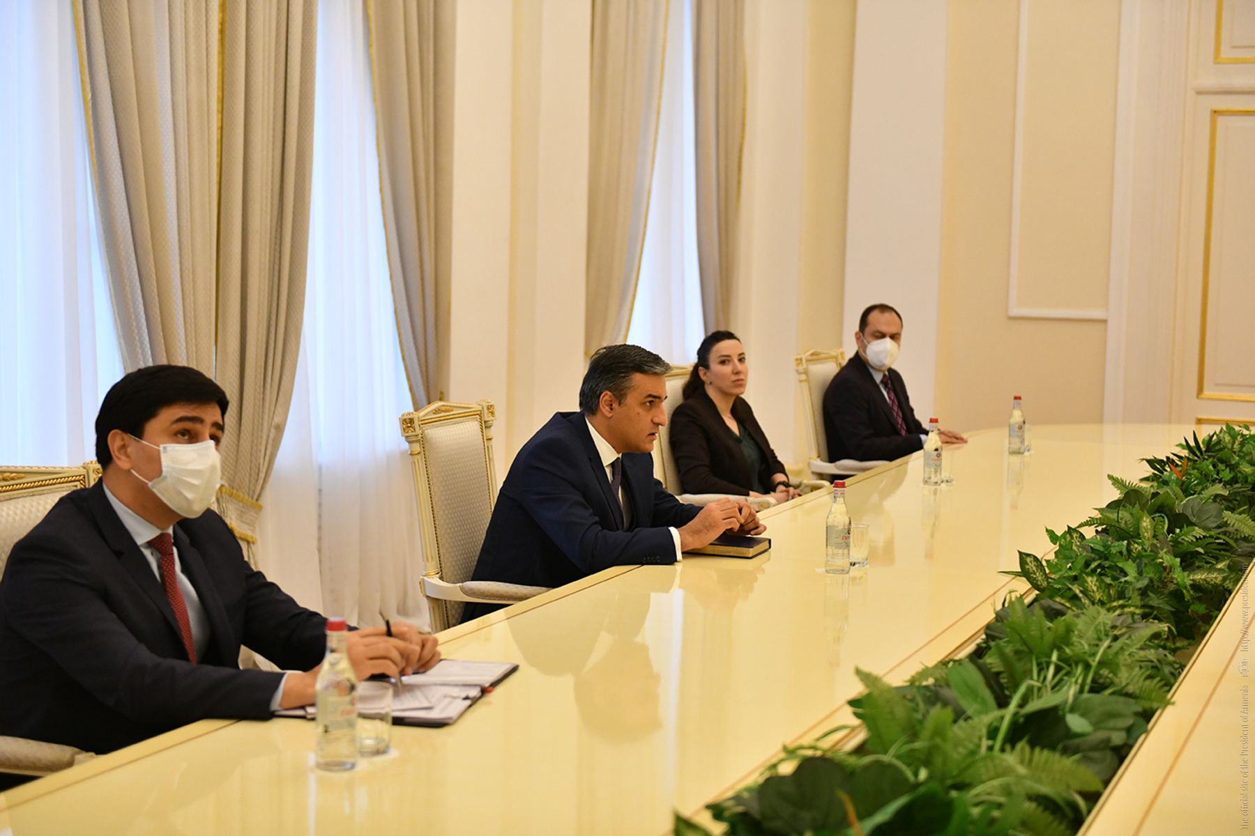 Президент Республики Армен Саркисян сегодня встретился с Защитником прав человека Арманом Татояном, представителем Армении в Европейском Суде по правам человека Егише Киракосяном, адвокатами Сирануш Саакян, Артаком Зейналяном и Ара Казаряном.