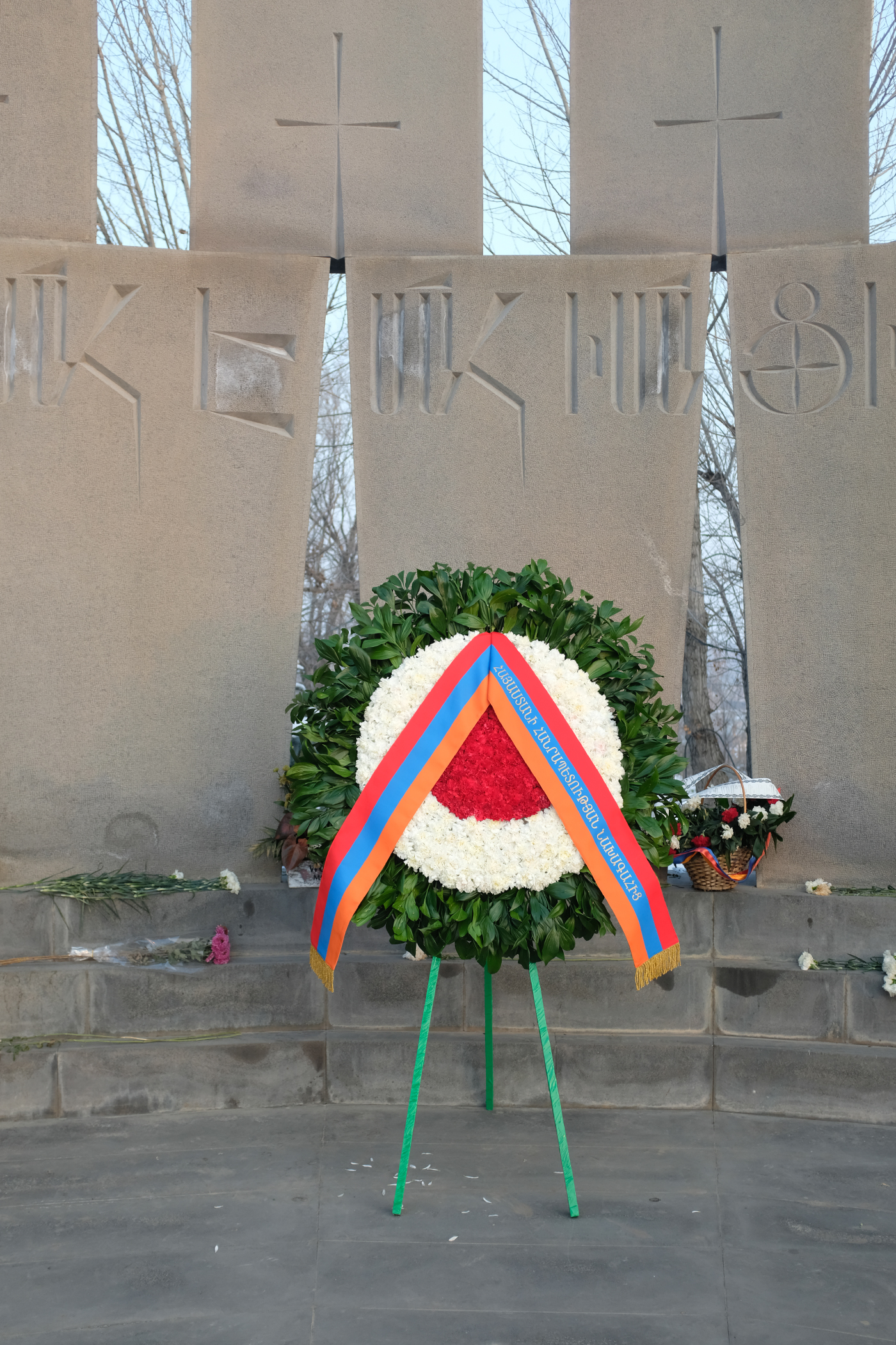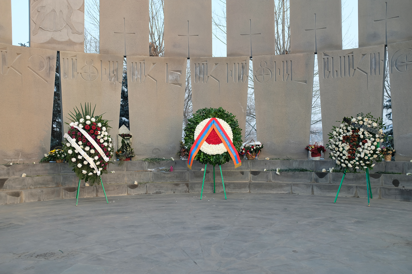 От имени Президента Республики Армена Саркисяна сегодня воздана дань уважения памяти павших за защиту Отечества героев. В воинском пантеоне «Ераблур» от имени Президента Саркисяна возложен венок к мемориальной стене, увековечивающей подвиг погибших за свободу и независимость Отечества.