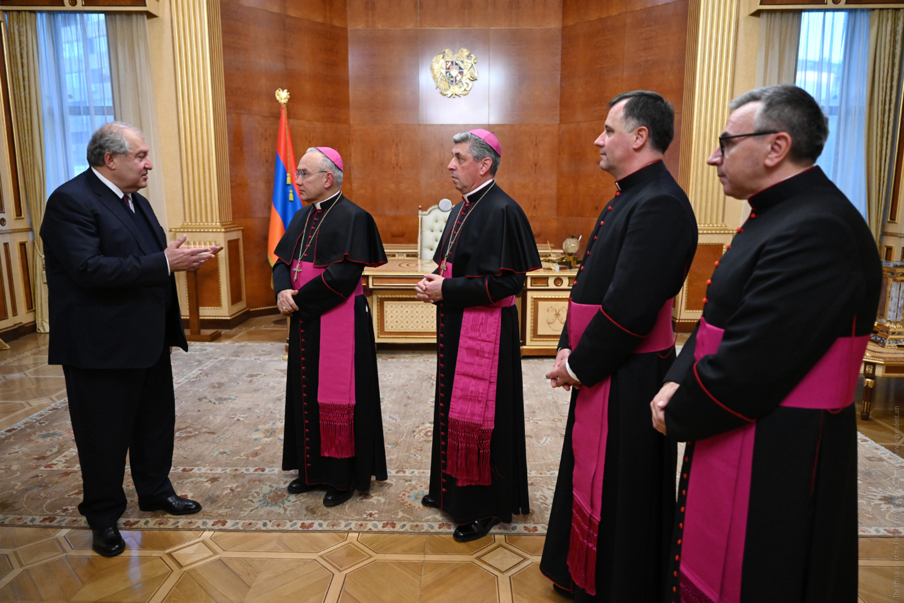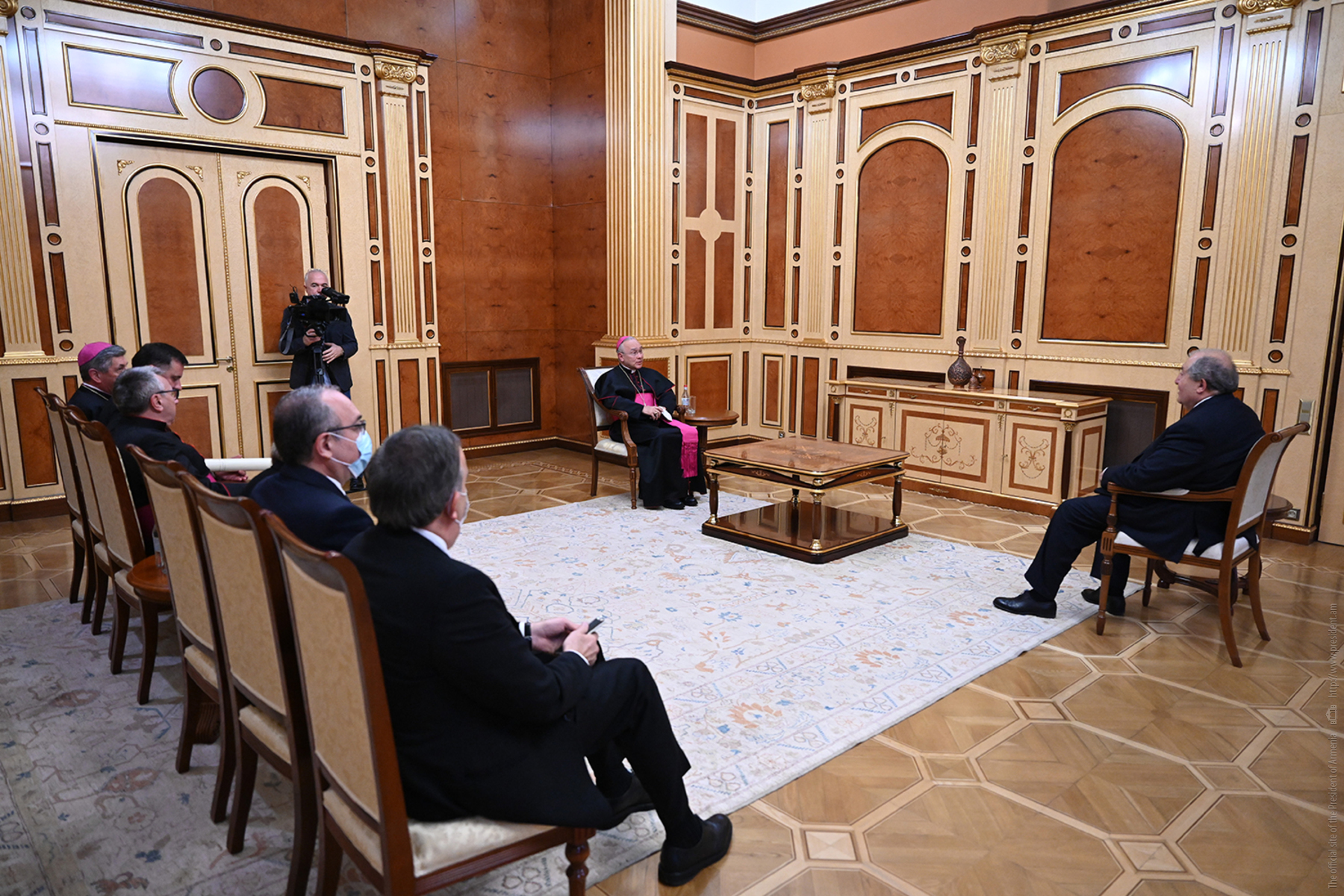 Президент Республики Армен Саркисян встретился с находящимся в Армении с официальным визитом заместителем Госсекретаря по общим вопросам Святого Престола, архиепископом Эдгаром Пенья Пара, который прибыл в Армению по случаю открытия в Ереване Апостольской нунциатуры Святого Престола.