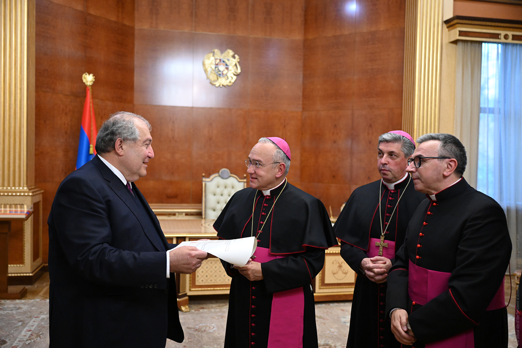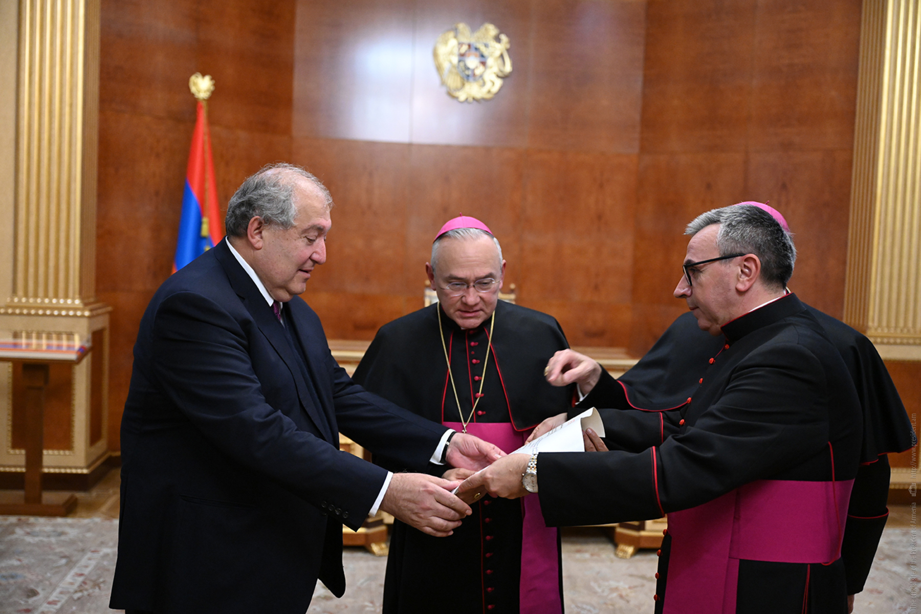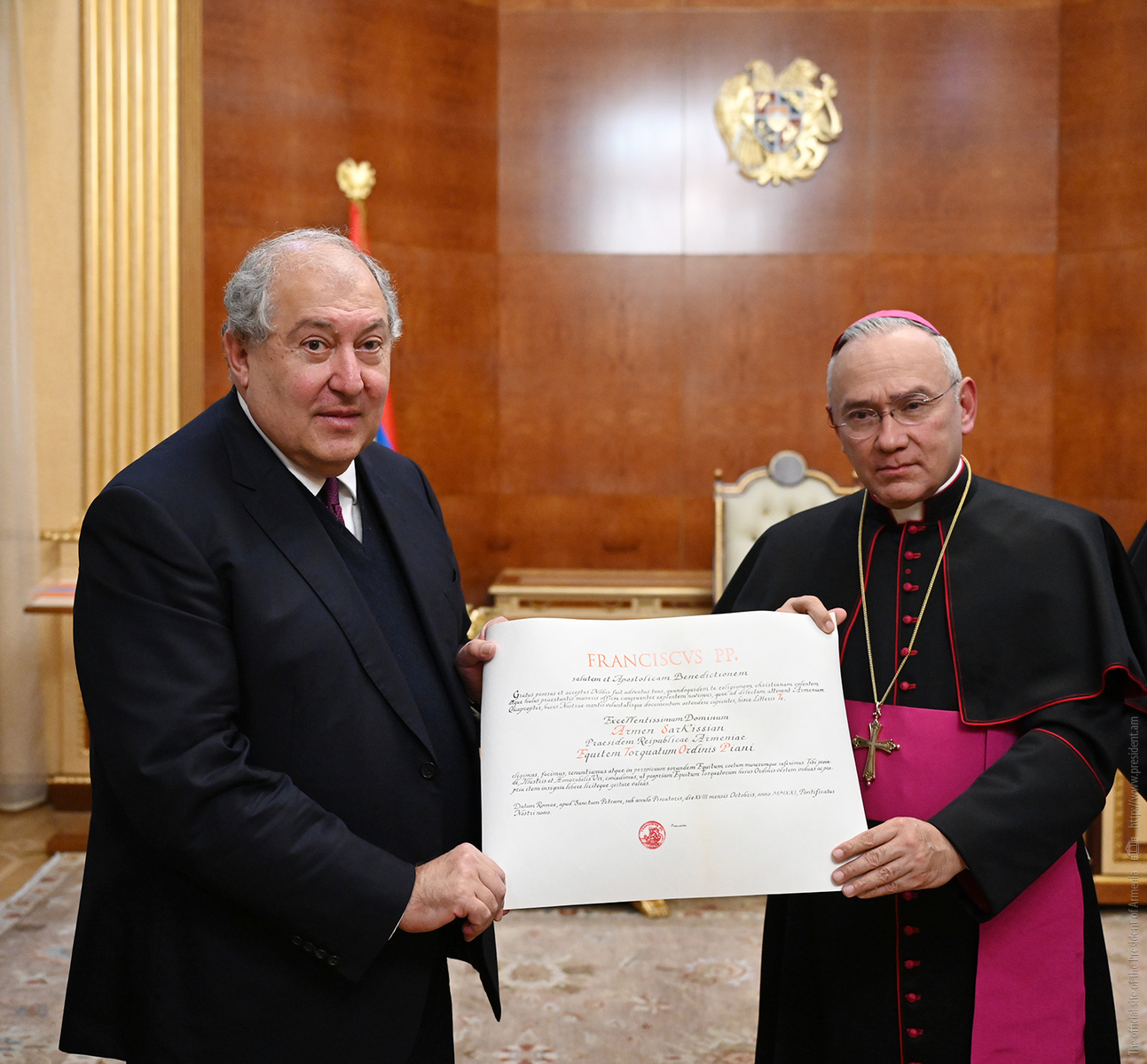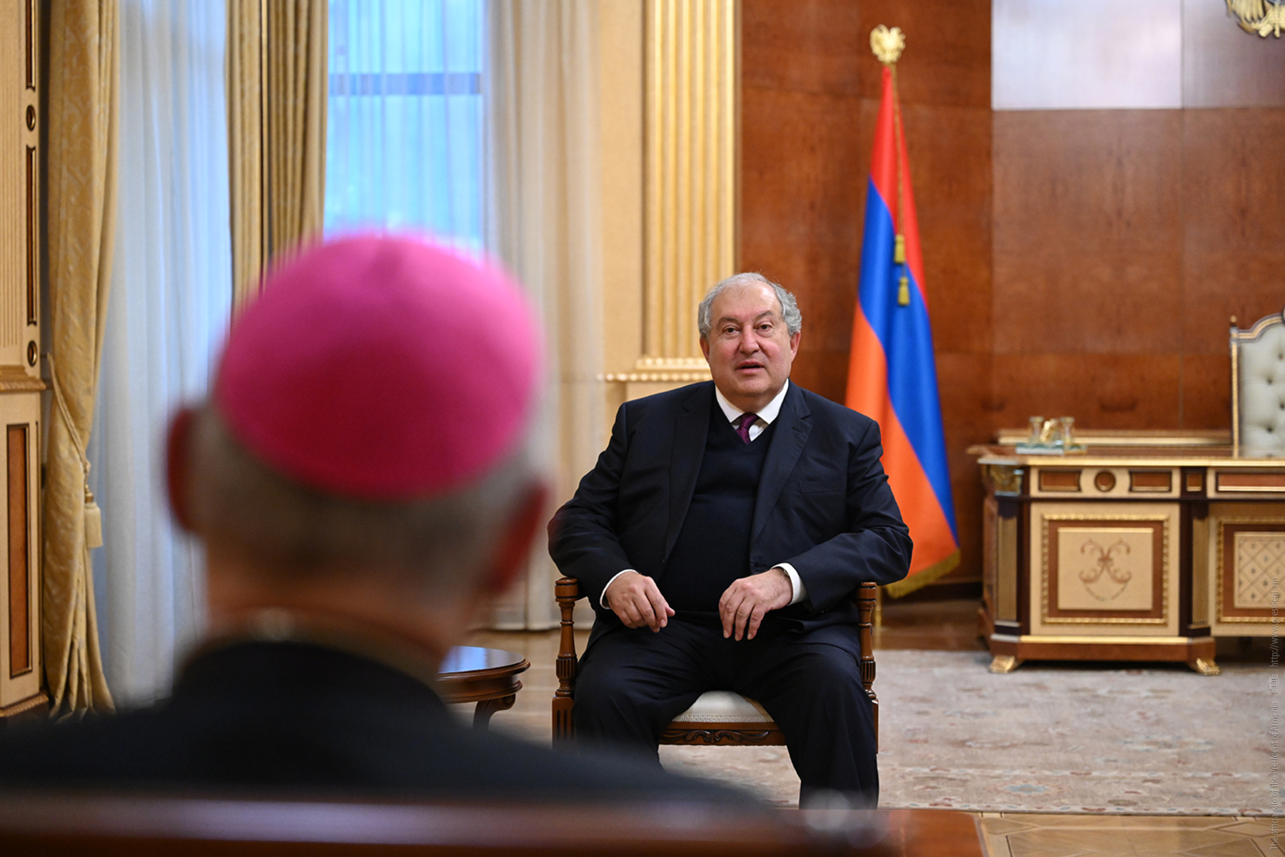 Президент Республики в очередной раз с удовлетворением констатировал непрерывное развитие межгосударственных отношений между Арменией и Святым Престолом. «Очень рад, что Святой Престол уже будет иметь здесь постоянную нунциатуру. Это хорошая новость для Армении и Армянской Апостольской церкви», - сказал Армен Саркисян.
