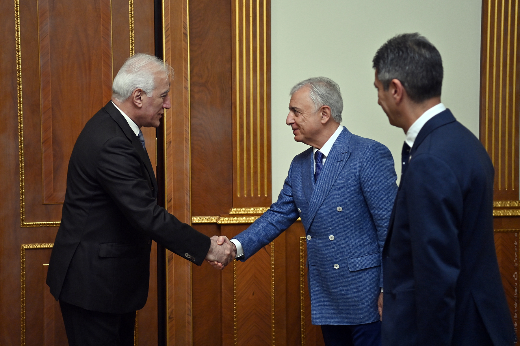 Президент Республики Армения Ваагн Хачатурян принял основателя грузинской компании «Тегета Моторс» Темура Коходзе и генерального директора компании «Премиум Машинс Армения» Григола Байбурта.