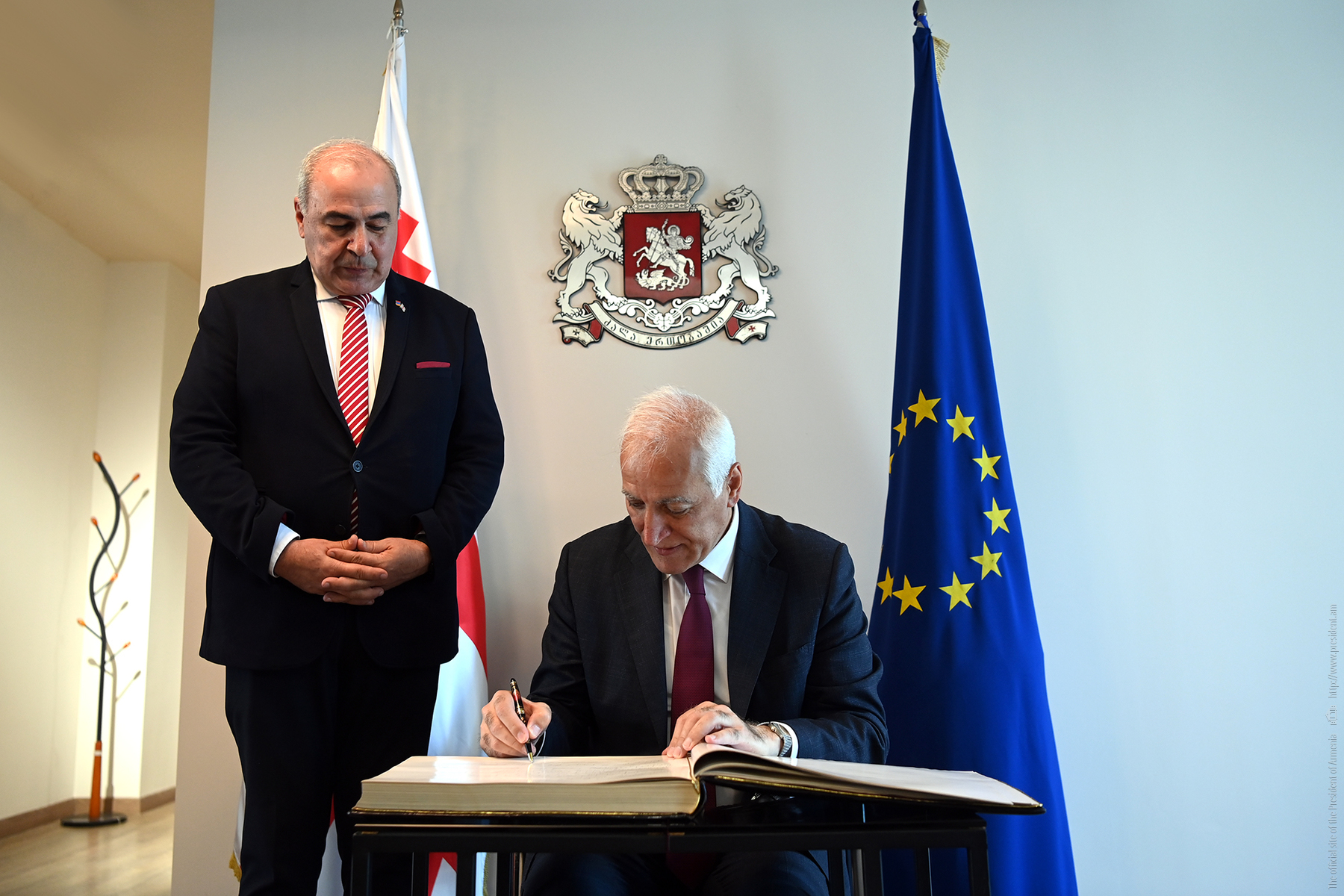 Президент Республики Армения Ваагн Хачатурян посетил посольство Грузии в Армении по случаю национального праздника — Дня независимости Грузии.